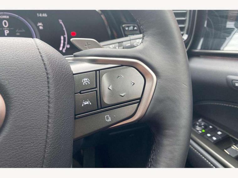 360 degree panoramic view monitor, 7" colour multi information display, 7" display in instrument binnacle, Blind spot monitoring with rear cross traffic alert, Bluetooth telephone connectivity, Digital speedometer, Drive mode select (Eco, Normal, Sport), Driver monitor camera, eCall emergency system, Electric speed sensitive power steering, Emergency driving stop system, Emergency steering assist, Front cyclist detection, Front motorcycle rider detection daytime, Head up Display, Intelligent parking sensors - 4 front and 4 rear with object and pedestrain detection, Intersection turn assist, Lane change flasher function, Lexus link connect - Cloud based navigation, cloud based voice assistant, always online, 14" HD touchscreen, embedded nav and faster CPU, Pre-crash system, Proactive driving assist (PDA), Push button starter, Reversing camera with back guidelines, Road sign linked speed limiter, Service interval indicator, Tailgate, Tailgate electric lift and close, Tailgate height memory function, Tazuna cockpit with 7" improved meters display, 10" HUD and capacitive touch steering wheel switches, Trip meter, Variable ratio rack steering, Wireless Apple CarPlay/Android Auto, Wireless Smartphone charger, All Wheel Drive (AWD), Hybrid automatic transmission, Key cylinder protector, Predictive efficient drive, Standard suspension, Vehicle Dynamics Integrated Management (VDIM), Vehicle Stability Control (VSC), 10 speakers, 3 USB Type-C charging ports, DAB Digital radio, 4 eye LED headlight with adaptive high beam, Acoustic glass (front side and windshield glass), Active brake lights, Auto dimming interior rear view mirror, Auto levelling headlights, Automatic headlights, Automatic rear flashing hazard lights, Black roof, Body coloured door handles, Body coloured door mirrors, Body coloured roof spoiler, Double hidden exhaust pipes, Electrically adjustable door mirrors, Electrochromatic driver's door mirror, Front and rear one touch power windows, with anti-jam protection, Heated and auto folding door mirrors, Hidden exhaust in rear bumper, LED brake lights and rear lights with emergency brake signal, LED cornering lights, LED daytime running lights, LED front fog lights, LED front indicators, LED rear fog lights, Muffler, Optical rear view mirror, Power back door with kick sensor, Privacy glass, Puddle lights, Radiator grille, Rain sensor windscreen wipers, Rear side wing doors, Rear wiper, Roof rails, Shark fin antenna, Silver roof rails, Stainless steel scuff plates with LEXUS name, Ultra Violet (UV) and heat insulating tinted glass, 12V accessory port centre console and luggage compartment, 12V socket in front and boot, 12V socket in rear, 2 cupholders in front centre console, 2 way manually adjustable front headrests, 2 way manually adjustable rear headrests, 2 x fixed shopping bag hooks in boot, 2 x sun visors with vanity mirror and lamp, 3 seat bench in 2nd row, 3 spoke leather trimmed steering wheel, 4 way electrical lumbar adjustment for driver, 4 x tie down hooks in the boot, 60/40 split folding rear seat, 8 way driver/passenger electrically adjustable front seats, Adjustable rear seat backrest, Automatic air circulation control, Card holder installed in driver and passengers sun visors, Centre armrest with storage box, Chrome side windows frame moulding, Driver seat easy entry and exit function, Driver seat memory function, Driving position memory for 3 users (seat, steering wheel & door mirrors), Dual zone climate control air conditioning system with humidity sensor, Electric adjustable steering column, Electronic climate control with nanoeTM, Front and rear textile carpet mats, Front passenger seat, Glove box with key, Heated and ventilated front seats, Heated steering wheel, Illuminated entry system, Leather gearshift, LED ambient lighting, LED boot light, LED Glovebox light, LED interior illumination, Lexus climate concierge, Luggage cover manually folding, Overhead front console sunglasses holder, Paddle shifts, Rear centre armrest with 2 cupholders, S-Flow technology for climate control, Smooth leather upholstery, Steering wheel easy entry and exit function, Steering wheel mounted customizable touch control, USB port (Type - A) front centre console, Whiplash Injury Lessening (WIL) feature (active headrest) for seats, 3 point ELR front seatbelts with pretensioners, 3x3 point rear seat belts, ABS, Acoustic vehicle alerting system, Adjustable seat belt anchor points, Driver 2 stage airbag, Driver/front passenger side airbags, Drivers knee airbag, E-Latch with safe exit assist, EBD + Brake Assist, ECB (Electronically Controlled Brake System), Electronic parking brake, Front and rear curtain shield airbags, Front center airbag, Front passenger seat cushion airbag, Front passenger single stage airbag, Front wheel brake - 328/34mm discs, Hill assist control, Lexus safety system - dynamic radar cruise control, pre collision system day and night, lane tracing assist, road sign, automatic high beam, OTA, Manual rear child locks, Outer rear seatbelt pretensioners, Passenger airbag cut-off device, Rear wheel brake - 17inch discs, Safety kit, Traction control, Tyre pressure warning with auto location, Anti-theft system with alarm, intrusion sensor, glass breakage sensor, tilt sensor and engine immobiliser, Double door lock, Locking wheel nuts, Smart entry ( front/rear/boot), Smart key, Speed sensitive auto door locking, Ultra Wide Band (UWB) Anti-theft system, VIN Window etching, Wireless door lock, 3D prism black Inlay, Organic inlay, Extended mobility tyres, Resin moulding wheel arches, Run flat tyres,