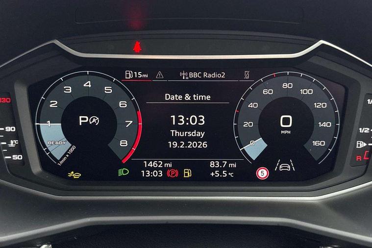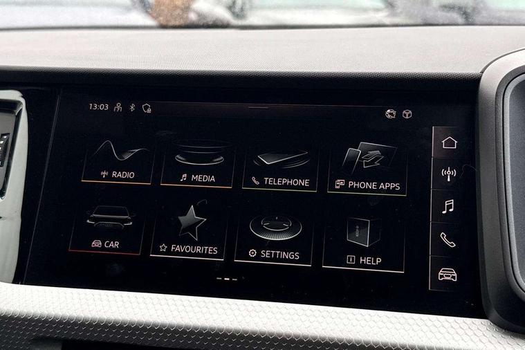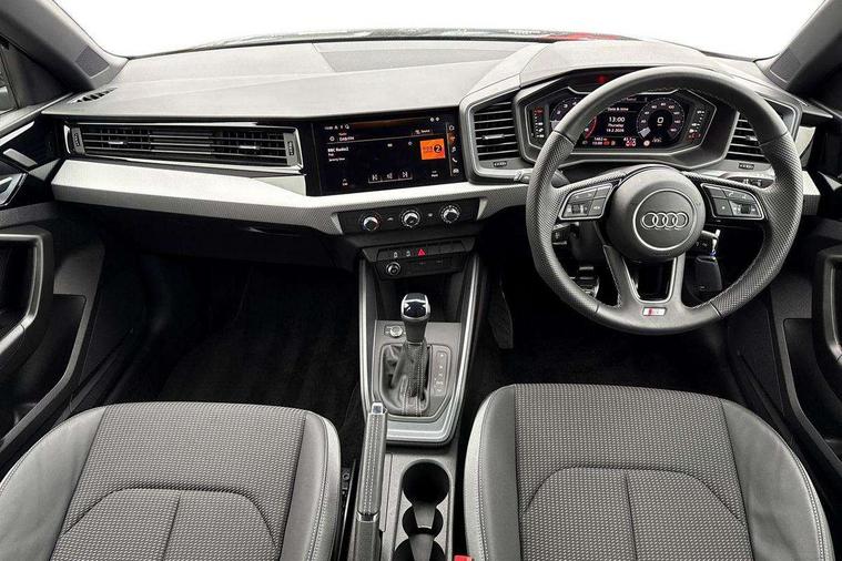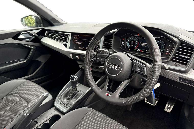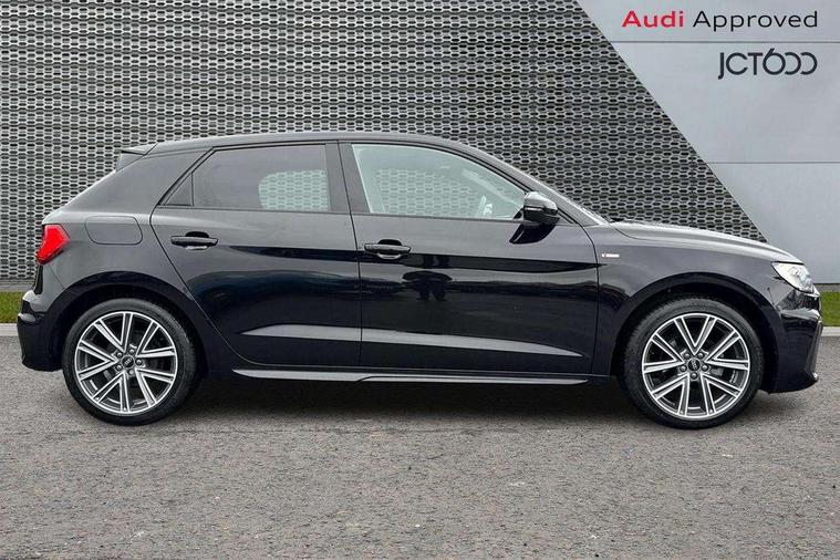 10.25" Digital instrument cluster display classis style instrument dials + speed, odometer, time, outside temperature, telephone menu + fuel level warning, Advanced driver attention and drowsiness monitor, Audi connect emergency call and service, Audi remote connect and control, Audi smartphone interface, Bluetooth interface, Camera based traffic sign recognition, Cruise control, Driver's information system, Electromechanical power steering, Lane departure warning system, Rear parking sensor, Service interval indicator, Speed limiter, Start stop system with recuperation, Voice control system, Washer fluid level indicator, Sports suspension, 2 x USB type C connection points, 6 loudspeakers, DAB Digital radio, MMI radio plus with 10.1" colour MMI display screen and MMI touch, Auto dimming rear view mirror, Body coloured door mirrors, Door sill trims with aluminium inlays and S line logo in front, Electric front and rear windows, Electrically adjustable, heated, folding door mirrors with integrated LED side indicator, Front side air inlets in grained matt black and C frame in anthracite black, Headlight cleaning system, Heat insulating glass windscreen and side windows, Heated rear windscreen, High level LED brake light, LED daytime running lights, LED headlights with range control LED rear lights + dynamic rear indicators, Privacy glass, Radiator grille and rear diffuser in matt anthracite black, Radiator protective grille frame in matt aluminium silver, Rain and light sensors, Rear fog lights, Rear side wing doors, Rear wiper, S line badges on front wings, Side front spoiler lips in grained matt black, 12V socket in centre console with two cup holders, 3 rear seats with headrests, 3 seat bench in 2nd row, 3 spoke leather multi-function plus steering wheel features S badging and grips in perforated leather with contrast stitching, 40:60 Split folding rear seat or fully collapsed, Black cloth headlining, Front and rear velour black floor mats with contrast stitching in fine silver, Front head restraints, Front passenger seat, Height and reach adjustable steering wheel, Interior lighting includes roof module, front and rear reading lights and right luggage compartment lighting, ISOFIX child seat mounting for front passenger and outer rear seats including top tether attachment point of outer rear seats, Leather gear knob with aluminium trim, Leather handbrake grip, Manual air conditioning, Manual height adjustable for driver and front passenger seat, Manually adjustable lumbar support in front seats, Stainless steel pedals, Ambient lighting package - A1, Luggage compartment pack - A1, S line exterior styling pack - A1 Sportback, 3x3 point rear seatbelts, Audi pre-sense front with pedestrain and cyclist recognition, Brake assist function, Driver and front passenger airbag with front side and head airbags, Electronic Stability Control including ABS, EBD, ASR and EDL, Front passenger airbag deactivation switch, Hill hold assist, Manual rear child locks, Seatbelt height adjustment for front seats, Seatbelt monitoring, Tyre pressure loss indicator, Warning triangle and first aid kit, Anti theft alarm, Anti theft wheel bolts, Immobiliser, Remote control key with safelock, Aluminium trim for control switches, air vents and digital instrument cluster, Black dashboard, Silver grey inlays polygon structure in diamond paint finish, Structured grey accent surfaces insert of air vents, interior door handle recesses and centre console in quartz paint finish,