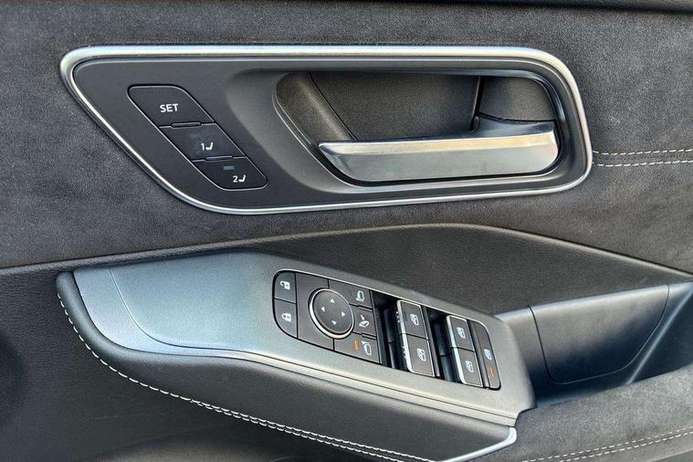 2 front USB-C ports, 2 rear USB-C ports, 360 degree Intelligent around view monitor with moving object detection, Advanced windscreen head up display, Blind spot intervention, Blind spot warning, Drive assist custom mode, Drive modes (sport, normal, eco), Driver drowsiness and attention warning, Electric speed sensitive power steering, Emergency and breakdown call, Emergency lane keep assist, Emergency Stop Signal (ESS), Engine start/stop button, Event data recorder, Front and rear parking sensors, Full Digital 12.3" TFT Digital Combimeter, Google virtual personal assistance, Hands free power tailgate, Idle stop/start system, In-car WIFI hotspot, Intelligent Cruise control (ICC), Intelligent forward collision warning, Intelligent speed assist, Lane departure warning system, Nissan connect 12.3 inch touchscreen infotainment system, Nissan connect navigation with google maps, Nissan connect services 2.0 (Google Automotive System), Outside temperature sensor, Rear cross traffic alert, Reversing detection, Traffic jam pilot, Wireless Apple CarPlay/Android Auto, Wireless charging pad, Limited slip differential, Multi link suspension, 10 Bose speakers - 2 tweeters, 6 high and medium frequency door speakers and 2 in subwoofer, AM/FM audio system with DAB, Bluetooth audio streaming, Bose acoustimass bass box, Auto dimming frameless rear view mirror, Auto rear wiper when reversing, Body colour mirror caps, Body coloured bumpers, Body coloured door handles, Bodyside mouldings, Chrome side window finisher, Electric auto folding door mirrors, Electrically adjustable and heated door mirrors with LED turn indicator, Follow me home headlights, Glossy black bumper inserts and fenders, High beam assist, Intelligent auto headlights, LED 3rd brake light, LED daytime running lights, LED headlights with adaptive driving beam, LED rear lights, LED sequential turn lights, One touch front and rear electric windows with remote opening and closing, One touch passenger window, Rear privacy glass, Rear roof spoiler, Rear side wing doors, Rear styling plate, Reverse tilting door mirrors, Shark fin antenna, Silver roof rails, Splash free rain sensing wipers, Super RED rear LED lights, Super UV and infrared cut glass, Thermaclear heated windscreen, 3 bench rear seats in 2nd row, 3 rear headrests, 60/40 split folding rear seat bench, Chrome interior door handles, Dark headlining, Driver seat back pocket, Dual zone automatic climate control with pollen filter, Fixed Glass roof with electric sunshade, Front door with bottle holders, Heated front seats, Heated steering wheel, Height adjustable front headrests, Luggage board system, Luggage space lighting, Multifunction steering wheel, Passenger seat back pocket, Quilted premium leather upholstery, Rear door bottle holders, RGB ambient light (Full area coverage), Single front passenger seat, Smooth leather steering wheel, Steering wheel gearshift paddles, Tilt/telescopic adjustable steering wheel, Two rear isofix child seat anchorage points with top tether, 3x3 point rear seatbelt pretensioners + load limiters, Autonomous emergency braking, Child locks on rear doors, Curtain and front side, far side airbags, Driver and passenger airbags, Driver, passenger and 2nd row rear seat belt reminder, Electric handbrake with auto hold function, Front seatbelt pretensioners + load limiters, Height adjustable front seatbelts, Hill start assist, intelligent front emergency braking, Rear automatic braking, Tyre pressure monitoring system, Vehicle dynamic control, Engine immobiliser, Intelligent key with walk away lock and approach unlock functions, Remote central door locking with deadlocking, Thatcham alarm, 20" Diamond cut alloy wheels, Tyre puncture repair kit,
