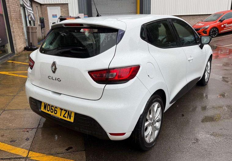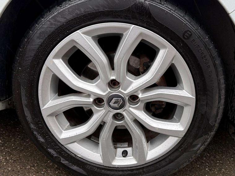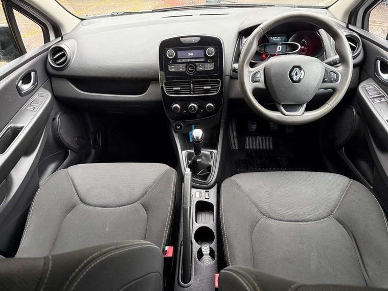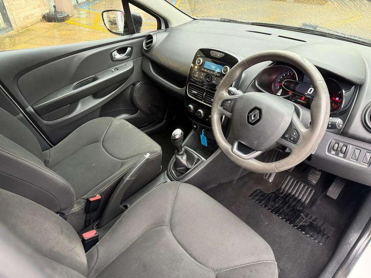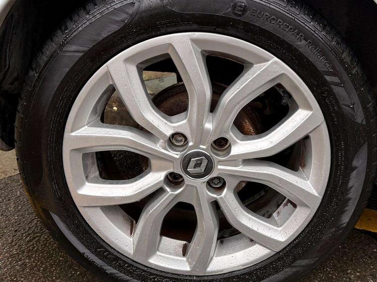 Cruise control + speed limiter, Push button starter, Smartphone cradle, Trip computer, Variable PAS, 2x20W radio with bluetooth hands free and USB, Aux-in socket, Black door mirrors, Black door protector, Black headlamp surrounds, Body colour door handles, Body coloured bumpers, Body coloured rear spoiler, Electric adjustable door mirrors, Electric front windows, Front fog lamps, Heated door mirrors, LED daytime running lights, Rear wiper, Variable front intermittent wipers, 12V Accessory socket, 3 rear height adjustable headrests, 60/40 split rear seats, Air recirculation control, Chrome gear knob insert, Chrome interior door handles, Driver's seat height adjustment, Front cupholders, Front door storage bin, Glovebox, Height adjustable front headrests, Height/reach adjust steering wheel, Isofix system on outer rear seats, Manual air conditioning, Multi function steering wheel, Pollen filter, Steering wheel with chrome inserts, Style cloth upholstery, System for Restraint and Protection SRP-front seats, 3 point seatbelts on all rear seats, ABS+EBD+Brake assist, Driver and passenger front and side airbag deactivation, Driver/Front Passenger airbags, Driver/front passenger side airbags, ESP + Traction control + Understeer control, Front side airbags(head+thorax), Height adjustable driver's seatbelt, Hill start assist, Seatbelt warning, Tyre pressure monitoring system, Anti-drill door locks, Child lock control of rear doors and windows, Deadlocking system, Locking fuel filler cap, RAID (Renault Anti-Intruder Device) with automatic door locking, Remote central locking, Renault card, Thatcham Cat 2 engine immobiliser, Dark carbon dashboard, Grain black air vent surround, Grain black centre console, Grain black dashboard insert, 16" Chrome alloy wheels,