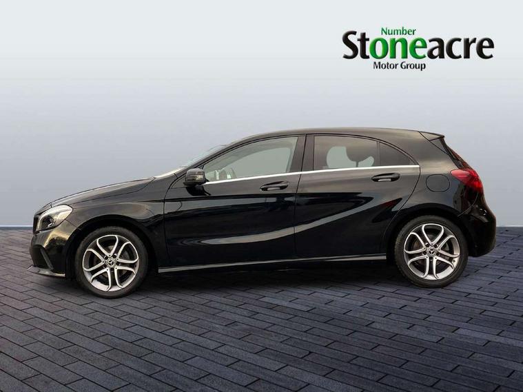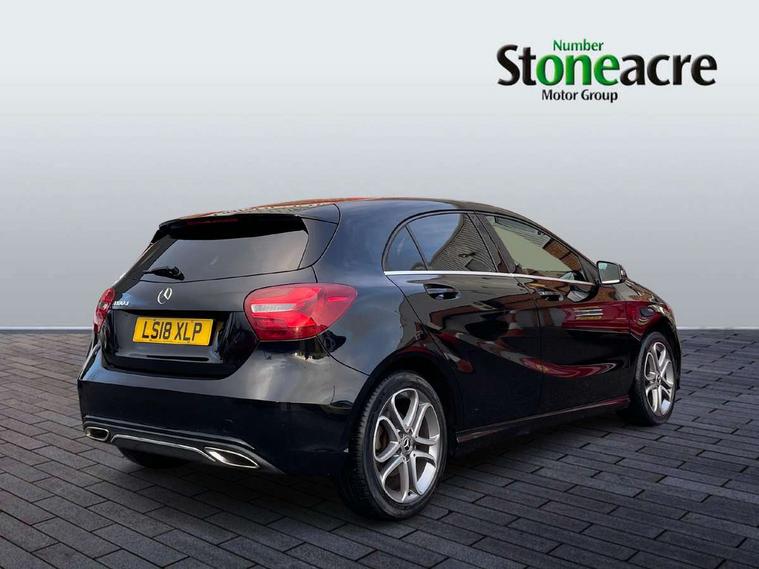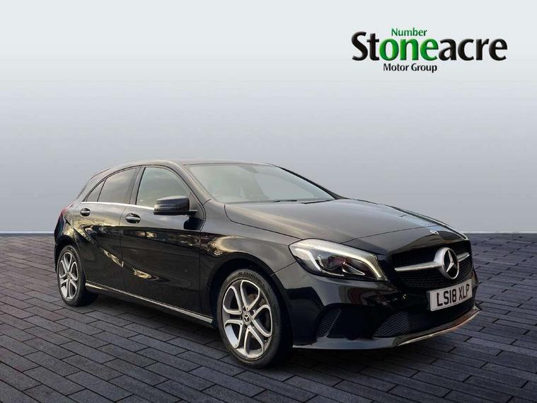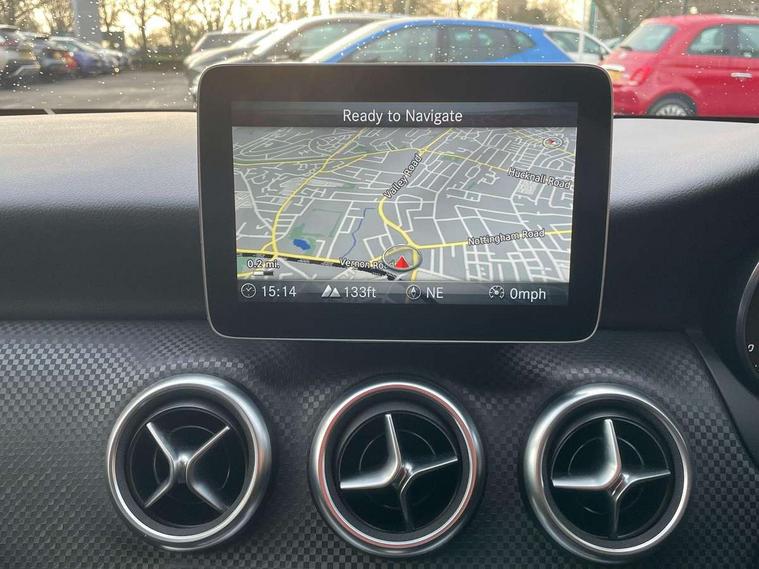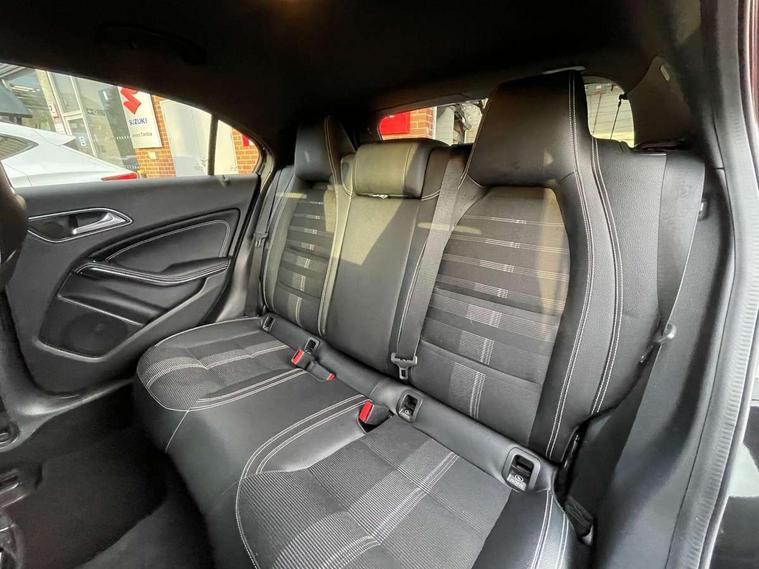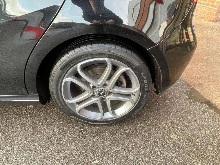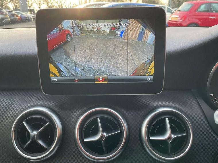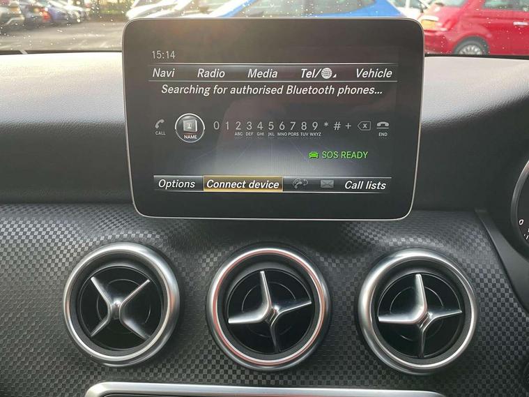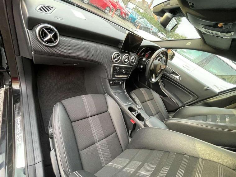 8" colour display screen, Attention assist, Bluetooth interface for hands free telephone, Bulb failure indicator, Collision prevention assist plus, DYNAMIC SELECT with a choice of driving modes (ECO, Comfort, Sport, Sport+ and Individual), External temperature gauge, Garmin Map pilot navigation system with SD Card, Low fluid warning light, Reversing camera, Service indicator (ASSYST PLUS), Smartphone integration with Apple CarPlay, Speed sensitive parameter assisted steering, Speedtronic cruise control, Trip computer, Comfort suspension, Media interface, Mercedes Audio 20 radio/single CD + telephone keypad, SD card slot, USB port, Adaptive brake lights, Body colour bumpers, Body colour door handles, Body colour side skirt, Body coloured door mirrors, Chrome beltline trim, Diamond radiator grille with black pins with one louvre in silver + chrome insert, Electric adjustable heated door mirrors, Electric front windows, Electric rear windows, Headlamp assist, Heated rear window with timer, LED daytime running lights, LED Headlights, LED tail lights, Privacy glass, Rain sensor windscreen wipers, Rear wiper, Twin Trapezoidal tailpipes, 1/3 to 2/3 split folding rear seats, 12V socket, 3 spoke perforated leather multifunction sports steering wheel, ARTICO man-made leather/Maringa cloth upholstery, Auto Mercedes-Benz child seat recognition sensor, Black headlining, Dual zone automatic climate control, Footwell lights, Front and rear reading lights, Front centre armrest with storage compartment, Front head restraints, Front sport seats, Gearshift paddles on steering wheel, Height adjustable front seats, Height/reach adjustable steering column, Illuminated door sills, Illuminated glovebox, Illuminated storage compartment, Isofix rear child seat preparation, Load securing rings in luggage compartment, Luggage compartment cover, Rear head restraints, Storage compartment under load area floor, Sunvisors with illuminated vanity mirrors, Twin front cupholders, Seat comfort pack - A Class, 3 rear 3 point seatbelts, ABS with Brake Assist, Active bonnet, Adaptive brake system, Black seat belts, Child proof door locks, Crash responsive emergency lighting, Drivers knee airbag, Dual stage driver/passenger airbags, Electronic parking brake, ESP with ASR, Front and rear seatbelt reminder, Front head airbags, Front passenger seat occupancy sensor, Front side airbags, Hill start assist, Tyre pressure monitoring system, Warning triangle and first aid kit, Window airbags, Alarm system/interior protection/immobiliser, Keyless ignition, Remote central locking, Checked pattern trim, Chrome air vent surrounds, 17" 5 twin spoke alloy wheels painted in black with high sheen finish, Tirefit sealant with electric air pump,