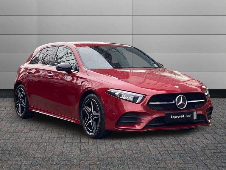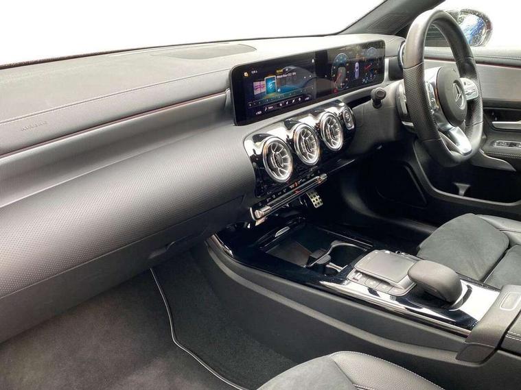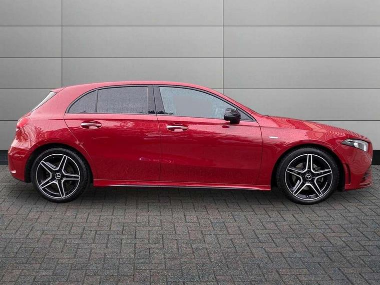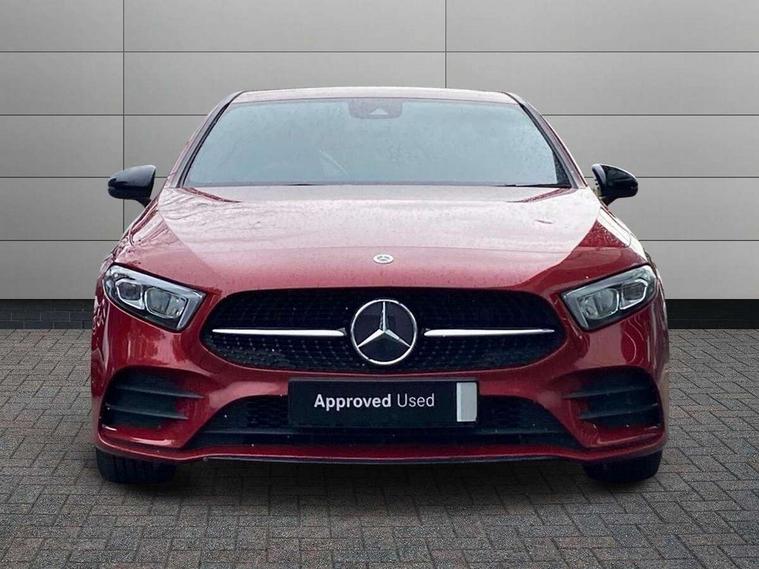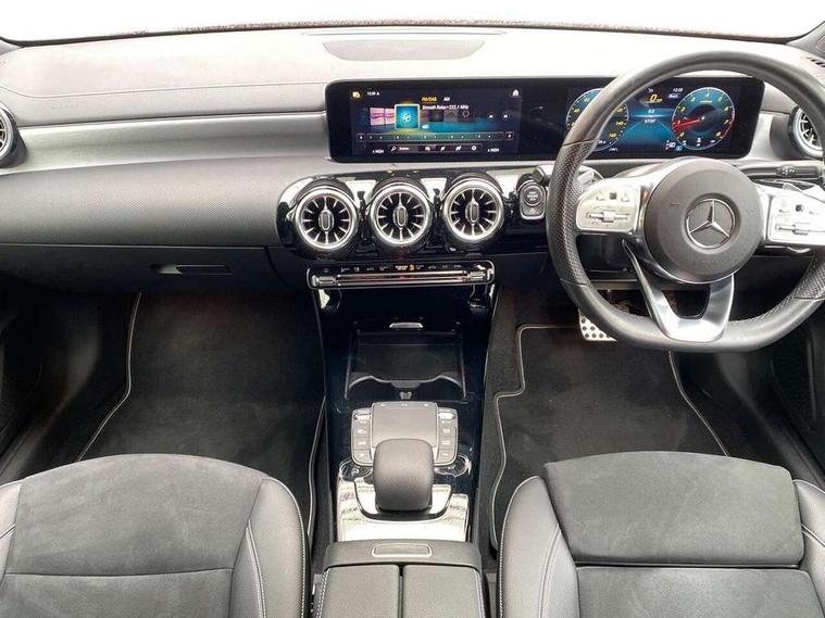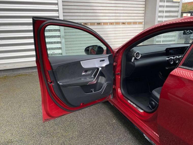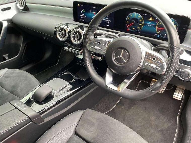 10.25" Digital instrument cluster display screen, 10.25" media display, 180 degree rear view camera with parking guidelines, Active parking assist with visual and audible warning of detected obstacles, Attention assist, Brake pad wear indicator warning light, Car wash mode, Cruise control + speed limiter, Direct steering, Dual bluetooth interfaces, DYNAMIC SELECT with a choice of driving modes (ECO, Comfort, Sport and Individual), ECO start/stop function, Fluid level warning indicator for fuel, oil, coolant and washer fluid, Hard-disk navigation, Hey Mercedes Voice activation, Lamp failure indicator, Lane keeping system, Mercedes me connect including emergency call system, accident recovery, breakdown and maintenance management, Mercedes me remote services, Outside temperature gauge, Owners manual in English, Pre-installation for private car sharing, Preinstallation for Mercedes Benz link, Service indicator (ASSYST), Smartphone integration with Apple CarPlay and Android auto, Speed sensitive power steering, Trip computer, Ultrasonic sensors positioned in the front and rear bumpers, Lowered comfort suspension, Rear axle torsion beam, 10 speakers, 2 USB ports (type C) in rear stowage compartment and one in front of center console, DAB Digital radio, MBUX multimedia system with DAB digital radio and touchpad including satellite navigation, Mercedes-Benz sound system - 100W, 4 Electric Front and Rear windows, Adaptive brake lights, AMG bodystyling - Front apron with splitter in chrome, rear apron with chrome trim and chrome visible trim elements in tailpipe, Black weather strip, Body colour bumpers, Body colour door handles, Body colour side skirt, Body coloured door mirrors, Electric adjustable and heated door mirrors with integrated LED side indicators, Exclusive diamond radiator grille, Exhaust system - Twin visible tailpipes in polished stainless steel, Headlamp assist automatic headlamp activation, Heated glass rear windscreen + timer control, High gloss black beltline, LED High level third brake light, LED high performance headlamps with integrated LED daytime running lights, LED tail lamp, Privacy glass, Radio aerial, Rain sensing windscreen wipers with two sensitivity settings, Rear fog lights, Rear wiper, Window line trim strip in high gloss black, 3 Spoke flat bottom leather multi function steering wheel with perforated leather in grip area, 40:20:40 split folding rear seats, Artico man-made leather/Microfibre Dinamica upholstery with contrast stitching in light grey, Auto Mercedes-Benz child seat recognition sensor, Black air vents with surround in silver chrome, Black roof lining, Brushed stainless steel sports pedals with rubber studs, Controller on centre console with chrome surround, Floor mats with black top stitching and embroidered edition logo and piping in light grey, Front centre armrest with storage compartment, Front seat backs luggage nets, Front seat cushion length adjustment, Galvanished gear shift paddles on steering wheel, Heated front seats, Height/reach adjustable steering column, Illuminated front door sills with changeable cover, Interior lighting - 64 colour Ambient lighting, Interior mirror with reading lamps in black and frameless, Manual height adjustable front seats, Rear armrest with 2 cupholders, Rear head restraints, Seat occupancy sensor for front passenger seat, Sports seats with integrated headrests, Stowage compartment in centre console with retractable cover, Sunvisors with illuminated vanity mirrors, Touchpad on center console, Twin front cupholders, Two zone thermotronic luxury automatic climate control, Light and sight pack - A Class, Mirror package - A Class, Night pack - A Class Saloon/Hatchback, Seat comfort pack - A Class, 3 rear 3 point seatbelts, ABS with Brake Assist, Active bonnet, Active brake assist includes forward collision warning system with autonomous braking, Adaptive brake assist with hold function and hill start assist, Black seatbelts, Childproof locks manually operated for rear doors and electrically operated for rear power windows, Crash responsive emergency lighting, Driver and passenger head and side airbags, Drivers knee airbag, Dual stage driver/passenger airbags, Electronic parking brake, ESP curve dynamic assist, ESP with ASR, Front and rear seatbelt reminder, Front brake callipers with Mercedes Benz lettering, ISOFIX and top tether child seat fixing points in two outer rear seats, Tyre pressure monitoring system, Warning triangle and first aid kit, Window airbags, Alarm system/interior protection/immobiliser, Keyless entry lock/unlock, Keyless Go, Remote central locking and crash sensor with emergency opening function, Urban guard vehicle protection system with immobiliser and interior protection, Matrix look light longitudinal grain aluminium trim element, 18" AMG 5 twin spoke light alloy wheels aerodynamically optimised painted in black with highsheen finish, Summer tyres, Tirefit sealant kit,