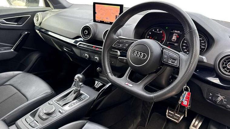 Audi drive select, Audi smartphone interface, Automatic start/stop system with recuperation, Bluetooth interface includes bluetooth audio streaming, Cruise control, MMI - Multi Media Interface control system, MMI SD card integrated nav with 3D map display, dynamic route guidance with TMC, MMI search, natural voice recognition and myAudi special destinations, Power operated tailgate, Progressive steering, Service interval indicator, Dynamic suspension, 2 x SDXC card reader, Audi music interface - apple iPod, apple iPhone, USB storage media, compatible MP3 players, 2 x USB charging points and 1 x Aux-in, CD Drive, DAB digital radio and AM/FM radio, MMI radio plus with 7" colour MMI screen and MMI controller, Black window trims, Bumper in full body colour paint finish, Chrome exhaust tailpipe, Electrically adjustable and heated door mirrors with integrated LED side indicators, Front and rear electric windows, Front underbody guard and rear diffuser trim in selenite silver, Front windscreen with grey tinted sunband, Headlight washers, Interior mirror, LED headlights with LED rear lights + dynamic rear indicators, LED indicator lights, Manual folding door mirrors, Privacy glass - dark tinted rear and rear side windows from B-pillar backwards, Rain and light sensors, Rear wiper, S Line body styling - front and rear bumpers, side skirts, radiator grille, rear diffuser insert and front air intakes, 3 spoke flat bottomed high multi-function leather sport steering wheel with gearshift paddles, 60/40 split folding rear seat bench, Black cloth headlining, Floor mats with contrast stitching, Front centre armrest, Front headrests, Front sport seats with S embossed logo, Height/reach adjust steering wheel, Illuminated door sill trims with S logo, ISOFIX child seat mounting for front passenger with airbag deactivation and outer rear seat including top tether attachment point for outer rear seats, Manual seat adjustment including seat height adjustment for front seats, Stainless steel pedals, Storage compartments - Glovebox, cupholder compartment in centre console, storage compartment in rear centre console, front and rear door pockets, Three rear headrests, Black styling pack - Q2, LED interior lighting pack - Q2, Non smoking pack - Q2, 3x3 point rear seatbelts, 6 airbags - Front, curtain and front side airbags, Electromechanical parking brake, Electronic stabilisation control including ABS, ASR and EDL, Extended and proactive pedestrian protection, Hill hold assist, Multi collision brake assist, Pre-sense front with pedestrian recognition, Seatbelt monitoring, Tyre pressure warning light, Warning triangle and first aid kit, Anti theft alarm, Anti theft wheel bolts, Central locking system with remote control key, Electronically operated child locks, Aluminium interior element, Black inlays - decorative trims in black for centre console and front and rear door pull handles,