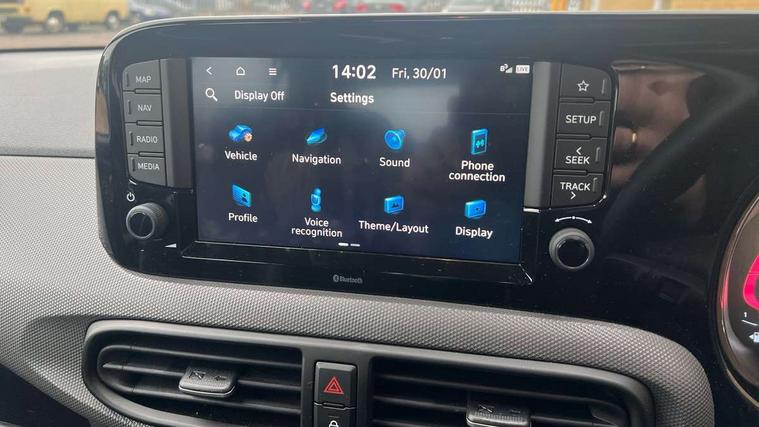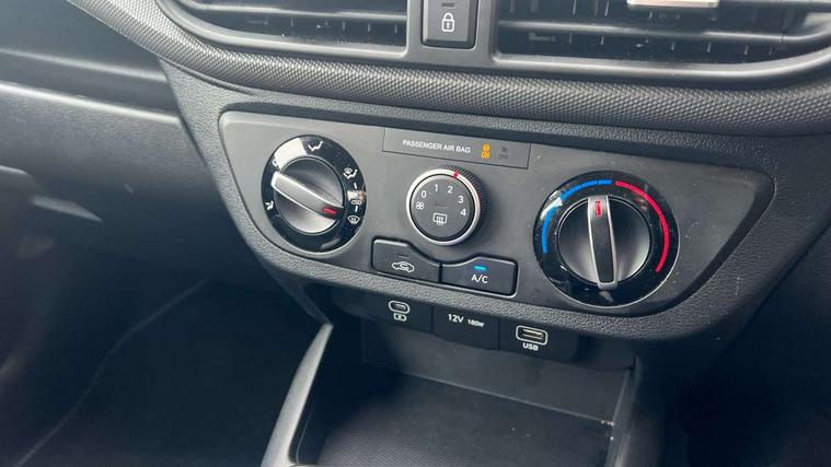 8" Touchscreen satellite navigation including mapcare and LIVE services, Apple car play/Android Auto, Bluelink mobile remote connectivity, Bluetooth connectivity with voice recognition, Cruise control, Driver attention alert system, eCall emergency call system, Forward Collision-Avoidance Assist (FCA) - Pedestrian/Cyclist, Full-width 4.2" LCD instrument cluster, Intelligent speed limit assist, Lane departure warning system with lane keep assist - LKAS, Lane follow assist, PAS, Rear parking sensors, Rear view camera with guidelines, Roadside assistance, Start/Stop function, Tailgate, Trip computer, 2 front/2 rear speakers, Front and rear USB-C ports, Front USB connection, Leading vehicle alert (LVA), Steering wheel audio, phone and cruise controls, 1 speed non intermittent rear windscreen wiper, Black finish on B pillars, Body colour door handles, Body coloured bumpers, Body coloured door mirrors, Electric front windows, Electric rear windows, Electrically adjustable and heated door mirrors, Flat metal emblem, Front grille in matte black, Front intermittent wipers, Halogen headlights, Headlights inner with Black Blade design, Heated rear window, High beam assist, Indicator light on door mirrors, LED daytime running lights, Rear roof spoiler with integrated LED brake light, Rear side wing doors, 12v power outlet - front, 3 seat bench in 2nd row, 60/40 split folding flat to floor rear seats, Auto light control, Bottle holders in front/rear doors + front centre console, Cabin and luggage compartment interior lighting, Cloth upholstery, Driver + passenger vanity mirrors, Driver's seat height adjustment, Driver/passenger sunvisors with ticket holders, Floor mats, Front door pockets, Front Head Restraints - Vertical and Horizontal Adjustment, Glove compartment, Height adjustable steering column, Isofix child seat preparation, Leather wrapped steering wheel and gear knob, Manual air conditioning, Rear door pockets, Single front passenger seat, Vertical adjustment rear head restraints, 3x3 point rear seatbelts, Airbags - front, front side and curtain airbags, Anti-lock brake system (ABS), Autonomous emergency braking (AEB) with forward collision warning system, Brake assist function, Childproof rear door locks, Electronic stability control, Front and rear seatbelt reminder, Front seatbelt pretensioners, Hill start assist control (HAC), Passenger airbag deactivate switch, Traction control, Tyre pressure monitoring system, Immobiliser, Perimeter alarm, Rear occupant alert, Remote central locking, Second remote key, Speed sensitive auto door locking, 15" Alloy wheels, Temporary mobility kit (TMK),