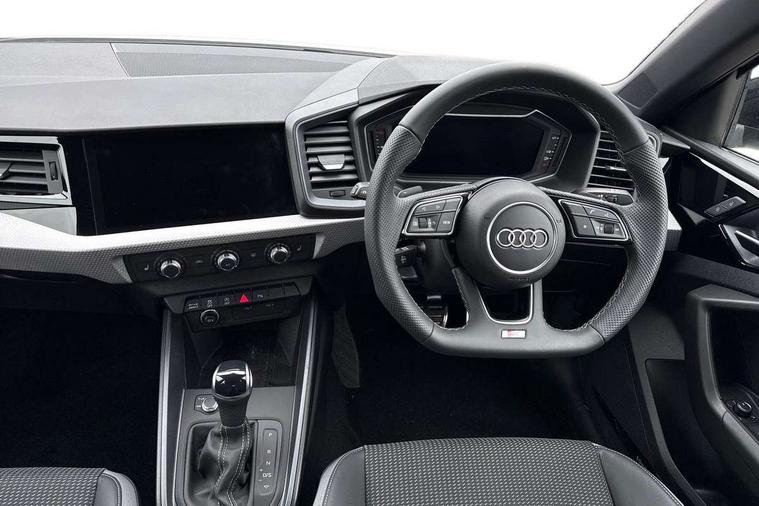 10.25" Digital instrument cluster display classis style instrument dials + speed, odometer, time, outside temperature, telephone menu + fuel level warning, Advanced driver attention and drowsiness monitor, Audi connect emergency call and service, Audi drive select, Audi remote connect and control, Bluetooth interface, Camera based traffic sign recognition, Cruise control, Driver's information system, Electromechanical power steering, Lane departure warning system, Rear parking sensor, Service interval indicator, Smartphone interface, Speed limiter, Start stop system with recuperation, Voice control system, Washer fluid level indicator, Sports suspension, 2 x USB type C connection points, 6 loudspeakers, DAB Digital radio, MMI radio plus with 10.1" colour MMI display screen and MMI touch, Auto dimming rear view mirror, Black door mirror housings, Black side skirts, Body coloured bumpers, Door sill trims with aluminium inlays and logo, Electric front and rear windows, Electrically adjustable, heated, folding door mirrors with integrated LED side indicator, Front side air inlets in grained matt black and C frame in anthracite black, Front wing badges, Headlight cleaning system, Heat insulating glass windscreen and side windows, Heated rear windscreen, High level LED brake light, LED daytime running lights, LED headlights with range control LED rear lights + dynamic rear indicators, Light and rain sensors, Privacy glass, Radiator grille and rear diffuser in matt anthracite black, Radiator protective grille frame in matt aluminium silver, Rear fog lights, Rear side wing doors, Rear wiper, Side front spoiler lips in grained matt black, 12V socket in centre console with two cup holders, 3 rear seats with headrests, 3 seat bench in 2nd row, 3 spoke flat bottomed multi-function plus leather steering wheel with S badging, grips in preforated leather, contrast stitching and paddle shift, 40:60 Split folding rear seat or fully collapsed, Black carpets, Black cloth headlining, Front and rear velour black floor mats with contrast stitching in fine silver, Front head restraints, Front passenger seat, Height and reach adjustable steering wheel, Interior lighting includes roof module, front and rear reading lights and right luggage compartment lighting, ISOFIX child seat mounting for front passenger and outer rear seats including top tether attachment point of outer rear seats, Leather gear knob with aluminium trim, Leather handbrake grip, Manual air conditioning, Manual height adjustable for driver and front passenger seat, Manually adjustable lumbar support in front seats, Stainless steel pedals, Ambient lighting package - A1, Black styling pack - A1 Sportback Black Edition, Luggage compartment pack - A1, 3x3 point rear seatbelts, Audi pre-sense front with pedestrain and cyclist recognition, Brake assist function, Driver and front passenger airbag with front side and head airbags, Electronic Stability Control including ABS, EBD, ASR and EDL, Front passenger airbag deactivation switch, Hill hold assist, Manual rear child locks, Seatbelt height adjustment for front seats, Seatbelt monitoring, Tyre pressure loss indicator, Warning triangle and first aid kit, Anti theft alarm, Anti theft wheel bolts, Immobiliser, Remote control key with safelock, Aluminium trim for control switches, air vents and digital instrument cluster, Black dashboard, Silver grey inlays polygon structure in diamond paint finish, Structured grey accent surfaces insert of air vents, interior door handle recesses and centre console in quartz paint finish,