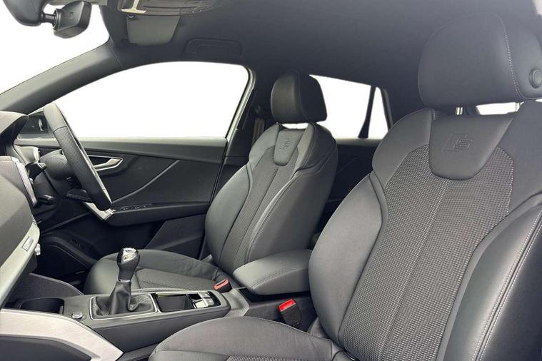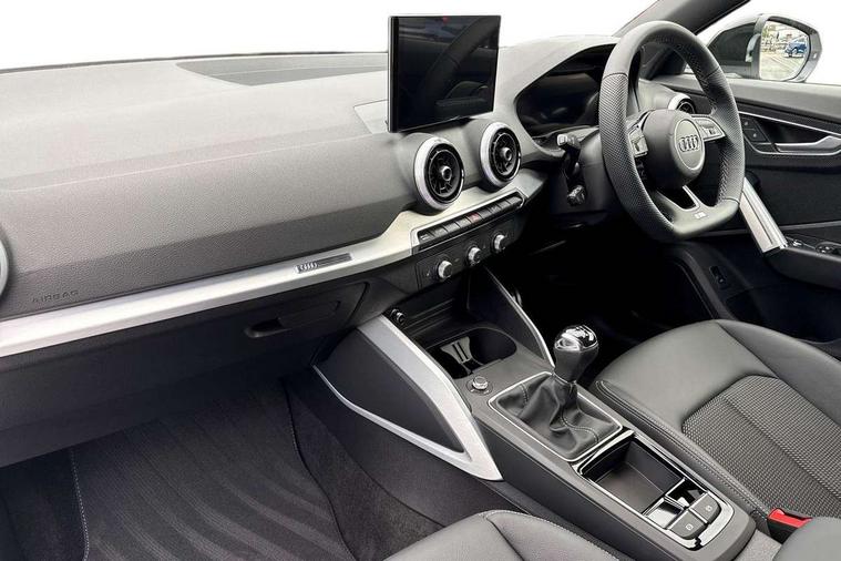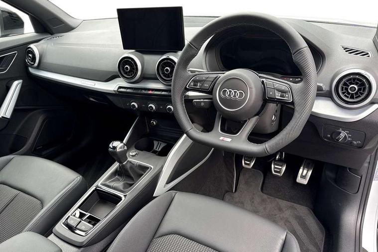 3D map display, Audi connect navigation and infotainment includes innovative services, Audi connect remote and control connects your vehicle to your smartphone, Audi drive select: power steering assistance + engine (modes: comfort, auto, dynamic, efficiency, individual), Audi smartphone interface - Apple carplay/Android Auto, USB connect, 2xSDXC card readers, voice control for navi, telephone, music and 3rd party apps, Audi virtual cockpit, Automatic start/stop system with recuperation, Bluetooth interface includes bluetooth audio streaming, Camera based traffic sign recognition, Cruise control, Distraction and Fatigue warning, E-call, Jukebox hard drive memory for music (10GB), Lane departure warning, MMI navigation plus with 8.8" touchscreen, Natural voice recognition, Power operated tailgate, Progressive steering, Rear parking sensors, Sport suspension, 6 passive loudspeakers, DAB Digital radio, USB type C port, Audi beam, Auto dimming rear view mirror, Black window trims, Bumper in full body colour paint finish, Electrically adjustable, folding, auto dimming and heated door mirrors with integrated LED side indicators, Front windscreen with grey tinted sunband, LED daytime running lights, LED headlights with dipped beam, high beam, position lights, indicators, LED rear lights, LED third brake light, Privacy glass - dark tinted rear and rear side windows from B-pillar backwards, Rear side wing doors, Rear wiper, Variable front intermittent wipers, Wheel arch trims in manhattan grey, 12V socket in front, 3 seat bench in 2nd row, 3 spoke flat bottomed multi-function leather sport steering wheel with S logo, 4-way electric lumbar support for front seats including manual seat height adjustment for both front seats, 60/40 split folding rear seat bench, Black carpets, Black cloth headlining, Front and rear head restraints, Front centre armrest, Front sport seats, Front/rear floor mats, Height/reach adjust steering wheel, Illuminated door sill trims with S logo, ISOFIX child seat mounting in front passenger and rear outer seats, Manual air conditioning, Single front passenger seat, Stainless steel pedals, Black styling pack - Q2, 3x3 point rear seatbelts, 6 airbags - Front, curtain and front side airbags, Electromechanical parking brake, Electronic stabilisation control including ABS, ASR and EDL, Front passenger airbag deactivation, Hill hold assist, Pre-sense front with pedestrian recognition, Seatbelt monitoring, Tyre pressure warning light with visual and acoustic warning, Warning triangle and first aid kit, Anti theft wheel bolts, Electronically operated child locks, Remote central door locking, Thatcham category 1 alarm, Aluminium interior element, Black dashboard, Gloss black centre console, Matt brushed aluminium trim inlays, Tool kit,