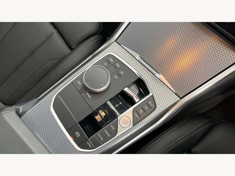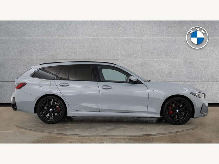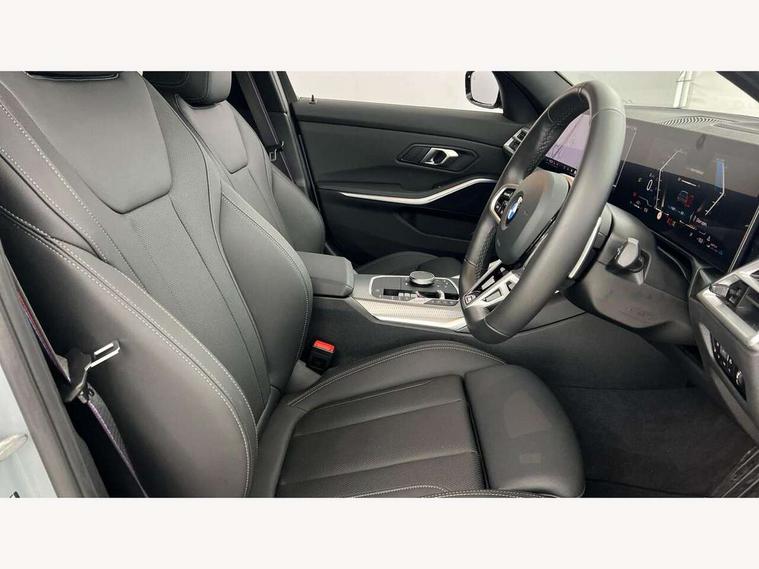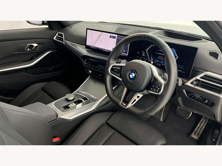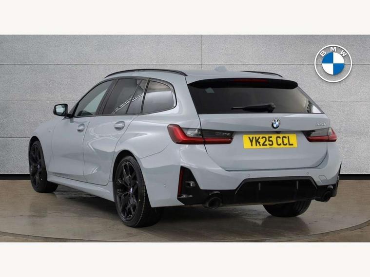 Active guard plus, Attentiveness assist, Automatic Start/stop button, Bluetooth Wi-Fi interface, BMW iDrive, BMW Teleservices, ConnectedDrive Services - last state call, Electric bootlid, Live cockpit plus with Navigation + 12.3" instrument display + 14.9" display, Intelligent voice assist, 2 USB, 4G LTE connect, Oil sensor for level and grade, Personal e-SIM, Shifting point display, Variable sport steering, Double joint spring strut front axle, Electronic differential lock control (EDLC), Fuel tank breather system, Steptronic Sport automatic transmission with steering wheel mounted gearshift paddles launch control and xtreme drive lever control, DAB tuner, 3rd brake light, Auto dimming rear view mirror, Automatic headlight beam throw control with load dependent regulating reaction, dynamic compensation of braking dive and acceleration squat, Bi-LED Low and high beam headlights, BMW emblem, engine compartment lid and tailgate, Body colour roof fin, Door sill strips, Electric windows - front and rear, with open/close fingertip control, anti-trap facility and comfort closing, Fading support, Folding wing mirror with auto dimming, Follow me home headlight function, Front and rear bumper system with replaceable deformation elements, Front apron plastic in body colour, Fuel filler flap - right rear in body colour, Heat protection glazing on front windows and windscreen, Heated washer jets, High gloss chrome kidney frame with high gloss black kidney struts, High gloss shadow line roof rails, LED daytime running lights, LED rear lights, LED turn indicator, Licence plate panel integrated into front bumper and tailgate, M high gloss shadow line exterior trim, Matt black B-pillar finsher, Matt black window recess cover, Model designation on right side of tailgate, One piece front bumper cover including towing eye cover in body colour, Rain sensor with automatic headlight activation, Rear side wing doors, Rear wiper, Reversing lights, Side frame decorative moulding black matt, Trailer stabilisation logic, Visible exhaust tailpipe finisher, Welcome lights in interior and door handle area, 12V power socket in front storage compartment, 2 front cupholder in centre console with clamping elements and matt black inlay, 3 seat bench in 2nd row, 3 spoke M Sport multifunction flat bottom leather steering wheel, 3 zone automatic air conditioning, 40:20:40 split folding rear seat with loading system, Anthracite headlining, Armrest integrated in front and rear door trim + front centre console armrest, BMW ID, Cruise control operation in steering wheel, Driving experience mode switch, Folding rear centre armrest with 2 cupholders, Front and rear headrests, Front and rear velour floor mats, Front reading light, Heated front seats, Height adjustable mechanically and infinitely variable steering column, Illuminated armrest storage compartment, Illuminated glove compartment, Illuminated luggage compartment, Lashing eyelets in luggage compartment, Single front passenger seat, Sunvisors with illuminated vanity mirrors and ticket pocket, Toolkit located in luggage compartment, Connected pack professional - 3 Series Saloon/Touring, Interior and exterior mirror pack - 3 Series Touring/Saloon, M sport exterior styling pack - 3 Series Saloon/Touring, Parking assistant pack - 3 Series, 3x3 point rear seatbelts, BMW emergency call, Child locks on rear doors, Crash sensor activating of airbags, Unlocking doors, hazard warning lights, interior light, safety battery terminal, Drive-off assistant, Driver and front passenger with seat occupancy detection for driver's and passenger side, Driver and passenger side airbags, body protection at side and airbags deploy from seat backrests, Dry braking, Dynamic brake control, Dynamic stability control + (DSC+) - Anti-lock Braking System (ABS) with brake assist and cornering brake control + Automatic Stability Control (ASC), Dynamic Traction Control - DTC, Electric parking brake including automatic hold function and automatic release of the parking brake when driving off, Front airbag deactivation, Front airbags for driver and front passenger, Head airbags in 1st and 2nd row, head protection at side, curtain airbags open from headliner above 1st and 2nd row, Plastic fuel tank, Side impact protection, Tyre pressure sensors, Ventilated front and rear disc brakes, Warning triangle and first aid kit, Alarm system, Centre lock switch, Closing system with central locking, Electronic vehicle immobiliser, Locking wheel bolts, Tyre repair kit,