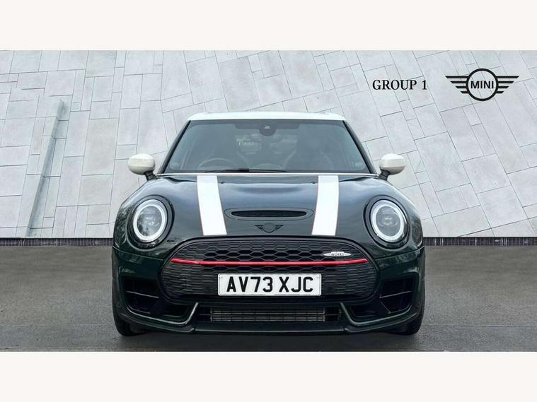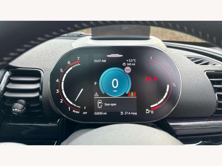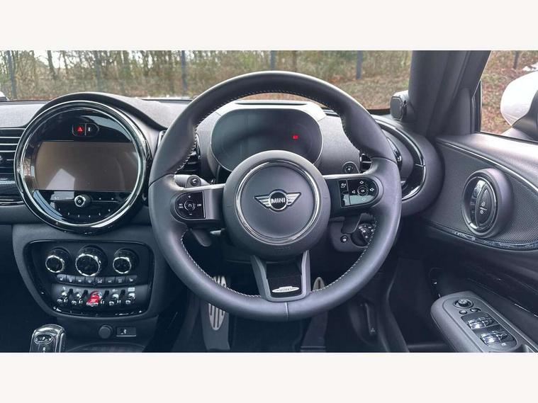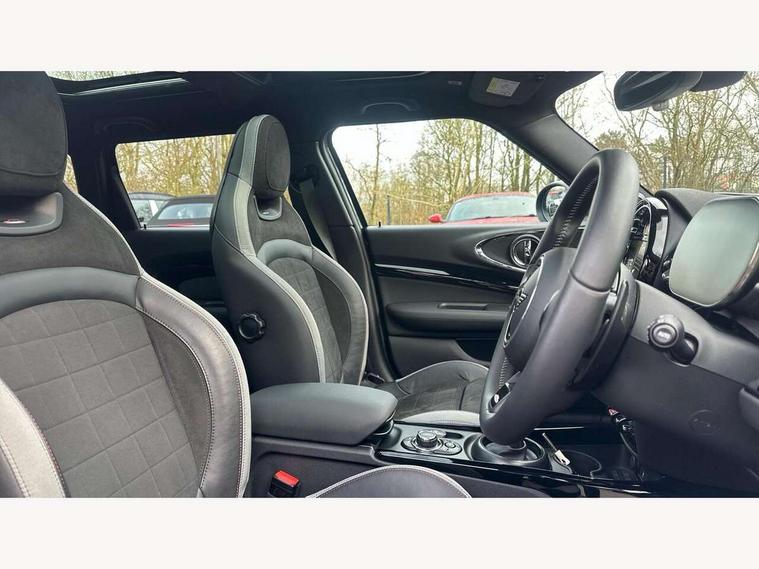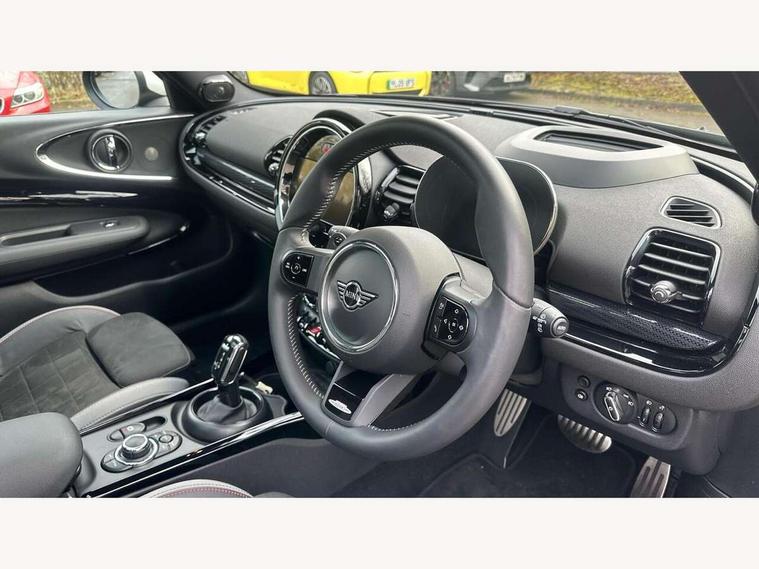 Active Guard incl speed limiting and lane departure functions with auto steering, and front collision warning with brake intervention, Automatic start/stop function with brake energy recuperation, Car sharing preparation, Compatible mobile phone bluetooth with audio streaming, Electro-mechanical speed dependant steering assistance, Instrument cluster, Mini E-call, MINI TeleServices, On board computer, 8 Speed steptronic sport transmission including electronic gear shifter and steering wheel paddles, All Wheel Drive (AWD), Double Vanos system, Fully variable valve control, High precision injection, Performance Control, FM tuner and DAB digital radio, Bonnet scoop, Chrome fuel filler cap, Dynamic brake lights, Electric windows, Heated rear window, Heated windscreen washer jets, John Cooper Works - aerodynamic kit (front and rear apron, spoiler), front and rear sport bumpers and part-painted side sills with door sill finishers, John Cooper Works entry sills, John Cooper Works rear spoiler, LED rear light with union jack design, Metal door sill strips with Cooper S imprint, Model logo on rear doors, Piano black exterior, Radiator grille piano black border with honeycomb structure in matt black with John Cooper Works logo above an individual grille struct in chilli red, Rain sensor with auto headlights, Rear fog lights, Rear side wing doors, Rear window wiper, Rear wing door, Side scuttle with MINI John Cooper Works logo in high gloss black with red border, Split rear doors, Sun/heat protection glass, Third brake light, Twin exhaust tailpipe, Variable front intermittent wipers, White indicator lenses, 12V Accessory socket in centre console, 3 seat bench in 2nd row, 360L luggage compartment capacity, 4 lashing eyes in luggage compartment, 60/40 split folding rear seat, Anthracite headlining with grab handles and clothes hooks, Chrome interior highlights, Cupholders, English handbook, Floor mats, Glove compartment, Height and length steering column adjustment, Interior lighting with 12 basic colours selectable via toggle switch in roof, Isofix rear child seat preparation, John Cooper Works leather gearshift lever and handbrake gaiter, John Cooper Works sports seat with integrated headrest, adjustable thigh support and John Cooper Works logo, LED reading lights, vanity mirror lights, front foot well light and spotlight on front seats, Multifunction steering wheel, Nappa leather steering wheel with JCW badge, Paddle shifts, Rubberised stainless steel pedals, Single front passenger seat, Storage compartments in doors, Sunvisors with vanity mirrors, Toolkit, Comfort plus pack with Park assist - Mini Clubman, Excitement pack - Clubman, Extended interior lighting pack - Mini Clubman, Navigation pack - Clubman, 17" front sport brake with 4 piston fixed calliper, 2 tone horn, 3 point seatbelts on all seats, 6 Airbags - front, side, head and seat belt tensioners, Anti-lock braking system (ABS), Child locks on rear doors, DSC - Dynamic Stability Control, Electronic handbrake, Front and rear disc brakes, Red brake callipers with John Cooper Works logo, Torsen mechanical limited slip differential, Tyre pressure monitoring system, Alarm system with tilt sensor, monitoring doors, bonnet interior and tailgate, Auto drive away locking, Comfort access system, Deadlocking function, Electronic vehicle immobiliser, Locking wheel bolts, Remote central locking, Start/stop toggle with keyless go,