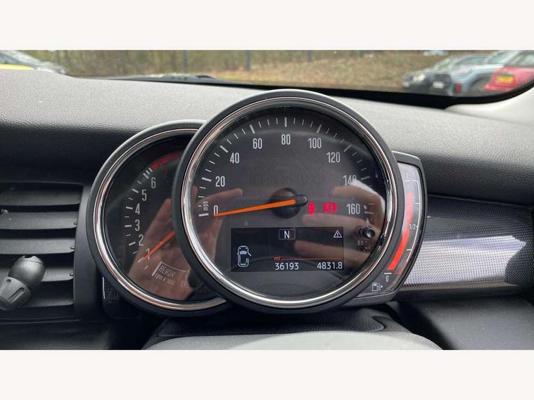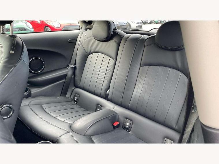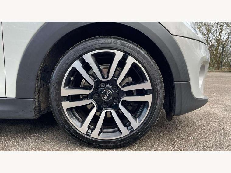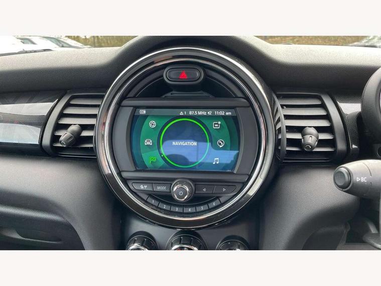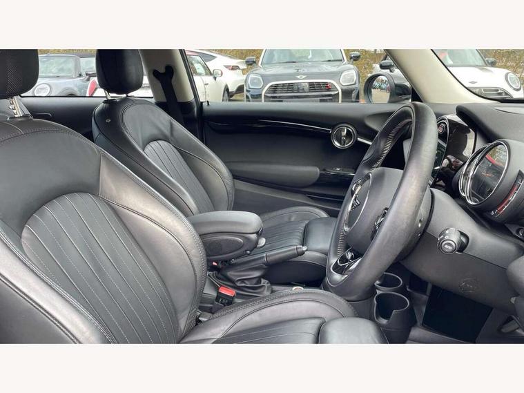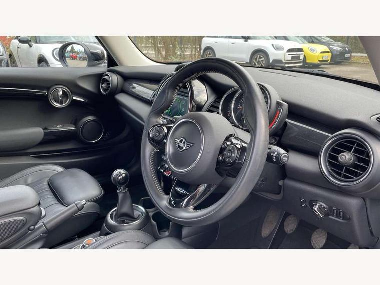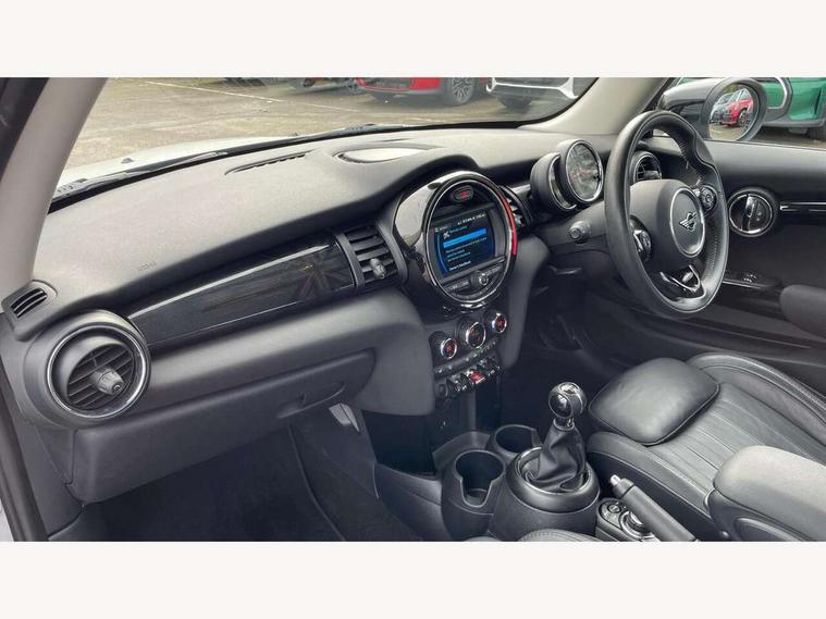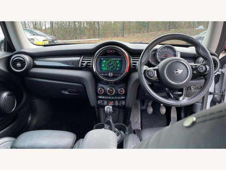 Automatic start/stop function with brake energy recuperation, Compatible mobile phone bluetooth with audio streaming, Electro-mechanical speed dependant steering assistance, Instrument cluster, Mini E-call, MINI TeleServices, On board computer, Service interval indicator, 6 Speed manual transmission including gear change indicator display, Double Vanos system, Fully variable valve control, High precision injection, 6.5" touchscreen with LED ring, FM tuner and DAB digital radio, Automatic headlight activation switch, Body colour fuel filler cap, Chrome border high gloss black slats radiator grille, Chrome line exterior, Dynamic brake lights, Electric front+rear windows, Heated rear window, Heated windscreen washer jets, LED headlight with closed ring and daytime driving lights, Left exhaust tailpipe with chrome finisher, Metal door sill strips with MINI imprint, Model logo Cooper on right of tailgate, Radiator grille bars, tailgate handle, lower front grille grating, rear central fog light in chrome, Rain sensor window wipers, Rear fog lights, Rear LED lights with union jack design, Rear window wiper, Side scuttle panel with integrated indicator, Sun/heat protection glass, White indicator lenses, 12V Accessory socket in centre console, 4 lashing eyes in luggage compartment, 60/40 split folding rear seat, Air vents, gear lever base, speakers in doors, door handles in chrome, Chrome interior highlights, Cupholders, Front and rear head restraints, Front and rear isofix with front passenger airbag deactivation, Glove compartment, Height and length steering column adjustment, Interior lighting with 12 basic colours selectable via toggle switch in roof, Knee roll and door armrests, Leather gearshift lever and handbrake gaiters, LED reading lights, vanity mirror lights, front foot well light and spotlight on front seats, Manual air conditioning, Mechanical seat adjustment, driver seat height adjust, forward/back and front seats backrest, Mini logo projection on floor from drivers exterior mirror, MINI Yours leather steering wheel with silver contrasting stitching with MINI Yours badge, Multifunction steering wheel, Storage compartments in doors, Sunvisors with vanity mirrors, Tool kit, 3 point seatbelts on all four seats, 6 Airbags - front, side, head and seat belt tensioners, Anti-lock braking system (ABS), DSC - Dynamic Stability Control, Front and rear disc brakes, Hill start assist, Single tone fanfare horn, Tyre pressure monitoring system, Alarm system with tilt sensor, monitoring doors, bonnet interior and tailgate, Electronic vehicle immobiliser, Start/stop toggle with keyless go, Chrome line interior,
