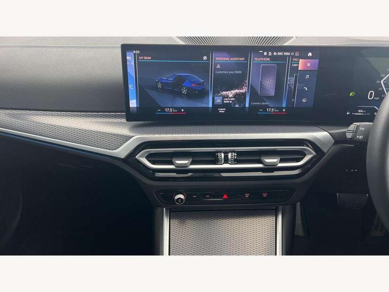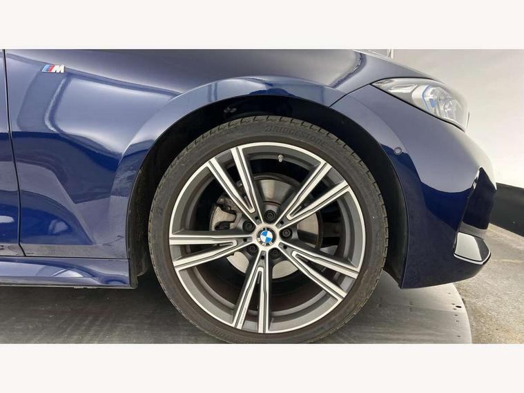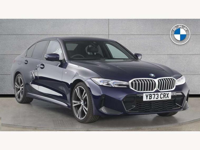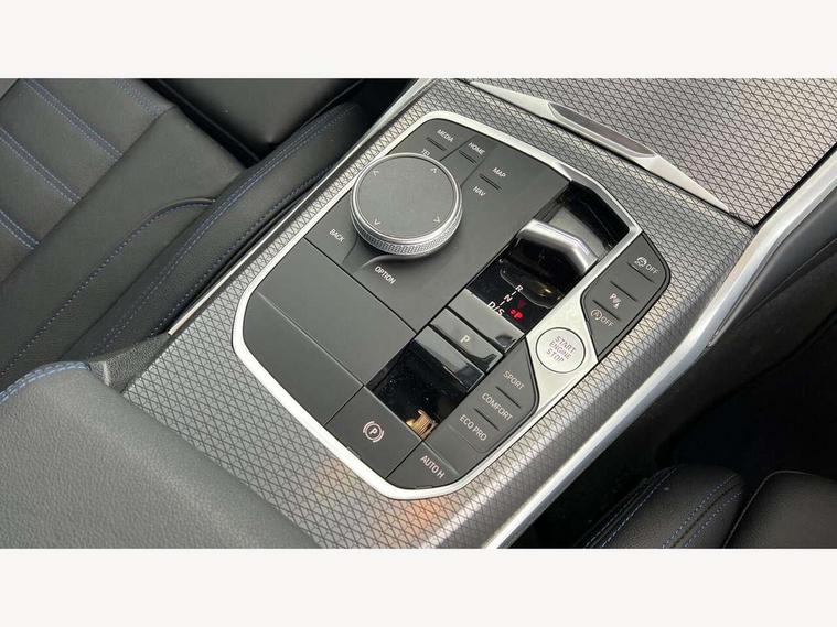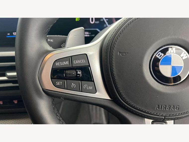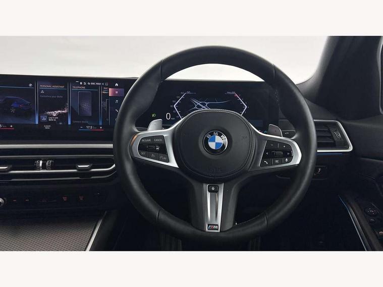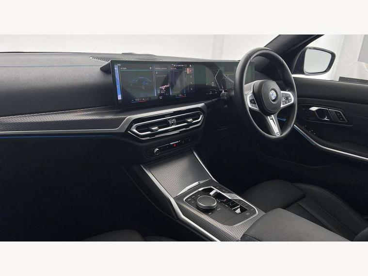 Active guard plus, Attentiveness assist, Automatic Start/stop button, BMW iDrive, BMW Teleservices, Condition based service, ConnectedDrive Services, Driving experience switch, Live cockpit plus with Navigation + 12.3" instrument display + 14.9" display, Intelligent voice assist, 2 USB, 4G LTE connect, Oil sensor for level and grade, Preparation for driver assistance, Shifting point display, Variable sport steering, Double joint spring strut front axle, Electronic differential lock control (EDLC), Fuel tank breather system, M sport suspension, Sport automatic transmission with steering-wheel mounted gearshift paddles and launch control, DAB tuner, 3rd brake light, Acoustic glazing, Automatic headlight beam throw control with load dependent regulating reaction, dynamic compensation of braking dive and acceleration squat, BMW emblem, engine compartment lid and tailgate, Body colour roof fin, Door sill strips, Electric windows - front and rear, with open/close fingertip control, anti-trap facility and comfort closing, Follow me home headlight function, Front and rear bumper system with replaceable deformation elements, Front apron plastic in body colour, Fuel filler flap - right rear in body colour, Heated washer jets, High gloss shadow line exterior trim, Illuminated bow type door handles in body colour drivers side with door lock, Interior rear view electrochromatic mirror with automatic anti dazzle function, LED headlights with LED daytime running lights and LED turn indicator, LED rear lights, Licence plate panel integrated into front bumper and tailgate, Matt black B-pillar finsher, Matt black window recess cover, Model designation on right side of tailgate, One piece front bumper cover including towing eye cover in body colour, Rain sensor with automatic headlight activation, Rear boot, Rear side wing doors, Reversing lights, Side frame decorative moulding black matt, Visible exhaust tailpipe finisher, Welcome lights in interior and door handle area, 12V power socket in front storage compartment, 2 front cupholder in centre console with clamping elements and matt black inlay, 3 seat bench in 2nd row, 3 zone automatic air conditioning, 40:20:40 split folding rear seat with loading system, Ambient inside door handle light, Ambient light design projected onto the left and right entering and exiting area, Ambient lighting front and rear with 9 selectable colours, Ambient storage compartment lighting in the centre console, Anthracite headlining, Armrest integrated in front and rear door trim + front centre console armrest, BMW ID, Contour lighting in instrument panel and door trim panel, Cruise control operation in steering wheel, Driver backrest width adjustment, Folding rear centre armrest with 2 cupholders, Front and rear ambient footwell lighting, Front and rear door exit lighting (left / right), Front and rear headrests, Front and rear reading lights, Front and rear velour floor mats, Front sport seats, Heated front seats, Height adjustable mechanically and infinitely variable steering column, Illuminated armrest storage compartment, Illuminated glove compartment, Illuminated luggage compartment, Lashing eyelets in luggage compartment, M Sport multifunction leather steering wheel, Make-up mirror lights, Single front passenger seat, Standard seat for driver and passenger with manual adjustment, Sunvisors with vanity mirrors and ticket pocket, Toolkit located in luggage compartment, Connected pack professional - 3 Series Saloon/Touring, Interior and exterior mirror pack - 3 Series Touring/Saloon, M Aerodynamics package - 3 Series Saloon/Touring, M sport exterior styling pack - 3 Series Saloon/Touring, Storage compartment pack - 3 Series Saloon/Touring, 3x3 point rear seatbelts, BMW emergency call, Child locks on rear doors, Crash sensor activating of airbags, Unlocking doors, hazard warning lights, interior light, safety battery terminal, Driver and front passenger with seat occupancy detection for driver's and passenger side, Driver and passenger side airbags, body protection at side and airbags deploy from seat backrests, Dynamic brake control, Dynamic stability control + (DSC+) - Anti-lock Braking System (ABS) with brake assist and cornering brake control + Automatic Stability Control (ASC), Dynamic Traction Control - DTC, Electric parking brake including automatic hold function and automatic release of the parking brake when driving off, Head airbags in 1st and 2nd row, head protection at side, curtain airbags open from headliner above 1st and 2nd row, Plastic fuel tank, Side impact protection, Tyre pressure monitoring with three level warning strategy, Ventilated front and rear disc brakes, Warning triangle and first aid kit, Alarm system, Centre lock switch, Closing system with central locking, Electronic vehicle immobiliser,