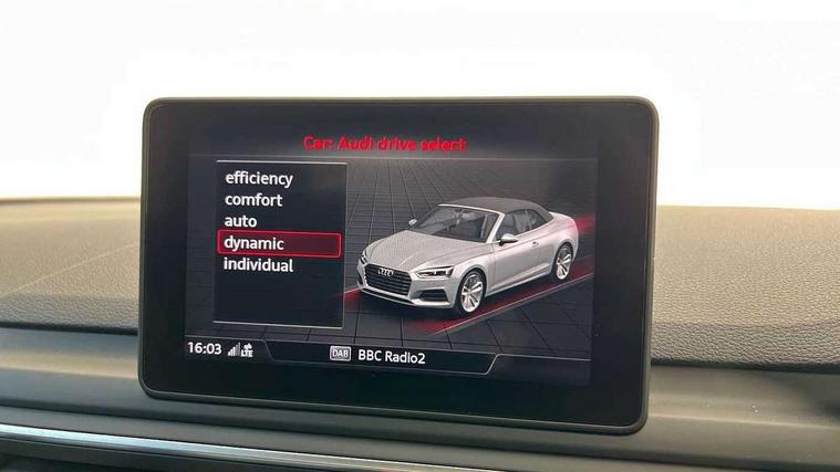 7" Colour driver information system, Audi connect, Audi drive select, Audi parking system plus with front and rear sensors, Audi smartphone interface, Automatic start-stop system with coasting functionality and efficiency programme, Bluetooth interface, Electric boot release, Electro-mechanical power steering, MMI Navigation, Seat belt microphone, Service interval indicator, Voice control system, Diesel particulate filter, CD player, DAB Digital radio, Two SDXC card slots, Air inlets in titanium black with matt aluminium inlay, Aluminium roof frame and window trim, Auto dimming rear view mirror, Body colour bumpers, Body coloured door mirrors, Chrome plated exhaust pipe, Electric adjustable heated door mirrors, Electric front windows, Front fog lights, Fully automatic acoustic hood, High gloss black B pillar trims and triangular rear door trim, Rain and light sensors, Rear diffuser strip in chrome, Twilight grey matt radiator grille in matt aluminium inlay, Windscreen with acoustic glazing, 2 x USB charging port with aux input socket, 3 spoke multi-function leather steering wheel, 4 way electric lumbar support for driver and front passenger, 50/50 split folding 2 seater rear bench seat, Adjustable steering column, Aluminium door sill trims, Centre console with cupholders, Cloth headlining, Deluxe 3 zone electronic climate control, Front centre armrest, Front head restraints, Front/rear floor mats, Gearshift paddles, ISOFIX child seat mounting and top tether, Jack and tool kit, Luggage compartment mat, Rear headrests, Titanium grey headlining, Non Smokers pack, 4 airbags in front, Electromechanical parking brake, Electronic Stabilisation Control (ESC) including ABS, ASR and EDL, Front passenger airbag deactivation, Height adjustable front seatbelts, Hill hold function, Multi-Collision braking, Pop-up bonnet for pedestrian protection, Pre sense city, Seatbelt monitoring, Tyre pressure warning, Variable restraint system, Warning triangle and first aid kit, Anti theft alarm system, Anti theft wheel bolts, Immobiliser, Keyless Go, Remote central locking, Tyre repair kit,