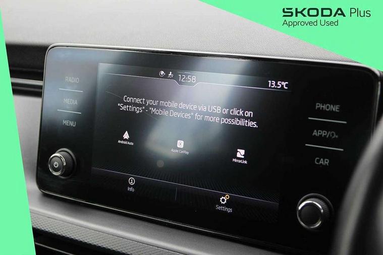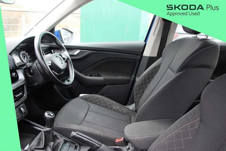 Bluetooth system, E-call, Front assist system, PAS, Service indicator, Speed limiter, Wired smartlink (includes android auto and mirrorlink), 8 Speakers, Auxiliary input socket, DAB Digital radio, Body colour bumpers, Body colour door mirrors and handles, Chrome grille surround, Dimming rear view mirror with black surround, Electrically adjustable and heated door mirrors, Front and rear electric windows, Headlight range control, Heated rear window, LED rear lights - low functionality, LED third brake light, Light sensors, Rain sensor, Rear fog lights, Rear side wing doors, Rear wiper, 12V Accessory socket in centre console, 3 seat bench in 2nd row, Chrome inner door handles, Cloth upholstery, Front head restraints, Glove compartment with illumination, Ice scraper, Isofix child seat fittings on outer rear seats, ISOFIX on front passenger seat, Manual lumbar support for front seats, Rake/reach adjustable steering wheel, Reading lights, Single front passenger seat, Sun visors with illumination on front passenger, Textile floor mats, Third rear headrest, Top tether for front passenger seat, Umbrella in driver's door, 3x3 point rear seatbelts, Airbags - driver and front passenger, ESP, Front passenger airbag deactivation switch, Front side airbags with curtain airbags, Hill hold control, Manual parking brake, Manual rear child locks, One tone horn, Rear disc brakes, Seatbelt reminder for driver an co-driver, Traction control, Tyre pressure monitor, Anti-theft alarm system with interior monitoring, backup horn, towing protection and remote central locking with SAFE system, Anti-theft wheel bolts, Electronic engine immobilizer,