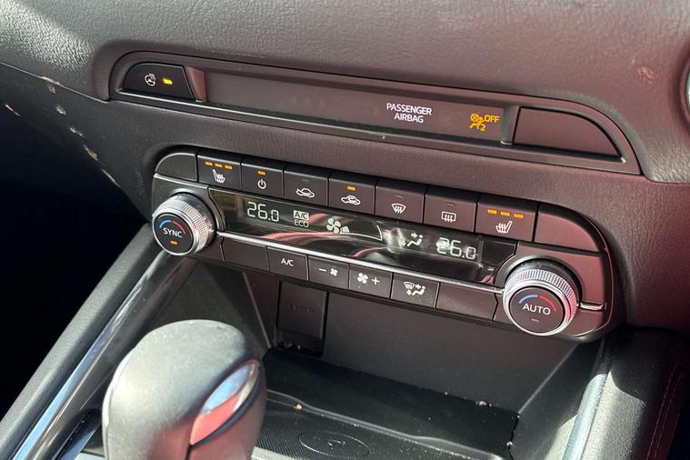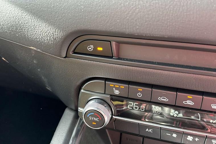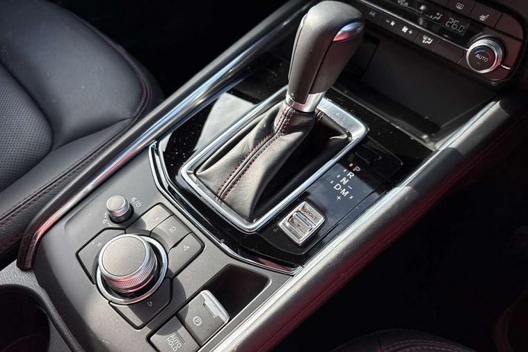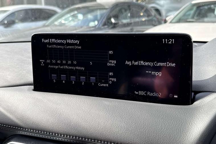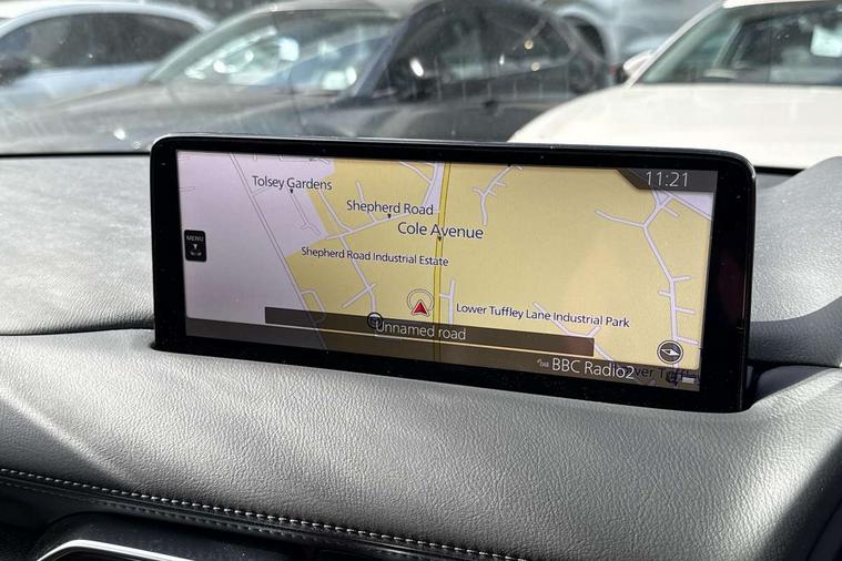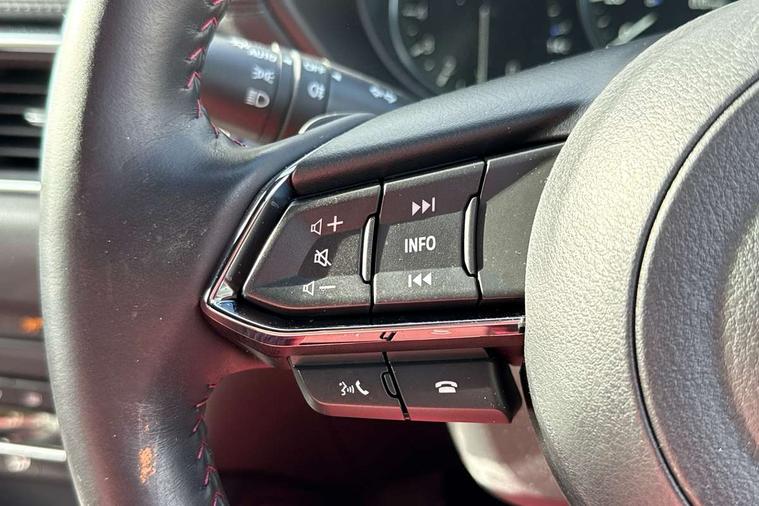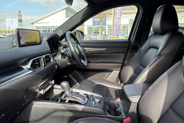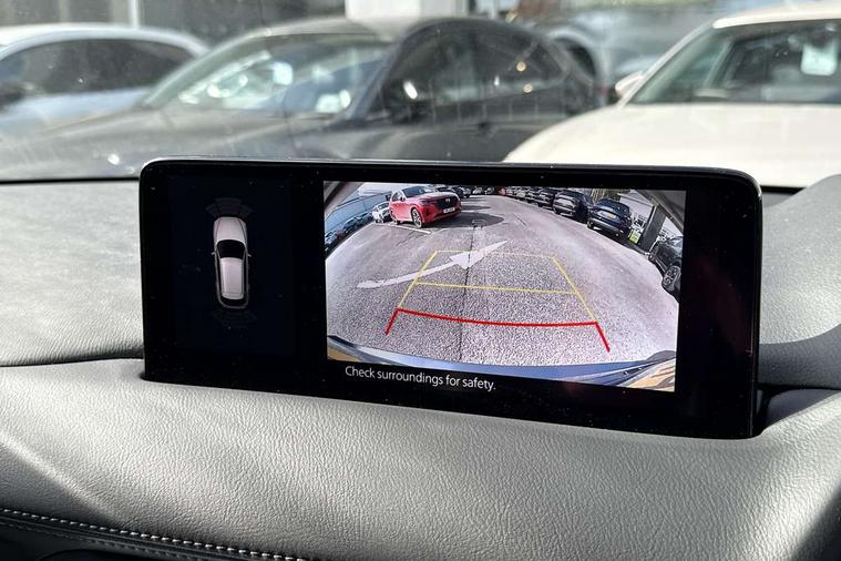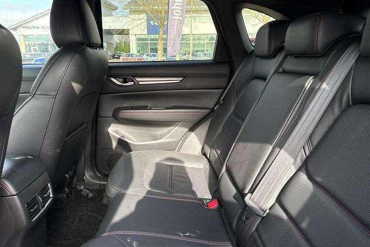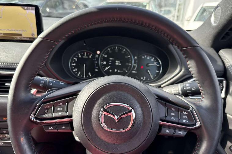 10.25" display with Mazda Connect infotainment, 7" colour TFT display, Advanced blind spot monitoring, Bluetooth connectivity with voice control, Collision prevention assist, Connected services, Cruising Traffic Support, Drive mode selector, Electric power steering, Emergency stop signalling system, Engine start/stop button, Forward collision warning, Front and rear parking sensors, Integrated navigation system, Intelligent speed assist, Lane departure warning system, Lane keep assist, Power liftgate, Qi wireless phone charging, Radar cruise control with Stop and Go, Rear cross traffic alert, Reversing camera, Service indicator, Traffic sign recognition (TSR), Trip computer, Windscreen projected colour active driving display (HUD) with memory, Wireless apple car play/android Auto, Cylinder Deactivation, i-stop, AM/FM radio, Bluetooth audio streaming, Bose premium sound system with 10 speakers, DAB Digital radio, Multimedia Commander including separate volume dial, Steering wheel mounted audio controls, Adaptive front lighting system, Auto dimming rear view mirror, Automatic headlights, Black honeycomb door trim decoration panel, Black honeycomb interior decoration panel, Body colour roof spoiler, Coming/leaving home lighting function, Door mirror integrated indicators, Dual large chrome tailpipes, Dusk sensitive headlamps, Electric front/rear windows with one touch auto up/down, Front grille in gloss black finish, Front grille in gloss black with red accent + gloss black signature wing, Gloss black B and C pillars garnish, Gloss black door mirrors, Gloss black front and rear lower bumper mouldings, Gloss black tire arch and side mouldings, High beam assist, Intermittent rear wash/wipe, LED auto levelling, LED daytime running lights, LED front fog lights, LED Headlights, LED third brake light, Power folding and heated door mirrors, Power tilt/slide sunroof, Privacy glass (rear side windows only), Rain sensing front wipers, Rear side wing doors, Red front grille accent, Red stitching and accents on door trim, knee pad, console lid, steering wheel, shift boots, Scuff plates, Shark fin antenna, Signature LED rear combination lights, Variable intermittent front wash/wipe, Windscreen wiper de-icer, 12v electrical power outlet, 3 seat bench in 2nd row, 3 stage heated front seats, 40:20:40 Karakuri fold-flat seat system, 6 way electric adjustable passenger seat, 8 way electric driver seat with lumbar support + memory, Black roof lining, Cargo room flat floor board with waterproof undertray, Driver seat power slide, recline and height adjustment, Driver, Front passenger and two rear grab handles with coat hooks, Driver/passenger front seatback pockets, Driver/passenger sunvisors + illuminated vanity mirrors (drivers with ticket holder), Dual zone climate control, Folding centre armrest with 2 cup holders, Front and rear door pockets, Front centre storage with two cupholders, Front passenger seat power slide, recline and height adjustment, Heated steering wheel, Humidity sensor, Illuminated glovebox, Interior dome light with integral spotlight, ISOFIX child seat anchorage points attached on outer rear seats, Karakuri tonneau cover, Leather upholstery, Leather wrapped steering wheel and gear knob, Luggage compartment LED lighting, Luggage compartment power outlet, Paddle shifts, Rear air vents, Rear headrests, Rear seat recline, Roof mounted sunglasses holder, Single front passenger seat, Three height adjustable head restraints, Tilt/height adjustable steering wheel, USB Connectivity (2x front Type-C, 2x rear Type-B), White interior LED illumination lighting, 3 point front seatbelts with pre-tensioners, 3 rear 3 point seatbelts, ABS, Advanced Smart City Brake Support - SCBS, Child locks on rear doors, Driver and front passenger side airbags, DSTC-Dynamic Stability and Traction Control, Dual front airbags, Electronic brake force distribution, Electronic parking brake with auto hold, ESP, Front and rear curtain airbags, Front passenger airbag deactivation, G-Vectoring control, Hill hold assist, Seatbelt reminder front and rear, Single stage passenger airbags, Smart brake support with forward obstruction warning, Tyre pressure monitoring system, Automatic door locking when moving off, Deadlock, Immobiliser, Power door locks, Remote central locking, Smart keyless entry, Thatcham Cat.1 alarm, 19" Black alloy wheels, Tyre repair kit,