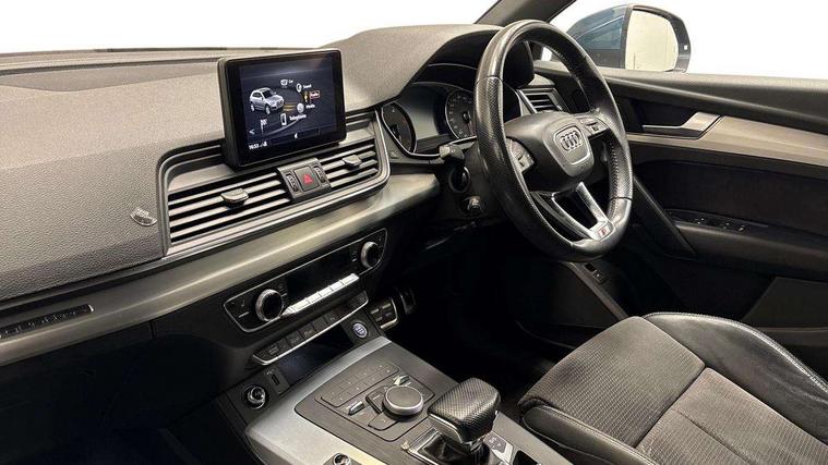 Audi connect, Audi drive select, Audi smartphone interface, Driver information centre with colour display in instrument panel, Electric power steering, Power tailgate, Remote electric boot opening/closing, SD card based MMI navigation, Service interval indicator, Voice control system, Diesel particulate filter, 2 USB ports, Audi sound system, Auxiliary input socket, CD player, DAB Digital radio, MMI radio plus with 7" colour MMI screen and MMI controller, Acoustic windscreen, Aluminium roof rails, Aluminium sill plates, Auto dimming rear view mirror, Black high gloss front air inlet in matt aluminium effect, Body colour bumpers, Body colour door mirrors, Body colour rear diffuser insert, Chrome exhaust tailpipe, Electric headlight adjustment, Electrically adjustable and heated door mirrors, Front and rear electric windows, Front fog lights, Headlight range control, Headlight washers, Honeycomb side air inlet in titan black, Light and rain sensor for auto activation of lights and windscreen wipers, Loading sill protector in stainless steel, Privacy glass with front acoustic glazing, Rear diffuser strip in matt aluminium silver, Rear spoiler, Rear wiper, S Line side skirts, Selenite silver underbody guard, Twilight grey matt radiator grille with matt aluminium horizontal chrome struts, 3 rear headrests, 3 zone climate control, 4 way electric lumbar support for driver and front passenger, 40:20:40 split folding rear bench seat, Black cloth headlining, Front centre armrest with 12v socket, Front sports seats, Front/rear floor mats, Height adjustable driver's seat, Height adjustable front head restraints, Illuminated door sills, Isofix front passenger and rear seat preparation, Jack and tool kit, Load compartment cover, Luggage compartment carpet, Matt selenite silver door inserts, Perforated leather gearknob, Reach + rake adjustable steering column, Removable luggage compartment floor, Removable net partition, Roller blind loadspace cover, Stainless steel pedals, Sunvisors with vanity mirrors, Non Smokers pack, 3 point seatbelts on all seats, ABS, Curtain airbags, Driver and passenger airbags, Driver and passenger side airbags, Electromechanical parking brake, ESC with ASR, ESP, First aid kit, Front passenger airbag deactivation, Hill descent control, Seat belt force limiter, Seatbelt warning lamp, Traction control, Tyre pressure monitor, Warning triangle, Keyless Go access/ignition system, Locking wheel bolts, Remote central locking, Thatcham category 1 alarm + immobiliser, Contrast stitching,