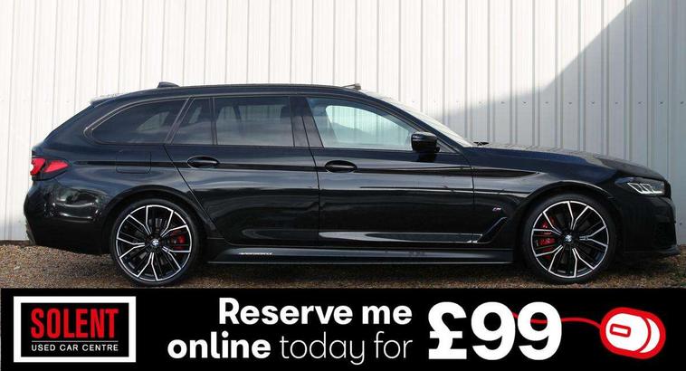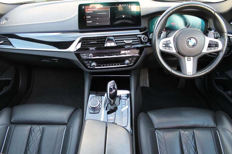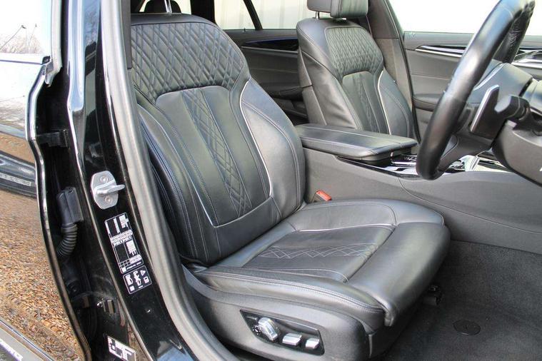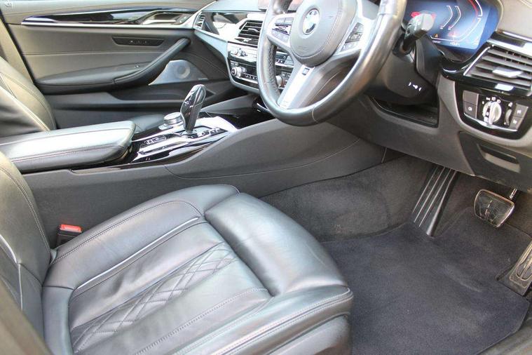 32GB hard disc drive (HDD) memory, Active Guard, BMW Live Cockpit Professional sat nav system with 12.3" instrument display and high resolution control display, BMW Teleservices, Brake pad wear indicator, Cruise control with brake assist, Driving experience switch, eCall emergency call system, Electric boot lid - electrically opening/closing rear tailgate, Electric Power Steering (EPS) with Servotronic, iDrive controller with shortcut buttons, Intelligent emergency call, Multifunctional instrument panel, Oil sensor for level and grade, On board computer inc. average speed, fuel consumption, liquid crystal Info display, journey computer, outside temperature display, personal profile, On-board diagnosis - OBD, Powered by Operating System 7.0, Service interval indicator, Speed limiting function, Stop/start button, 48V Mild hybrid technology, Diesel particulate filter, Drive performance control with ECO PRO comfort + sport mode, Engine cover with twin turbo designation, M sport suspension, Steptronic transmission with gearshift paddles on steering wheel, DAB Digital radio, Favourite buttons, Acoustic glazing, All round anti-corrosion system, Automatic windscreen wipers and automatic headlight, Automatically dimming rear view mirror, BMW Individual high gloss shadow line includes exterior mirror frame, window frame surround, B pillar finish, air breather in high gloss black, Body colour door handles, Body coloured bumpers, Door handle illumination, Dynamic brake lights with LED technology, Electric front and rear windows with fingertip open/close + anti-trap facility and comfort closing function, Electrically adjustable and heated exterior mirrors includes integrated direction indicators and automatic parking function, Folding exterior side mirror with auto- dimming, Follow me home headlight function, Heated windscreen washer jets, High gloss black active air stream kidney grille, High gloss shadow line roof rails, Independent opening for tailgate window, LED daytime running lights, LED third brake light, M designation on front side panels, left and right in chrome, Rear side wing doors, Rear wiper, Trapezoidal visible exhaust tailpipes, xDrive designation on tailgate, 12V power socket in front and rear, 3 seat bench in 2nd row, 40/20/40 split folding rear seats with additional mechanism in luggage compartment, Anthracite headlining, Armrest - front and rear integrated door trim, centre console includes storage compartment, rear centre includes 2 cupholders, Child seat ISOFIX attachment with rear outer seats includes top tether, Cup holders (2 front and 2 rear), Front and rear footwell lights, Front reading lights, Height and length adjustable steering column and activation via lateral lever on the steering column, Lockable glove compartment with light, M door sill finishers, M specific pedals, M specific velour floor mats, Multifunction controls for leather steering wheel, Rear headrests, Retractable luggage compartment dividing net, Single front passenger seat, Three spoke sport M leather steering wheel, Ambient lighting pack - 5 Series, Connected package professional - 5 Series, M Aerodynamic pack - 5 Series, Parking assistant pack - 5 Series, Airbags - driver/front passenger, rear and side, first and second row seats head airbags, front passenger seat airbag deactivation, Anti-lock braking system (ABS), Automatic Stability Control (ASC), Brake assist function, Brake energy regeneration, Cornering brake control (CBC), Crash sensor activating central locking release, hazard warning lights, fuel cut off and interior lighting, Deformation zones - front and rear with door reinforcements and bumpers up to 2.5 mph, DSC - Dynamic Stability Control, Dynamic brake control, Dynamic Traction Control - DTC, Electromechanical parking brake with automatic drive away release and auto hold function, Electronic brake force distribution, Engine drag torque control, Front and rear brake discs with interior ventilation, Front head restraints with anti-whiplash, Hill start assist, M Sport brakes in high gloss blue painted brake callipers with M designation, Mechanical child proof lock on rear doors, Passive protection for pedestrians, Rear door child safety locks, Side impact protection, Three point seat belts for all four seats, Two tone horn, Tyre pressure indicator, Warning triangle and first aid kit, Alarm system (Thatcham 1) with remote control and electronic engine immobiliser, Locking wheel bolts,
