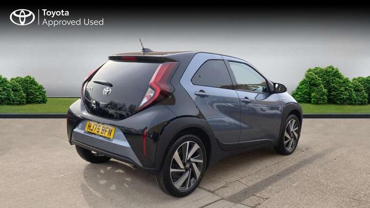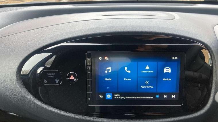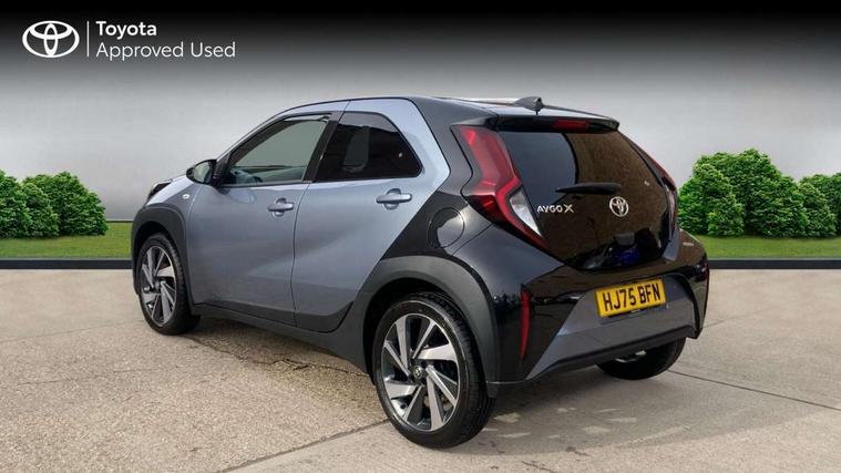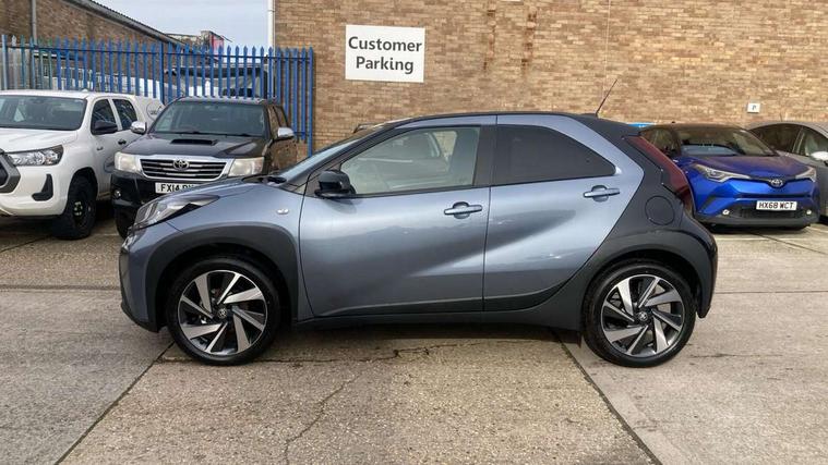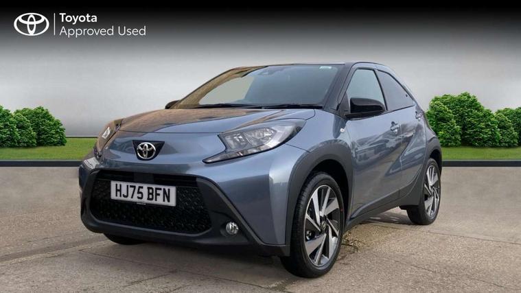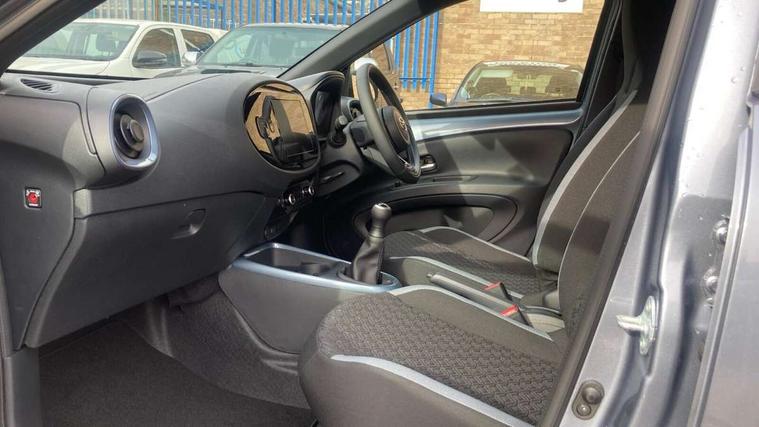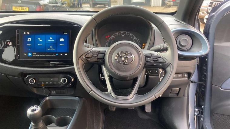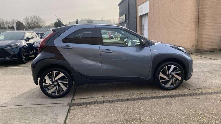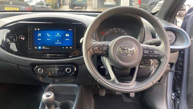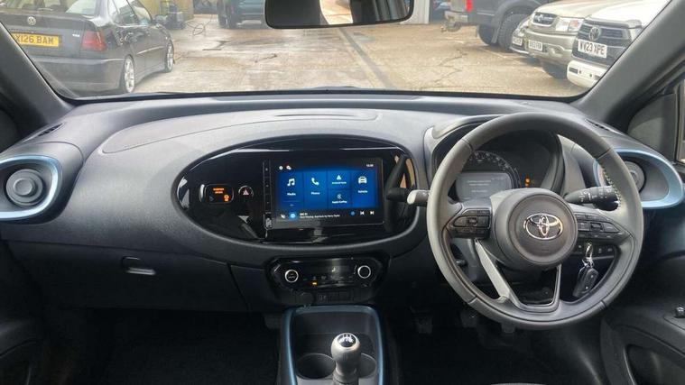 4.2" TFT colour screen, Adjustable speed limiter, Analogue speedometer, Bluetooth connectivity, Digital tachograph, Driver attention alert system, eCall emergency call system, Electric power steering, Intersection turn assist, Key reminder warning, Noise reduction kit, Pre collision system with emergency steering assist, Reversing camera with static guide lines, Smart phone integration with Apple car play/Android Auto, Speed limit display, Start and stop, Vehicle Stability Control (VSC), 4 speakers, 9" HD multimedia display touch screen with Toyota smart connect, DAB digital audio broadcast, USB connector, Auto headlights, Auto wipers, Automatic headlights cut-off, Bicycle towing hook, Black contrast roof, Black side protection mouldings, Black wheel arch mouldings, Body colour door handles, Body coloured front bumper, Boot door scuff plate, Eclipse black rear bumper, Electric heated door mirrors, Follow me home headlights, Front fog lights, Front power windows, Gloss black door mirrors, Gloss black upper front grille, Headlight cut-off reminder, LED daytime running lights, LED front light guide, LED High mounted stop lamp, Manual day/night rear view mirror, Manual headlight levelling, Pagoda roof, Power adjustable door mirrors, Power back door, Privacy glass, Projector halogen headlights, Rain sensor, Rear combination lights LED bulb type, Rear side wing doors, Rear windscreen defogger, Rear windscreen wiper, Short antenna, Variable intermittent windscreen wipers, 12v power outlet - front, 2 seat bench in 2nd row, 3 spoke leather steering wheel, 50/50 split folding rear seat, Adhesive roof headlining, Adjustable speed limiter switch on steering wheel, Audio and telephone switches on steering wheel, Auto air conditioning, Black insert on steering wheel, Black roof lining, Boot light, Centre room light, Chrome interior door handles, Chrome surround on air conditioning buttons, Clean air filter, Console box storage in body color, Fabric upholstery, Floor mats, Front and rear cup holders, Front head rest deco art, Front head restraints, Height adjustable driver seat, Intelligent adaptive cruise control switch on steering wheel, ISOFIX child restraint system on rear seats, Lane departure alert switch on steering wheel, Leather gearshift knob, Manual tilt steering wheel, Manually reclining and sliding driver seat, Manually reclining and sliding front passenger seat, Multimedia switches on steering wheel, Pollen filter, Rear door pockets, Rear head restraints, Satin silver insert on gear shift knob, Single compartment glovebox with lights, Single front passenger seat, Soft tonneau cover, Sun visors with mirror on driver and passenger side, Voice recognition switch on steering wheel, Toyota safety sense pack - Aygo X, Anti lock braking system + Electronic brake force distribution, Child safety door lock, Emergency brake light signal (EBS), Hill start assist control (HAC), Passenger airbag on/off switch, Seat belt reminder for front and rear seats, Supplement restraints system (SRS) - 6 airbags, Traction control, Tyre pressure warning system, Immobiliser, Remote power door locks, Black wheel centre caps, Tyre repair kit,