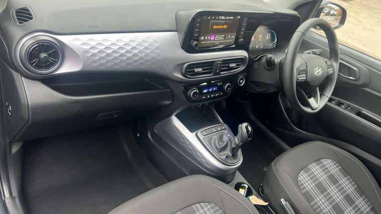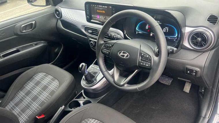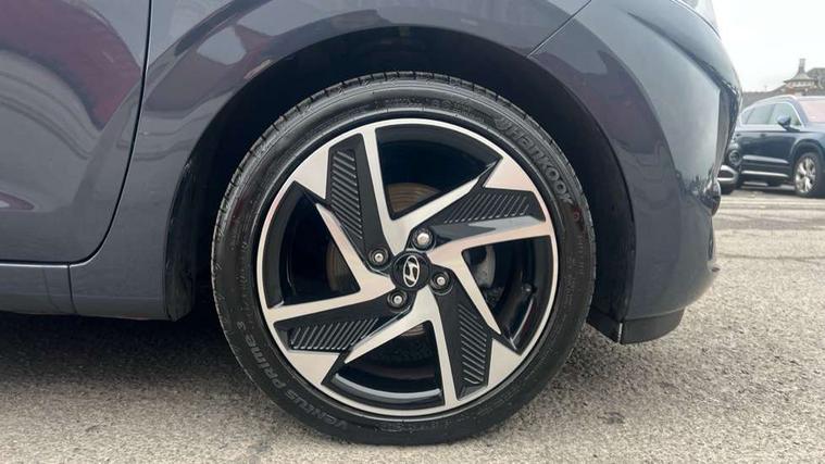 Apple car play/Android Auto, Bluelink mobile remote connectivity, Bluetooth connectivity with voice recognition, Cruise control, Driver attention alert system, eCall emergency call system, Forward Collision-Avoidance Assist (FCA) - Pedestrian/Cyclist, Front USB-C charging and USB-A data, Full-width 4.2" LCD instrument cluster, Intelligent speed limit assist, Lane departure warning system with lane keep assist - LKAS, Lane follow assist, PAS, Rear parking sensors, Rear view camera with guidelines, Roadside assistance, Start/Stop function, Tailgate, Trip computer, Wireless charging pad, 2 front/2 rear speakers, Rear USB-C device charger, Steering wheel audio, phone and cruise controls, 1 speed non intermittent rear windscreen wiper, Black finish on B pillars, Body colour door handles, Body coloured bumpers, Body coloured door mirrors, Electric folding door mirrors, Electric front windows, Electric rear windows, Electrically adjustable and heated door mirrors, Flat metal emblem, Front fog lights, Front grille in glossy black, Front intermittent wipers, Halogen bi-function headlights, Headlights inner with Black Blade design, Heated rear window, High beam assist, Indicator light on door mirrors, LED DRLs diamond mesh design, Privacy glass - Rear windows and tailgate, Rear roof spoiler with integrated LED brake light, Rear side wing doors, 12v power outlet - front, 3 seat bench in 2nd row, 60/40 split folding flat to floor rear seats, Air conditioning, Auto light control, Bottle holders in front/rear doors + front centre console, Cabin and luggage compartment interior lighting, Cloth upholstery, Driver + passenger vanity mirrors, Driver's seat height adjustment, Driver/passenger sunvisors with ticket holders, Floor mats, Front door pockets, Front Head Restraints - Vertical and Horizontal Adjustment, Front LED blue mood lighting, Glove compartment, Heated front seats, Heated steering wheel, Height adjustable steering column, Isofix child seat preparation, Leather multifunction steering wheel, Rear door pockets, Single front passenger seat, Vertical adjustment rear head restraints, 3x3 point rear seatbelts, Airbags - front, front side and curtain airbags, Anti-lock brake system (ABS), Autonomous emergency braking (AEB) with forward collision warning system, Brake assist function, Childproof rear door locks, Electronic stability control, Front and rear seatbelt reminder, Front seatbelt pretensioners, Hill start assist control (HAC), Passenger airbag deactivate switch, Traction control, Tyre pressure monitoring system, Immobiliser, Perimeter alarm, Rear occupant alert, Remote central locking, Second remote key, Smart key with motion sensor, Speed sensitive auto door locking, 16" alloy wheels, Tyre repair kit,