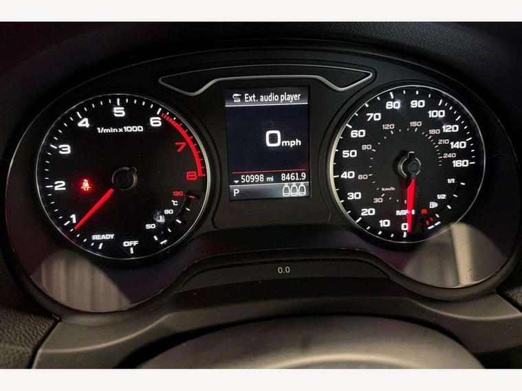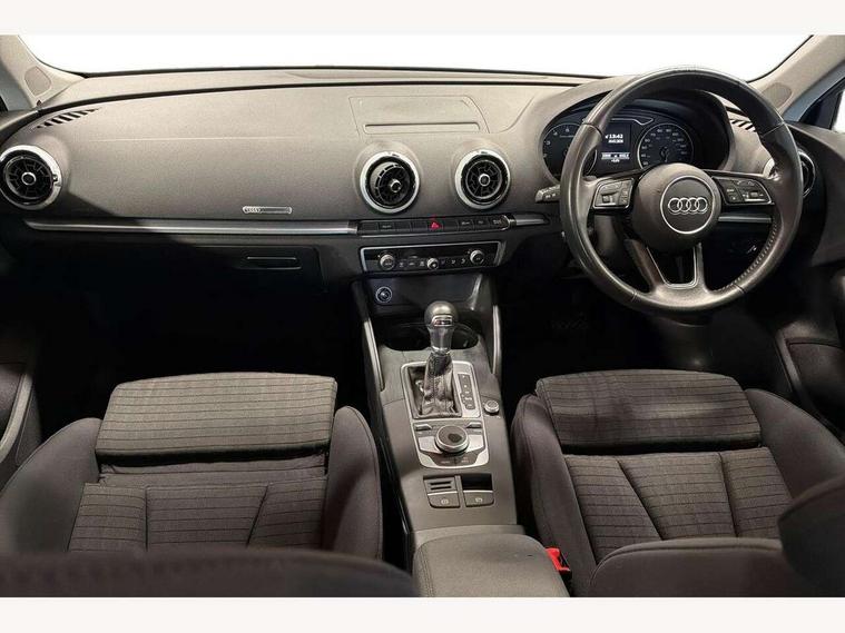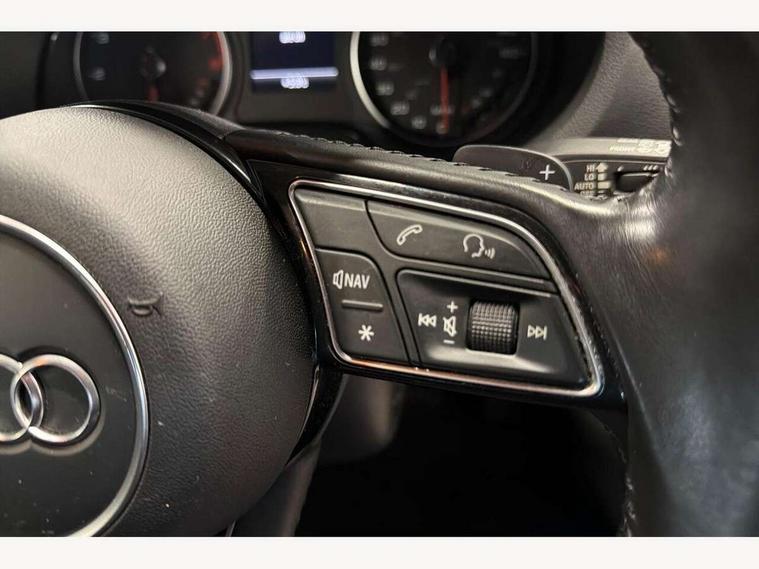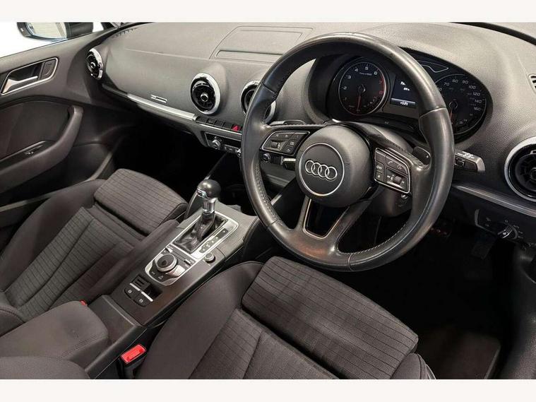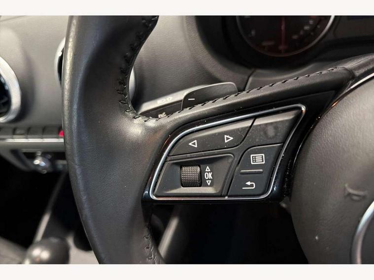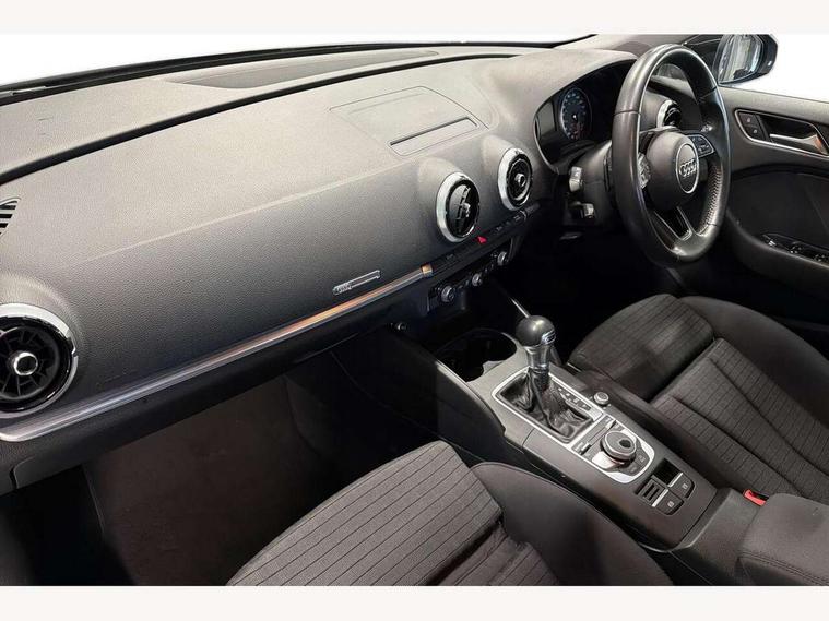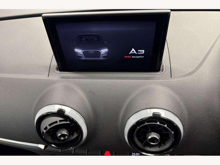 Audi connect, Audi drive select, Audi smartphone interface, Colour driver's information system display, Electro-mechanical PAS, HDD satellite navigation system radio single CD/DVD player MMI control system, Mobile telephone preparation - bluetooth interface, Service interval indicator, Speed limit display, Voice control system, 2 USB ports, Audi music interface, Auxiliary input socket, CD player, DAB Digital radio, MMI radio plus with 7" colour MMI screen and MMI controller, Aluminium window trim, Auto dimming rear view mirror with light and rain sensors, Body colour bumpers, Body colour door mirrors with integral indicators, Body colour roof spoiler, Chrome exhaust tailpipes, Electric front windows, Electric operated/heated door mirrors, Electric rear windows, Heated windscreen washer jets, LED daytime running lights, Matt black radiator grille, Rear wiper, Sport specific side air inlet grille and diffuser insert, Xenon headlights, 3 adjustable rear headrests, 4 lashing points to secure luggage, Adjustable front armrest, Aluminium door sill trims, Dual zone electronic climate control, Front and rear interior lights with delay, Front passenger seat isofix location point, Front sports seats, Front/rear floor mats, Height/depth adjustable steering column, Illuminated glovebox, ISOFIX child seat preparation+airbag deactivation, Jack and tool kit, Rock grey headlining, Steering wheel gearshift paddles, Storage compartment in centre console, Storage compartment under front seats, Storage compartments in doors, Non smoking pack - A3, 3 point seatbelts on all seats, ABS/EBD, Active bonnet, Active front headrests, ASR, Curtain airbags, Driver and passenger side airbags, Driver/Front Passenger airbags, Drivers knee airbag, EDL, Electromechanical parking brake, ESC - Electronic Stability Control + traction control, Front passenger airbag deactivation, Manual rear child locks, Multi-Collision braking, Seatbelt warning, Tyre pressure warning, Warning triangle and first aid kit, Anti theft alarm, Anti-theft wheel bolts, Remote control central locking, Thatcham category 1 alarm + immobiliser, Aluminium air vent surrounds, Aluminium mistral silver inlay, Aluminium trim elements, 17" 5 Arm design alloy wheels, Space saver spare wheel,