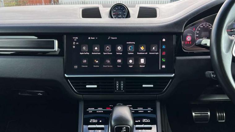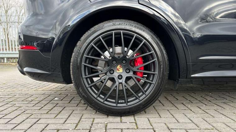 Brake pad wear indicator, Central analogue rev counter with black dial face and GTS logo, Driver personalisation for climate, audio and communication, assistance systems and other customisable car systems, Emergency call service, High resolution 12.3-inch touchscreen display in full HD resolution, Individual mode for individual selection of vehicle drive settings, Instrument cluster with two high-resolution displays, Mobile phone preparation with Bluetooth interface for telephone and music, Porsche Communication Management (PCM) including online navigation module, mobile phone preparation, audio interfaces and voice control system, Power tailgate, Vehicle electrical system recuperation, Warn and brake assist including pedestrian protection, 8 Speed Tiptronic S transmission with auto Start-Stop and coasting function, 90 litre fuel tank, Adaptive cylinder control, Aluminium cylinder heads and engine block, Direct fuel injection (DFI) with central injector position, Front and rear aluminium multi link axles, Gasoline particulate filter, Porsche Torque Vectoring Plus (PTV Plus), Sport mode, Twin turbo charged with twin scroll turbochargers, VarioCam, Water cooled with thermal management, Digital radio, Two USB charge ports in rear compartment, Two USB charging and connectivity ports in the front centre console storage compartment, Active air intake flaps, Automatic headlight activation including welcome home functionality, Bumper system with high strength cross members and two deformation elements + Two receptacles with screw threads towing lug + onboard tool kit, Door lower cladding trim in exterior colour, Electric windows + anti trap protection + one touch open/close drivers side, Electrically adjustable, folding and heated exterior mirrors, aspherical on drivers side including courtesy lights, Exclusive tinted LED tail lights with three dimensional lighting graphic including light strip and integrated four point brake lights, Extensive aerodynamic underbody protection, Four point signature LED daytime running lights, Front end with integrated air intakes and airblades for the side air intakes, Front light modules including position lights and direction indicators in LED light guide technology, Front windscreen wipers with two speeds, intermittent wipe and rain sensor, Fully galvanised steel / aluminium hybrid lightweight bodyshell and Aluminium bonnet, tailgate, doors, side panels, roof and front wings, Gloss black side window trims, Heated rear window with automatic switch off, LED High level third brake light integrated into roof spoiler, Porsche logo and cayenne GTS model designation on tailgate in matt black, PORSCHE' lettering integrated in tailgate strip, Rain sensor, Rear apron lower cladding painted in exterior colour, Rear side wing doors, Rear window wiper with intermittent function and washer jet, Sports exhaust system including sports tailpipes in black, Tailgate with integrated roof spoiler in exterior colour, Thermally light tinted insulated glass all round, Two twin exhaust tailpipes, left and right and brushed stainless steel finish, 3 seat bench in 2nd row, Alcantara roof lining and upper pillar trims, B-pillar clothes hooks on driver and passenger's side, Charge air cooling, Double sun visors for driver and front passenger, Driver/passenger sunvisors and vanity mirrors, Elevated centre console with handles, Five seats rear seat system with two comfort outer seats and a central seat, Front and rear bottle holders in door panels, Front centre armrest, GTS logo on door sills front, left and right in black, Integrated front headrests/2-way headrests rear, Isofix fastening system for child seats on outer rear seats, LED interior light with switchoff delay function, footwell + glove compartment light, ashtray + ignition lock illumination, front + rear reading light, Manual height adjust for driver and front passenger seat belt, Particle/pollen filter with active carbon filter, Rear seat split folding design 40:20:40, Fold out centre armrest with integrated cup holder, manual fore/after adjust and backrest angle adjust, Retractable roller luggage compartment cover in detachable cassette, Sideskirts in black plastic, Single front passenger seat, Stainless steel pedals, Storage compartments - Cooled glove compartment, front centre console, door and map pockets on front seat backrests + side luggage compartment, Three 12V power sockets - front below the glove compartment, centre console and at side of luggage compartment, Two integrated cup holders in front and rear with variable diameter, Sport design package - Cayenne, 3-point automatic seatbelts with front and outer rear seats pretensioners and front force limiter with 3-point automatic seatbelt for rear centre seat, 4 piston aluminium monobloc fixed caliper brakes at rear and internally vented 358mm brake discs, 6-piston aluminium monobloc fixed caliper brakes at front, internally vented 390mm brake discs, Active bonnet, Auto hold function, Brake discs with diameter 390mm at front 358mm at rear, Curtain airbags along roof frame and side glazing from the A-pillar to the C-pillar, Electronic parking brake, Front passenger airbag deactivation function for front seat mounting of child seat, Front side airbags integrated into seat, Full size driver and front passenger airbags, Knee driver and passenger airbags, Multi-Collision braking, Porsche hill control (PHC), PTM Porsche Traction Management active all-wheel drive with an electronically variable, map-controlled multi-plate clutch, ABD and anti-slip regulation, Rear door child safety locks, Rollover detection for activation of curtain airbags and seat belt pretensioners, Safe Distance Warning, Seat belt warning system for driver and front passenger and rear seat system, Side impact protection in doors, Tyre pressure monitoring system, Vehicle stability system, Porsche stability management (PSM) including ABS, ASR, ABD, MSR and trailer stability management, Alarm system with ultr