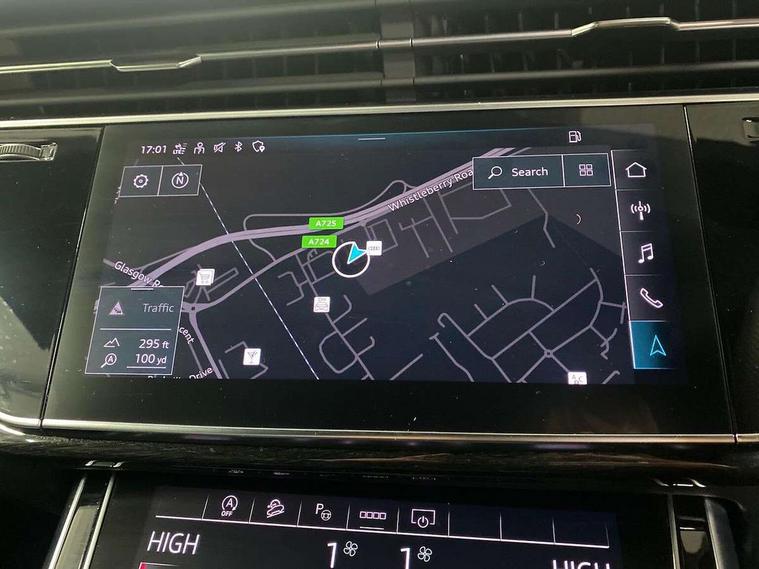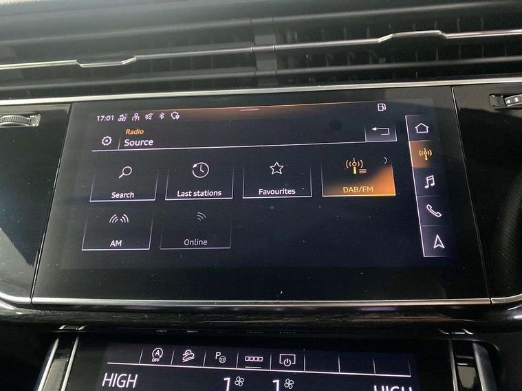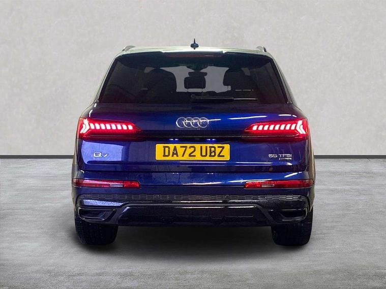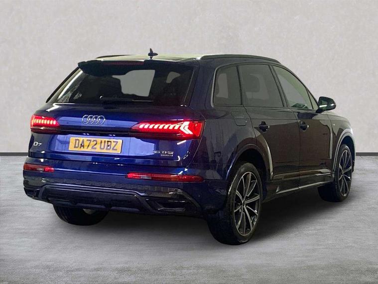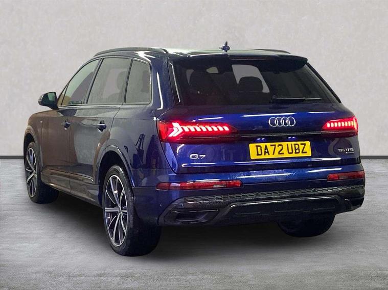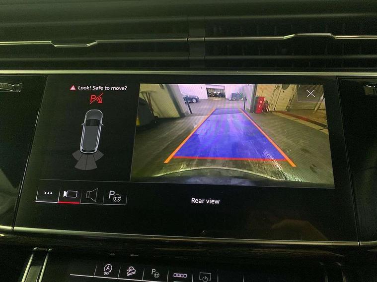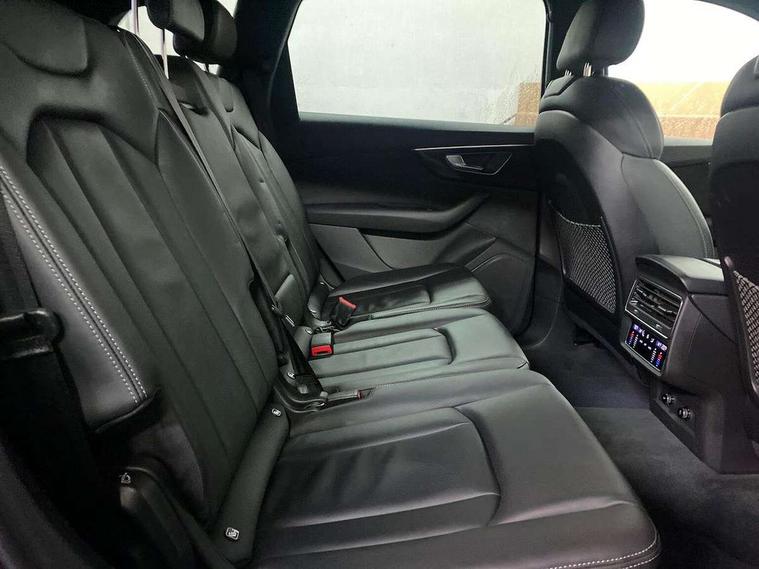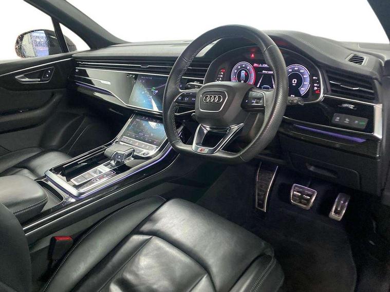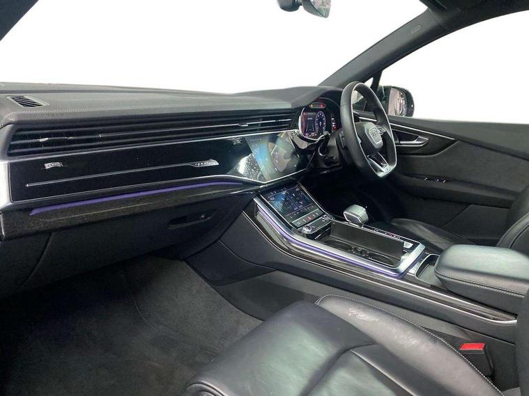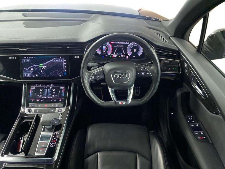 Audi connect safety and service (e-call), Audi connect with Amazon Alexa Integration, Audi drive select (Auto, Comfort, Dynamic, Efficiency, Individual, Off-road and All road), Bluetooth interface, Camera based traffic sign recognition, Electromechanical steering, MMI navigation plus with MMI touch screens includes 10.1" and 8.6" screens with haptic feedback, Natural voice recognition, Parking system plus with 360 degree display (front, rear and side sensors) - acoustic and visual park assist system, Power operated tailgate, Rear view camera, Smartphone interface includes wireless Apple carplay/Android Auto, Start/stop system, 48V Mild hybrid technology, 85 litre fuel tank, Adaptive air sports suspension, Quattro all wheel drive with self locking centre differential, Audi music interface - front 2 USB-C ports with charger and data functions, Audi sound system with 6 channel amplifier, 180 watt amplifying capacity and 10 loudspeakers including subwoofer, DAB digital radio module, 3rd brake light, Audi matrix LED headlights with dynamic front and rear indicators, Auto dimming frameless rear view mirror, Black roof rails, Bumpers in contrast paint scandium grey finish includes door trim and wheel arch trim strips, inlays in door strip contain quattro embossing, Electrically adj heated/folding + automatically dimming exterior mirrors with memory + automatic kerb side function for passenger side exterior mirror, Heat insulating glass in windshield, Integrated LED indications in door mirrors, LED daytime running lights, LED rear tail lights, Privacy glass - dark tinted rear and rear side windows from B-pillar backwards, Rear side wing doors, Rear wiper, 2 seat bench in 3rd row, 3 seat bench in 2nd row, 4 zone deluxe automatic climate control, 7 seat layout with ISOFIX points for the front passenger seat and rear passenger seat, Black cloth headlining, Comfort front centre armrest, Electric adjustable front seat with 4 way lumbar support, driver memory functionality, Folding rear seats, Front head restraints, Front/rear floor mats, Heated front seats, Illuminated door sill trims with S logo, LED interior ambient lighting, Luggage compartment cover, Luggage compartment sill protection in stainless steel, Rear head restraints, Single front passenger seat, Stainless steel pedals, Sunvisors with illuminated vanity mirrors, Titanium black styling pack - Q7/SQ7, 3 point seatbelts on all rear seats, Audi pre sense front, Child locks on rear doors, Driver and front passenger, front side and curtain airbags, Electromechanical parking brake, Electronic Stabilisation Control (ESC) including ABS, ASR and EDL, Extended pedestrian protection measures, Hill hold assist, Seatbelt monitoring, Tyre pressure loss indicator, Warning triangle and first aid kit, Anti theft alarm, Anti-theft wheel bolts and wheel loosening detection, Keyless Go, Remote central locking, Polished oak trim with grey finish inlay, Tool kit, Tyre repair kit,