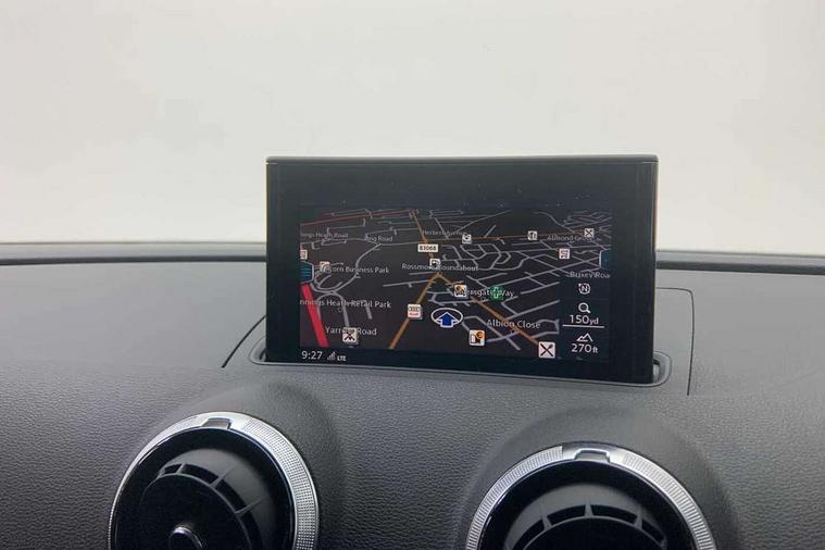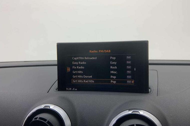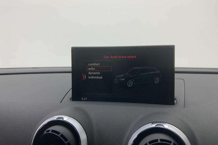 Audi active lane assist, Audi connect, Audi drive select, Audi smartphone interface, Automatic start/stop system, Colour driver's information system display, Electro - mechanical power assisted steering, Electro-mechanical PAS, MMI navigation plus with MMI touch, Mobile telephone preparation - bluetooth interface, Service interval indicator, Speed limit display, Voice control system, Dynamic suspension, 2 USB ports, Audi music interface, Auxiliary input socket, DAB Digital radio, Aluminium door sill trims with e-tron logo, Aluminium window trim, Auto dimming rear view mirror with light and rain sensors, Body colour bumpers, Body colour door mirrors, Body colour door mirrors with integral indicators, Body colour roof spoiler, Electric front windows, Electric operated/heated door mirrors, Electric rear windows, Electrically adjustable and heated door mirrors with integrated LED side indicators, Heated windscreen washer jets, High beam assistant, Matt black radiator grille, Rear wiper, Single exhaust tailpipe, 12V Accessory socket in centre console, 3 adjustable rear headrests, 4 lashing points to secure luggage, Adjustable front centre armrest, Charging cable, Dual zone electronic climate control, Front and rear interior lights with delay, Front passenger seat isofix location point, Front sports seats, Front/rear floor mats, Height/depth adjustable steering column, Illuminated glovebox, ISOFIX child seat preparation+airbag deactivation, Jack and tool kit, Rock grey headlining, Steering wheel gearshift paddles, Storage compartment in centre console, Storage compartment under front seats, Storage compartments in doors, Non smoking pack - A3, 3 point seatbelts on all seats, ABS/EBD, Active bonnet, Active front headrests, ASR, Curtain airbags, Driver and passenger side airbags, Driver/Front Passenger airbags, Drivers knee airbag, EDL, Electromechanical parking brake, ESC - Electronic Stability Control + traction control, Front passenger airbag deactivation, Manual rear child locks, Multi-Collision braking, Pre sense front, Seatbelt warning, Tyre pressure warning, Warning triangle and first aid kit, Advanced key, Anti theft alarm, Anti-theft wheel bolts, Remote control central locking, Thatcham category 1 alarm + immobiliser, Aluminium air vent surrounds, Aluminium mistral silver inlay, Aluminium trim elements, Tyre repair kit,
