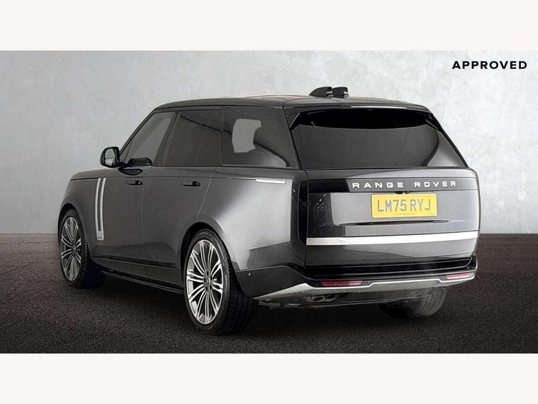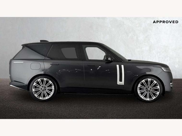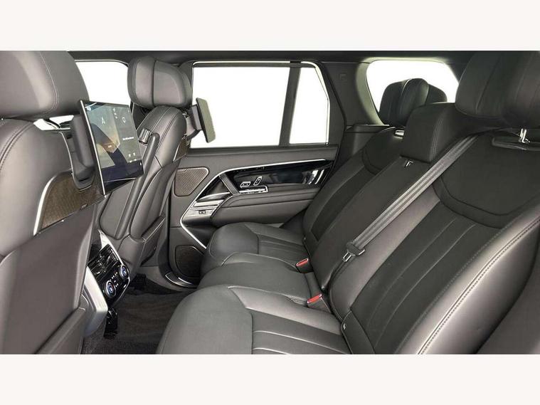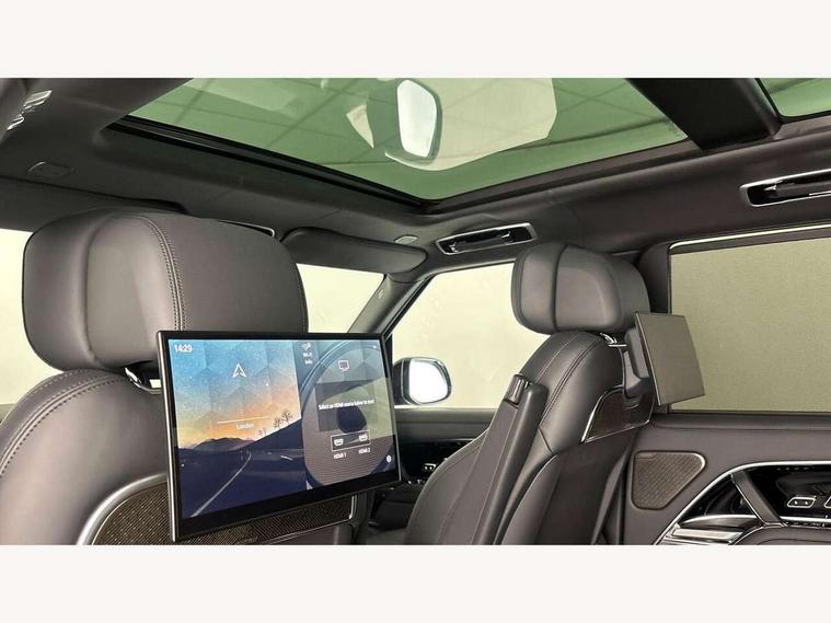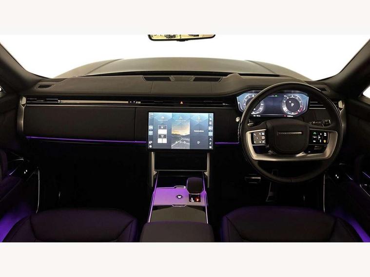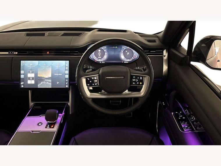 13.1" Touchscreen, 3D surround camera inc frwd traffic detection, vehicle clearance guidance, 3D view, clearsight ground view, manoevure light, 360 parking aid, wade sensing, Adaptive cruise control with steering assist, All Terrain Info Centre, All wheel steering, Blind spot assist, Bluetooth connectivity streaming, Configurable programs, Driver monitoring and response with driver facing camera & driver distraction monitor, Eco mode, Electric power assisted steering (EPAS), Emergency call service, Front and rear parking aid, Head up Display, Interactive driver display, Lane keep assist, Park assist, Powered gesture tailgate/boot lid, Rear collision monitor, Rear traffic monitor, Remote, Traffic sign recognition with adaptive speed limiter, Wi-Fi Enabled with data plan, Wireless Apple CarPlay/Android Auto, Wireless device charging, 8 speed automatic transmission, Active damper technology system, Adaptive dynamics, Adaptive off-road cruise control, All Wheel Drive (AWD), Automatic access height, Electronic active differential with torque vectoring by braking, Electronic air suspension with dynamic response pro, Terrain Response 2 Auto, Twin speed transfer box, Digital Audio Broadcast radio-DAB, Meridian 1600W signature sound system, Pivi pro including smart settings, Connected navigation pro, nuance speech, USB socket, Acoustic laminated windscreen, Animated directional indicators, Automatic headlights, Automatic levelling headlights, Centre high mounted stop light, ClearSight interior rear view mirror, Electric windows with one touch open/close and anti trap, Engine cover, Flush deployable exterior door handles, Front and rear recovery eyes, Front fog lights including cornering lamp, Headlamp power wash, Heated rear window, Heated washer jets, Illuminated metal treadplates with Autobiography script, Laminated front and rear side glass, LED tail lights, Power fold, auto-dimming, heated door mirrors with approach lights, Rain sensing windscreen wipers, Rear boot, Rear fog lights, Rear side wing doors, Side repeater indicators in mirror, Solar attenuating windscreen, Standard bonnet, Winter wiper park position, 3 seat bench in 2nd row, 30 Colours configurable cabin lighting with 4 lighting zones, Air quality sensor, Auto folding loadspace cover, Bright metal pedals, Cabin air purification pro, Customer configurable single point entry, Driver and passenger front seat armrests, Easy boot loading, Ebony Carpet, Electric rear side window sunblinds, Four zone climate control, Front and rear cupholders, Front and rear grab handles, Front centre console refrigerator compartment, Front head restraints, Heated steering wheel, Hook in load space, Loadspace light, Luggage tie down in loadspace, Multifunction steering wheel, Rear centre armrest, Rear head restraints, Rear ISOFIX, Satin chrome gearshift paddles, Single front passenger seat, Soft close doors, SV bespoke carpet mats, Twin blade sunvisors with Illuminated vanity mirrors, Upper and lower glovebox, Online pack with data plan - Range Rover, 3x3 point rear seat belts, Anti-lock braking system (ABS), Black brake calipers, Brake hold function, Cornering brake control (CBC), Customer configurable autolock, DSC - Dynamic Stability Control, Electronic brake force distribution, Electronic parking brake, Electronic traction control, Emergency braking, Front airbags with passenger seat occupant detector, Front side airbags, Hill descent control, Hill launch assist, Illuminated seat belt buckles, Low traction launch, Occupant protection assist, Power operated child locks, Roll stability control, Tyre pressure monitoring system (TPMS), Immobiliser, Intrusion sensor and alarm, Keyless entry, Locking wheel nuts, Remote central locking, Noble chrome controls,