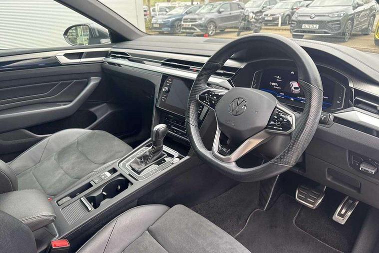 Adaptive cruise control (ACC) with speed limiter, front assist (reacting vehicles pedestrian and cyclists) and follow to stop, App connect including wireless Apple CarPlay, Camera for warning system, Digital cockpit with 10.25" high resolution TFT display screen with customisable menus and information, Driver alert system with fatigue detection, Driver profile selection including ECO function, Dynamic road sign display, eCall - Emergency call service for SOS calls to emergency response, Emergency assist, Hands free boot opening, Press and drive key, Progressive steering, Speedo and rev counter, electronic odometer, trip, service interval display and exterior temperature gauge, Travel assist - Lane keeping assist and traffic jam assist, Voice activation for telephone and navigation, Start/stop function with battery regeneration, Premium USB cable in choice of either Apple or Android smartphone compatibility, Auto dimming interior rear view mirror, Automatic headlights, Body colour door handles, Body colour side skirt, Body coloured top and matt black lower door mirrors with integrated indicators, Chrome plated radiator grille inserts and light switch surrounds, Chrome side window surrounds, Dynamic headlight range control, Electric folding door mirror, adjustable, heated with front passenger exterior mirror lowering function, Front and rear electric windows, Front and rear stainless steel door sill protection, Front windscreen washers and wipers with 4x interval delay, Heat insulating side and rear windows, Heated rear windscreen, Heated windscreen washer jets, High level 3rd brake light, LED rear combination lamp with dynamic indicators, LED rear number plate lights, Panoramic sunroof with tilting and sliding including integrated roller blind, R Line design body coloured bumpers, Rain sensor, Rear fog lamp on one side and reversing lamp on both sides, Rear side wing doors, Rear tinted glass from B pillar backwards, approx 65% tinted, Rear wash/wipe, Tailpipes behind rear bumper, 12V socket in front centre console, 12V socket on rear of front centre armrest, 3 rear head restraints, 3 seat bench in 2nd row, 30 colours options interior ambient lighting, 60:40 split folding rear seat backrests with centre armrest, Air care climatronic 3 Zone electronic air conditioning with automatic air recirculation, Black roof lining, Chrome trim on upper and lower air vents extending across cockpit, Driver and front passenger sunvisor with vanity mirror, Front + rear carpet mats, Front cupholders x 2, Front footwell illumination, Front sports comfort seats, Glovebox, Heated front seats, Height/reach adjust steering wheel, Isofix child seat preparation easy fit for two outer rear seats, Luggage compartment lighting, Removable luggage compartment cover, Single front passenger seat, Split folding front seat backrest with front centre armrest, Stainless steel pedals, Two LED front reading light, 3 rear three point seatbelts, ABS+EBD+Brake assist, Child locks on rear doors, Driver airbag and front passenger airbags with deactivation switch including driver knee airbags, Electronic parking brake, Electronic stability control (ESC) and Electromechanical brake booster, Front disc brakes, Front side airbags with curtain airbags, Hill start assist, Pro active occupant protection to detect critical situations with elevated accident potential from the front, Rear disc brakes, Three point height adjust front seatbelts + pretensioners, Two tone horn, Tyre pressure loss indicator, Warning buzzer for seatbelts if unfastened, Warning triangle, Alarm with interior protection with deactivation via infotainment system, Electronic engine immobiliser, Keyless entry system including start/stop button on centre console, Aluminium decorative inserts, Chrome trim on lower doors in front and rear, Leatherette insert on door and side trim panel in foam film, Piano black decorative inserts in centre console,