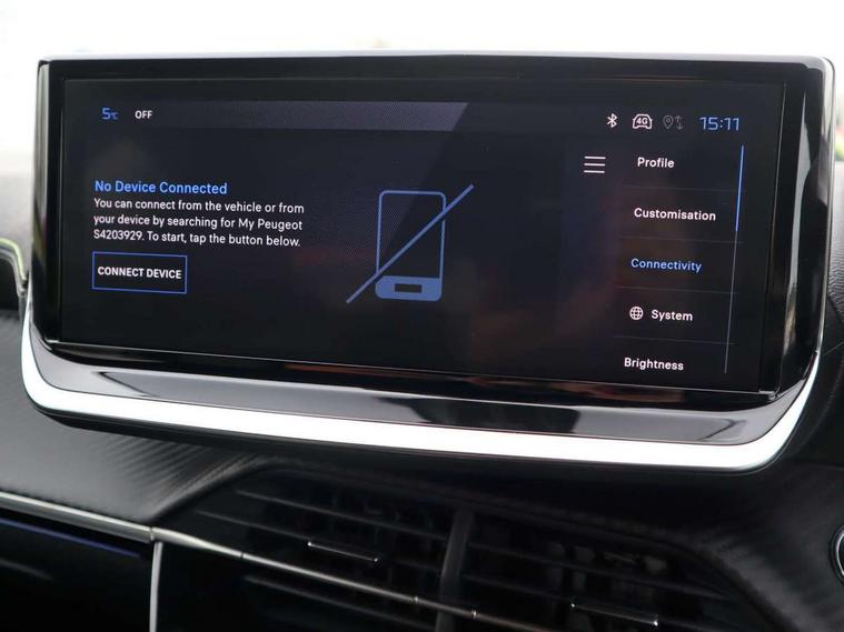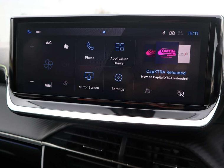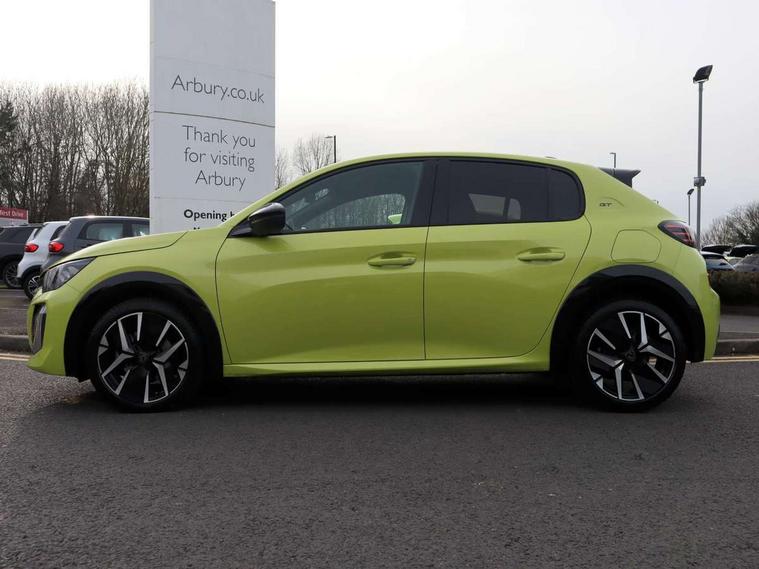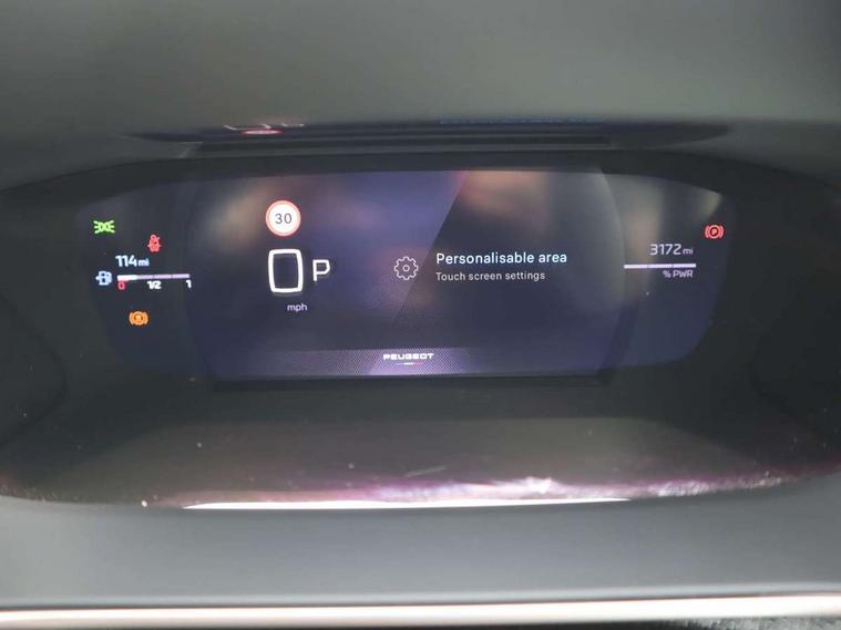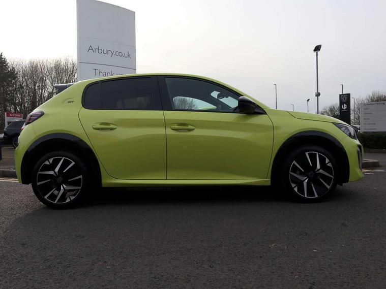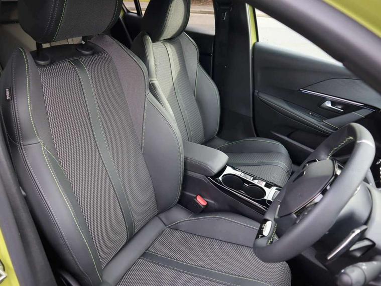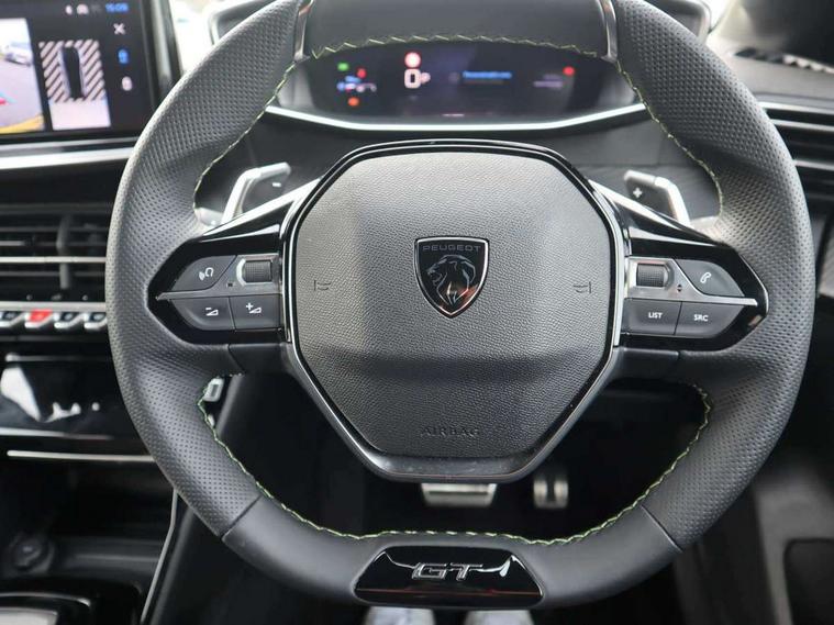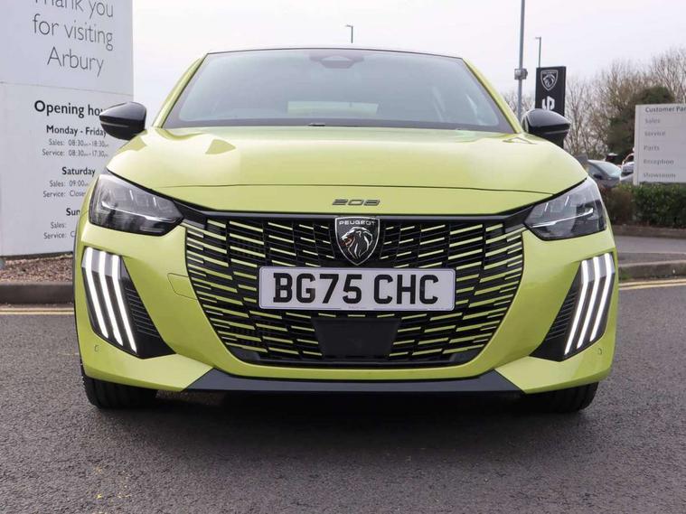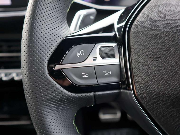 Bluetooth telephone facility, Drive mode select (Eco/Normal/Sport), Driver attention warning, Emergency call service, Exterior temperature indicator with ice warning, Front and rear parking sensors, Gear lever - e-Toggle, Multi function trip computer, PEUGEOT i-Cockpit with 10" configurable 3D colour head up instrument panel, PEUGEOT i-Cockpit with 10" HD capacitive colour touchscreen, PEUGEOT i-Cockpit with compact steering wheel, PEUGEOT SOS and assistance, Push button start, Smart phone docking station, Speed limit recognition and recommendation, Start/stop system, Wireless mirror screen with apple carplay and android auto, 6 Speakers - 2 tweeters and 4 door speakers, DAB Digital radio, USB-A socket (x1) and USB-C socket (x1) - rear, USB-C data and charge socket and USB-C charge socket in front, Voice recognition for radio, navigation and telephony features, 2 X Rear number plate lights, Acoustic windscreen, Antenna - Gloss Black 'fin' design, Automatic hazard light activation upon heavy brake application, Body coloured exterior door handles, Dark tinted rear side and tailgate windows, Diamond black rear spoiler (roof), Door sills protection with PEUGEOT signature lettering, Electric heated and power folding door mirrors with courtesy floor lighting, Electrochrome rear view mirror, Full LED headlights with automatic height adjustment and PEUGEOT smartbeam assist, Gloss black B pillar, Gloss black door mirror shells, Gloss black front bumper grille with body colour accents, Gloss black rear cluster connecting strip, Gloss black wheel arch extensions, Gloss black window weatherstrips, GT model designation badging on C pillar, Headlights left on audible warning, LED 3 claw horizontal rear lighting signature (with daylight function) and LED brake lights, indicators and reversing lights, LED daytime running lights with distinctive 3 claw signature, LED front indicators, LED third brake light, Model designation badges front and rear, One touch electric front/rear windows with pinch protection, Rear bumper with gloss black finish, Rear reversing lights, Rear side wing doors, Rear windscreen wiper triggered automatically in reverse gear, Tailgate with heated rear windscreen and wiper blade, Variable front intermittent wipers, 1/3 to 2/3 split folding rear seats, 12V socket, 3 seat bench in 2nd row, 8 Colour personalisable ambient lighting, Adamite green contrast stitching to front and rear armrest, front centre console, dashboard facia, Aluminium pedals, Automatic mono zone climate control air condition, Boot lighting, Driver and front passenger dynamic seats, Driver and front passenger seat manual adjustment in longitudinal and back rest angle, Driver and front passenger seat mechanical height adjustment, Driver and passenger sun visors, front footwells and central storage with LED lighting, Electric power steering with reach and rake adjustable steering column, Front centre armrest with storage compartment, Front LED interior light, front LED reading spotlights(x2), rear LED reading spotlight(x2), High centre console with 2 cup holders, Luxury carpet mats, Map pockets on the backs of the front seats, Multi function full grain perforated leather steering wheel with adamite green stitch detail and 'GT' emblem, Piano keys gloss black plated toggle switches to access main functions of the vehicle, Roof lining - Mistral black, Seatbelt unfastened on the move audible and visual alert for front and rear seats, Single front passenger seat, Visibility pack - 208, 2x Isofix child seat fitting on outer rear seats, 3 rear 3 point seatbelts, ABS (Anti-lock Braking System) with EBD (Electronic Brakeforce Distribution) and EBA (Emergency Braking Assistance), Active safety brake with night function/cyclists/pedestrians, Child locking functionality on rear doors, Driver and front passenger airbag with passenger airbag deactivation, Driver/front passenger side airbags, Electric parking brake, ESP with Hill Assist, Front and rear curtain airbags, Front and rear disc brakes, Front optimised safety headrests and 3 x rear retractable headrests with height adjustable, Front three point retractable seatbelts with force limiters, Remote plip(x2) for locking, unlocking, includes emergency key blade, Tyre pressure monitoring system, Acoustic vehicle alert system (AVAS), Alarm - Connected, volumetric , perimetric, anti lift sensor, Automatic door locking when moving off, Deadlock, Electronic code immobiliser, General safety regulation, Peugeot Open and Go System, Remote central locking, Carbon effect dashboard facia trim, 17" Yanaka two tone diamond cut alloy wheels wheels includes gloss black inserts, Space saver spare wheel,