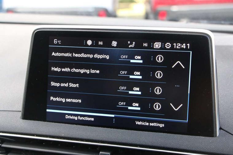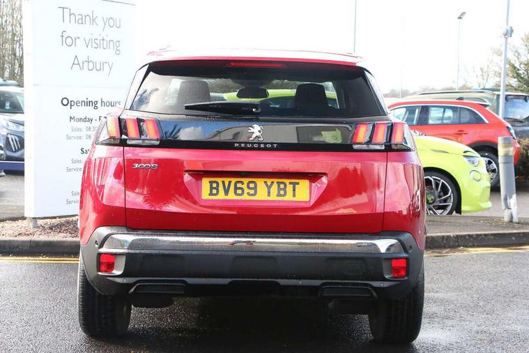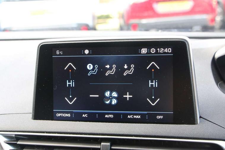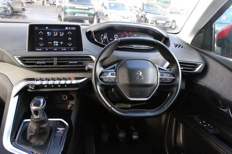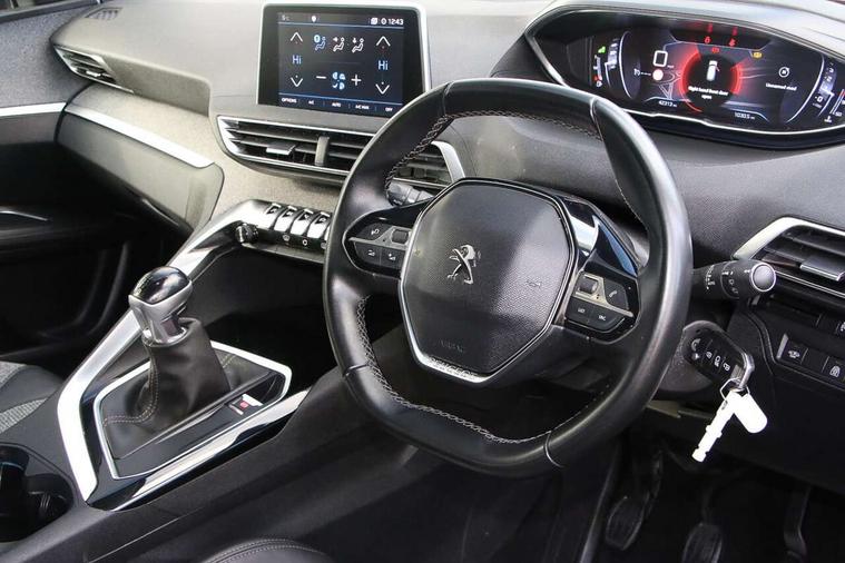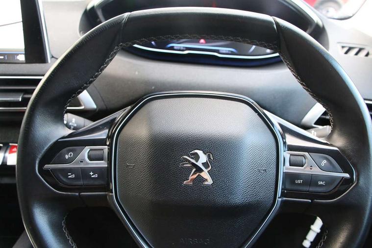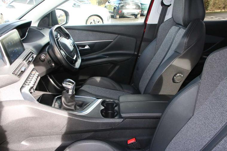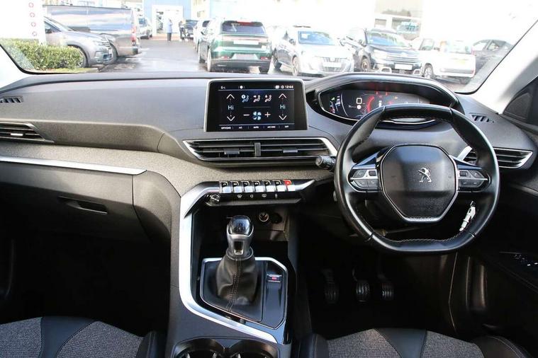 'Lights On' Reminder warning buzzer, 3D connected navigation + voice control + Peugeot connect SOS and assistance, Bluetooth telephone facility, Digital clock, Exterior temperature indicator with ice warning, Front and rear parking sensors, Lane departure warning system, Mirror screen with mirror link, apple carplay and android auto, Multi function trip computer, PEUGEOT i-Cockpit with 8.0" capacitive touchscreen in centre console, PEUGEOT i-Cockpit with compact sports steering wheel, PEUGEOT i-Cockpit with configurable 12.3" Head-up digital instrument panel, Speed limit recognition and recommendation, Dynamic stability control and electronic anti-skid system, DAB Digital radio, Steering column mounted multifunction controls, USB socket, 2 X Rear number plate lights, Aluminium longitudinal roof bars, Automatic triggered rear windscreen wiper in reverse gear, Black and chrome front wing trim, Black bumper protection plate, Black rubber side window trim, Body colour door handles, Body colour door mirror shells, Body colour rear spoiler with stainless steel edging trim, Body coloured bumpers, Body protectors (bottom of front and rear bumpers + wheel arches + protection at bottom of doors) in black, Chrome bumper inserts, Chrome front fog light trim, Chrome radiator grille and surround, Chrome rear bumper facia, Dark tinted rear side windows + tailgate window, Door mirror mounted LED courtesy approach lights, Electric operated/heated door mirrors, Front windscreen wiper with magic wash cleaning system, Gloss black finish B and C pillar, Gloss black rear cluster connecting strip, Gloss black windscreen surround, Halogen headlights, Headlights left on audible warning, Heated rear windscreen with integrated antenna, LED daytime running lights, LED sequential scrolling front indicators, LED side indicator lights integrated into door mirrors, Lion grey front bumper scuff plate, One touch electric front/rear windows with pinch protection, Power folding door mirrors with blind spot detection indicator and auto dipping function in reverse gear, Radiator grille in chrome edge trim and facets, Rear LED Peugeot signature 'Claw Effect' lights, Stainless steel roof arches, 1/3 to 2/3 split folding rear seats, 12V Sockets in dashboard, rear cabin and load area, 2 cupholders in front centre console, 2 rear reading spotlights, 2x Rear coat hooks, 3x Isofix child seat fittings in the front passenger and outer rear seats, 4 Grab handles retractable and damped, 4 Lashing eyes in boot, Blue ambient lighting for connecting zone, Blue ambient lighting to front door panels, central storage and cupholders, Blue ambient lighting to head up instrument panel, Centre front armrest with butterfly wing opening and illuminated storage compartment, Driver and front passenger seat height adjustment, Driver seat manual adjustment, Dual zone automatic climate control, Electric power steering with reach and rake adjustable steering column, Fixing rings 4 in load compartment, Flocked glovebox interior, Fold flat front passenger seat with picnic table, Footwell illumination, Front headrests, Front interior light with 2 reading spotlights and rear interior light with timer, Front seat back map pockets, Gear shift indicator, Height adjustable headrests, Illuminated glovebox, Illuminated vanity mirrors, Mistral full grain leather steering wheel, Rear armrest with ski flap and two cup holders, Rear centre console ventilation system, Rear headrests, Reclining front seats, Roof LED interior lighting, Roof lining - Salin light grey, Satin chrome dashboard trim, Satin chrome digital instrument panel and touchscreen trim, Satin chrome front door panel recess trim, Satin chrome gear lever, Satin chrome interior door handles, Satin chrome scorpion's tail and toggle switch trim, Seatbelt not fastened audible and visual alert for front seats, Seatbelt unfastened on the move audible and visual alert for front and rear seats, Two position boot floor, Safety pack - 3008, Safety Plus Pack - 3008, Visibility pack - 3008, 3x Rear three-point retractable seatbelts with force limiters in the outer rear seats, Adaptive driver and front passenger airbags with passenger airbag deactivation function, Anti-lock braking system with electronic braking distribution and emergency braking assistance, Auto city emergency braking, Driver and front passenger side airbag, Driver SMART airbag, Electric child locking functionality on rear windows and doors, Electric parking brake, ESP with ASR, Front and rear curtain airbags, Front optimised safety headrests and 3 x rear retractable headrests with height adjustable, Front passenger SMART airbag with deactivate switch, Front three point retractable seatbelts with pre tensioners and force limiters, Front ventilated disc brakes and rear disc brakes, Height adjustable front seatbelts, Hill start assist, Tyre pressure sensor, Anti theft alarm, Automatic door lock/re-lock after 30 seconds, Automatic hazard light activation upon heavy brake application, Central locking button on dash, Deadlocks, Electronic immobiliser, Locking wheel bolts, Remote control central locking with two plip keys, Brumeo fabric Dashboard, front and rear door panel finish, Satin chrome dash trim, Satin chrome instrument dial surrounds,
