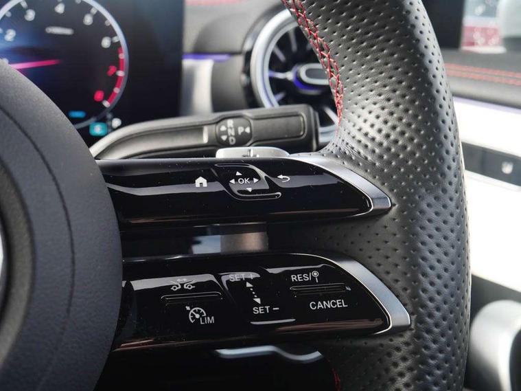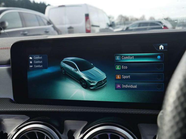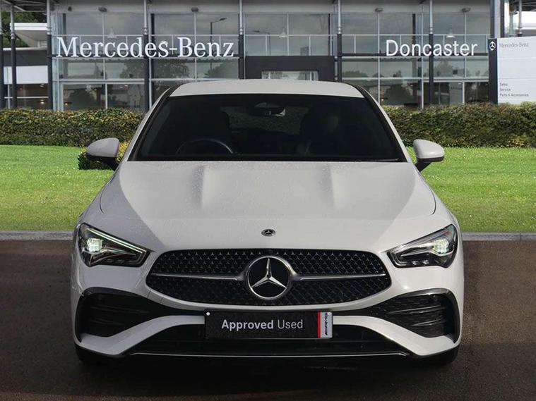 10.25 inch Instrument display with digital cockpit, 10.25 inch touchscreen central media display, Active lane keeping assist, Attention assist - Monitors steering behaviour and long journey fatigue, Blind spot assist, Bluetooth connection, Car wash mode, Cruise control with limiter, Direct steer system, DYNAMIC SELECT with a choice of driving modes (ECO, Comfort, Sport and Individual), ECO start/stop function, Fingerprint sensor, Fluid level warning indicator for fuel, oil, coolant and washer fluid, Hard-disk navigation, Hey Mercedes Voice activation, Lamp failure indicator, Mercedes me connect including emergency call system, accident recovery, breakdown and maintenance management, Mercedes me remote services, Outside temperature gauge, Owners manual in English, Pre-installation of private car share, Radio aerial integrated into front and rear windshields, Service indicator (ASSYST), Smartphone integration with Apple CarPlay and Android auto, Speed limit assist, Tailgate, Trip computer in multifunction display with current consumption indicator, Wireless charging in the front centre console, Comfort suspension with ride height lowering, Rear axle multi-link, DAB digital radio tuner, MBUX multimedia system, Mercedes Benz advanced sound system (225 W) with 10 speakers, 1 central speaker, speakers on doors, a tweeter on door, one sub woofer + boost amplifier, Pre installation for Mercedes Benz Link, Adaptive brake lights, AMG body styling with AMG front apron and rear apron and visible exhaust tailpipe in chrome trim elements, Body colour door handles, Electric windows, Electrically adjustable and heated door mirrors with integrated LED indicators, Exhaust system with 2 Visible tailpipe trim elements and rear apron with trim in chrome, Hand free access, Headlamp assist automatic headlamp activation, Heated glass rear windscreen + timer control, High level LED third brake light, Interior mirror with black reading lamps and frameless, LED high performance headlamps with integrated LED daytime running lights and adaptive highbeam assist, LED tail lamp, Privacy glass with dark tinting on rear side windows and rear window, Radiator grille with Mercedes-Benz pattern in chrome and central Mercedes star, single louvre in high-gloss black with chrome inserts, Rain sensing windscreen wipers with two sensitivity settings, Rear fog lamp, Rear side wing doors, Rear wiper, Variable front intermittent wipers, 3 seat bench in 2nd row, 3 twin spoke flattened multifunction steering wheel in nappa leather - horizontal twin spoke in high gloss black, vertical twin spoke in silver chrome, 40:20:40 split folding rear seat backrests, Air conditioning - Two zone thermotronic luxury automatic climate control with display, Air vents with surround in silver chrome, Artico man-made leather/Microcut microfibre upholstery, Automatic child seat recognition sensor, Black roof lining, Brushed stainless steel sports pedals with rubber studs, Electrically adjustable front memory seats including 4 way lumbar support, Floor mats with stitched AMG lettering, Fluorescent jacket, Front centre armrest with stowage, Galvanished gear shift paddles in silver chrome, Interior lighting - 64 colour Ambient lighting, Luggage net on driver/front passenger seat backrest, Manually height and reach adjustable steering column, Rear armrest with two integral cup holders for drinks, Rear head restraints, Single front passenger seat, Sport seats with fixed head restraints, Stowage compartment in centre console with retractable cover, Sunvisors with illuminated vanity mirrors, Twin front cupholders, Two outer rear seat isofix and top tether child seat fixing points, Keyless go comfort pack - CLA with easy pack tailgate, Light and sight pack - CLA, Mirror pack - CLA, Night package - CLA, Parking pack with reversing camera - CLA, Seat comfort pack - CLA, USB package plus - CLA, Winter pack - CLA, Active bonnet pedestrain safety measure which detects an impact and raises bonnet by 65mm, Active brake assist includes forward collision warning system with autonomous braking, Adaptive brake assist with hold function and hill start assist, Anti lock braking system (ABS) with brake assist, Bonnet with power domes, Brake calipers with Mercedes-Benz lettering, Brake pad wear warning indicator, Childproof locks manually operated for rear doors and electrically operated for rear power windows, Crash responsive emergency lighting, Crystal grey seat belts, Driver and front passenger head and sidebags, Driver and front passenger windowbags, Drivers knee airbag, Dual stage driver and front passenger airbags, Electric parking brake, Electronic stability programme with acceleration skid control, ESP curve dynamic assist, Exit warning, Front and rear seatbelt reminder, Front passenger seat occupancy sensor, Perforated front brake discs, Sports braking system, Three point rear seat belts, Tyre pressure monitoring system, Warning triangle and first aid kit, Alarm system with immobiliser and interior protection -Thatcham category 1, Guard 360 deg vehicle protection - tow away protection with visual, acoustic warning, interior monitoring, preinstallation for parking damage, Remote central locking and crash sensor with emergency opening function, Light aluminium with longitudinal grain interior trim, 19" AMG 5 twin spoke light alloy wheels painted in high gloss black with high sheen finish, Summer tyres, Tirefit tyre sealant kit,