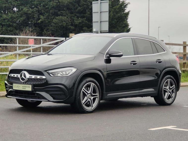 10.25 inch touchscreen central media display, 7 inch digital instrument cluster display, Acoustic ambient protection, Active lane keeping assist, Attention assist, Cruise control + speed limiter, Direct steering, DYNAMIC SELECT with a choice of driving modes (ECO, Comfort, Sport and Individual), ECO start/stop function, Fluid level warning indicator for fuel, oil, coolant and washer fluid, Hard-disk navigation, Hey Mercedes Voice activation, Lamp failure indicator, Mercedes me connect including emergency call system, accident recovery, breakdown management and maintenance, Mercedes me remote services, Multi function trip computer, Outside temperature gauge, Owners manual and service booklet in English, Pre-installation of private car share, Radio aerial integrated into front and rear windshields, Remote and charging services plus, Service indicator (ASSYST), Smartphone integration with Apple CarPlay and Android auto, Speed limit assist, Status display for rear seat belts in instrument cluster, 5m charging cable for wall box/public charging stations(mode 3), 7.4 kW onboard charger, Charging system - AC charging system rated at 7.4 kW, Comfort suspension, Mode 2 charging cable with 3 pin plug, Rear axle multi-link, 2 USB ports (type C) in rear stowage compartment and one in front of center console, Bluetooth connectivity including audio streaming, DAB Digital radio, MBUX multimedia system, Media interface, Mercedes-Benz sound system - 100W, Adaptive brake lights, Aerial for GPS, Aluminium roof rails, AMG front and rear apron, AMG specific/dual flow exhaust pipes in chrome (non-functional), Automatic headlamp activation, Beltline strips and weather strip in chrome, Black grained claddings with chrome parts, Body colour bumpers, Body colour door handles, Body colour door mirrors, Car wash function, Dark privacy glass from B-pillar backwards, Electric front windows, Electric rear windows, Electrically adjustable and heated door mirrors with integrated LED indicators, Front door sills with Mercedes-Benz lettering, Heated glass rear windscreen + timer control, Heated windscreen wash system, Interior mirror with black reading lamps and frameless, LED high performance headlamps with integrated LED daytime running lights, LED tail lights in two piece design, LED third brake light, Matt titanium grey front and rear apron trim, Rain sensor windscreen wipers, Rear fog lights, Roof spoiler, Single lamella raditor grille with chrome dotted diamond grille and inlay, 12V power socket in centre console, 3 spoke multifunction sports steering wheel in nappa leather with flattened bottom and perforated grip area, 40:20:40 split folding rear seats with backrest, Adjustable head restraints, Air conditioning - Two zone thermotronic luxury automatic climate control with display, Ambient lighting in front headrests, AMG floor mats with AMG lettering in front, Auto Mercedes-Benz child seat recognition sensor, Black roof lining, Brushed door pulls in silver chrome, Charging socket, Courtesy light in boot, Front centre armrest with stowage, Galvanished gear shift paddles on steering wheel, Heated front seats, Illuminated glovebox, Leather trimmed gearknob, Luggage net on driver/front passenger seat backrest, Manually height and reach adjustable steering column, Multi-gesture touchpad control on center console, Pre-entry climate control, Sports pedals in brushed stainless steel with black rubber studs, Sports seats, Stowage compartment in centre console, Stowage compartment with retractable cover, Sunvisors with illuminated vanity mirrors, Twin front cup holders, Two outer rear seat isofix and top tether child seat fixing points, AMG body styling pack - GLA, Comfort seat pack - GLA Class, Interior lighting with light and sight pack - GLA, Load compartment pack - GLA, Mirror pack - GLA Class, Parking pack - GLA, 3 rear 3 point seatbelts, ABS with Brake Assist, Active bonnet pedestrain safety measure which detects an impact and raises bonnet by 65mm, Active brake assist includes forward collision warning system with autonomous braking, Adaptive brake assist with hold function and hill start assist, Bonnet with power domes, Brake pad wear warning indicator, Childproof locks manually operated for rear doors and electrically operated for rear power windows, Crash responsive emergency lighting, Driver and passenger head and side airbags, Drivers knee airbag, Dual stage driver/passenger airbags, Electronic parking brake, ESP curve dynamic assist, ESP with ASR, Front and rear seatbelt reminder, Front brake callipers with Mercedes Benz logo lettering on front, Front passenger seat occupancy sensor, Internally ventilated brakes with perforated brake discs at the front, Radar-based recuperation, Tyre pressure monitoring system, Warning triangle and first aid kit, Window airbags, Alarm system with immobiliser and interior protection -Thatcham category 1, Keyless Go starting function, Remote central locking and crash sensor with emergency opening function, Urban guard vehicle protection, Vehicle key with decorative surround in chrome, Carbon structure trim, Chrome air vent surrounds, 19" AMG 5 twin spoke light alloy wheels aerodynamically optimised painted in tantalite grey with a high sheen finish, Summer tyres, Tirefit tyre sealant kit,