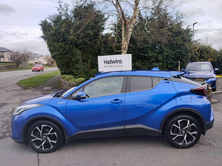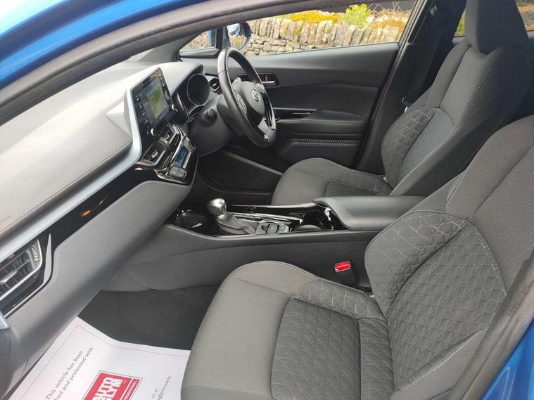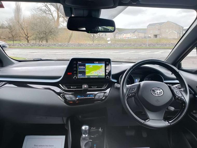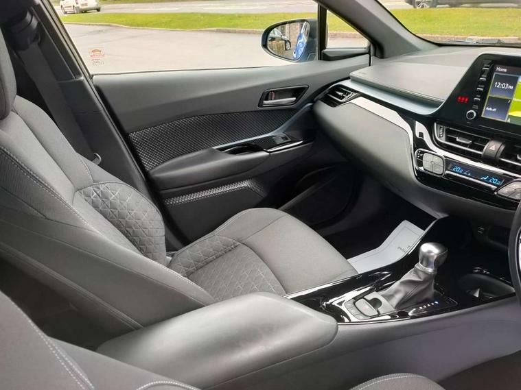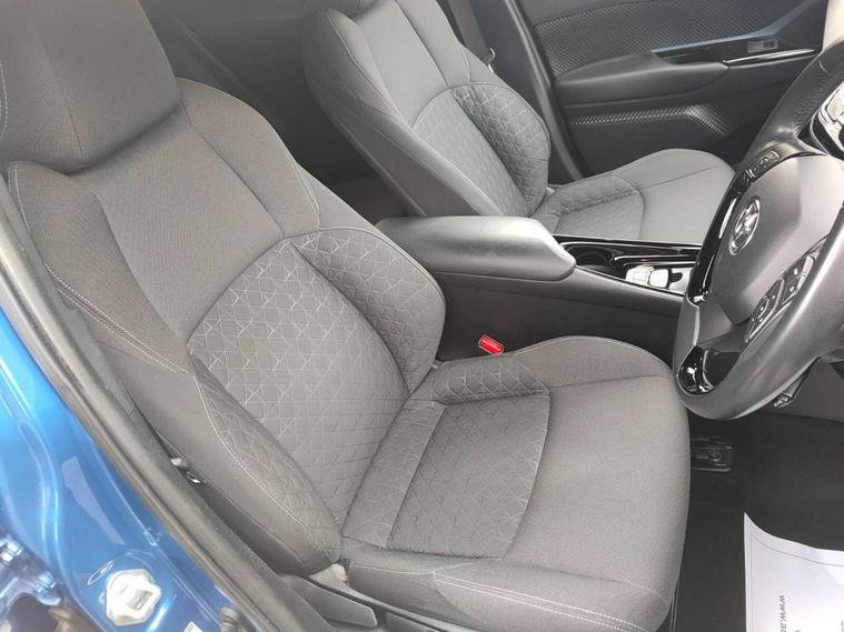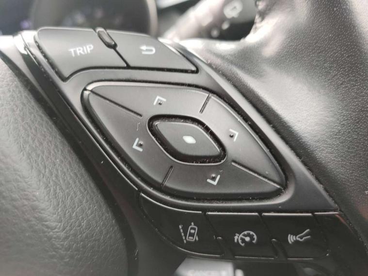4.2" coloured TFT screen for multi-information display, Adaptive cruise control, Bluetooth connectivity, Electric power steering, Hybrid system indicator, Lane departure alert with steering control, Remote boot door release in cabin, Remote boot door release in key, Reversing camera, Road sign assist - RSA, Simple Intelligent parking assist, Touch 2 Go navigation system, Trip computer, Voice recognition, Vehicle Stability Control (VSC), 6 speakers, Aux connectors + 12V front outlet, DAB Radio (Digital Audio Broadcasting), Toyota touch 2 multimedia system with 8" display, USB connector integrated with radio and CD player, Wi-fi connectivity, Anti-jam protection on power windows, Auto high beam, Auto up and down function on all power windows, Auto wipers, Automatic headlights, Automatic headlights cut-off, Black and body coloured rear bumper, Black front bumper, Black upper front grille, Body colour door handles, Body colour door mirrors, Boot door release with push button, Electric heated door mirrors, Follow me home headlights, Front and rear power windows, Front fog lights, Front spoiler, Hard tonneau cover, Honeycomb lower front grille, LED daytime running lights, LED front light guide, LED High mounted stop light, LED rear brake lights, LED rear combination lights, Manual headlight levelling, Noise reduction layer on front windows and windscreen, Power adjustable door mirrors, Privacy glass, Rear spoiler, Rear tailgate, Rear window defogger, Rear window wiper, Reflective LED headlights, Shark fin antenna, UV-filter on driver and passenger windows, UV-filter on rear windows, 12v power outlet - front, 3 rear headrests, 3 spoke leather steering wheel, 60/40 split folding rear seat, Adjustable rear headrests, Adjustable speed limiter switch on steering wheel, Assist grips front and centre pillar, Audio and telephone switches on steering wheel, Black front door assist grips, Blue ambient lighting on front cup holders, Blue ambient lighting on front doors, Boot light, Chrome interior door handles, Cloth upholstery, Driver and front passenger personal light, Driver and front passenger Whiplash Injury Lessening seats, Driver and passenger seatback pockets, Dual zone automatic air conditioning, Front cupholders, Front head restraints, Front sports seats, Glovebox with internal light, Heated driver and front passenger seats, Hooks for luggage holding net, Humidifying Nanoe air purifier, Illuminated entry system, Isofix attachments on rear seats, Leather gearshift, Light on driver sun visor, Light on passenger sun visor, Manual telescopic steering wheel, Manual tilt steering wheel, Manually adjustable lumbar support on driver seat, Manually height adjustable driver seat, Manually height adjustable front passenger seat, Manually reclining driver seat, Manually reclining front passenger seat, Manually sliding driver seat, Manually sliding front passenger seat, Microphone on front personal light, Mirror on driver sun visor, Mirror on passenger sun visor, Multimedia switches on steering wheel, Pollen filter, Shopping bag hooks, Slow opening on lower glovebox, Voice recognition switch on steering wheel, Parking sensor pack - C-HR, 16 Disk front wheel brake, 3x3 point rear seatbelts, ABS+EBD+Brake assist, Electronic parking brake, ESP + traction control, Front and rear seatbelt reminder, Front passenger airbag on/off switch, Hill start assist control (HAC), Pre collision system with pedestrian detection, Pre-tensioners and force limiters, Rear door child safety locks, SRS Airbags - Driver + Front passenger, front side, front and rear curtain and driver's knee airbags, Toyota safety sense, Tyre pressure monitoring system, Glass-breaking alarm sensors, Immobiliser, Intrusion alarm, Intrusion sensor, Motion sensor alarm, Power door locks, Power passenger window lock, Remote central locking, Remote door lock, Black lower dashboard, Black lower driver dashboard, Black upper dashboard, Piano black console, Satin grey deco line on upper dashboard, Tyre repair kit,