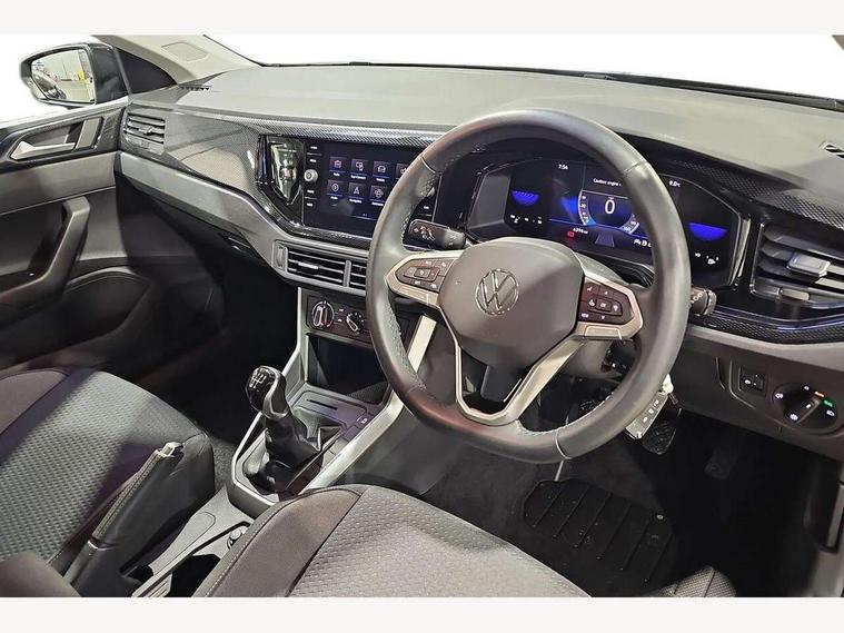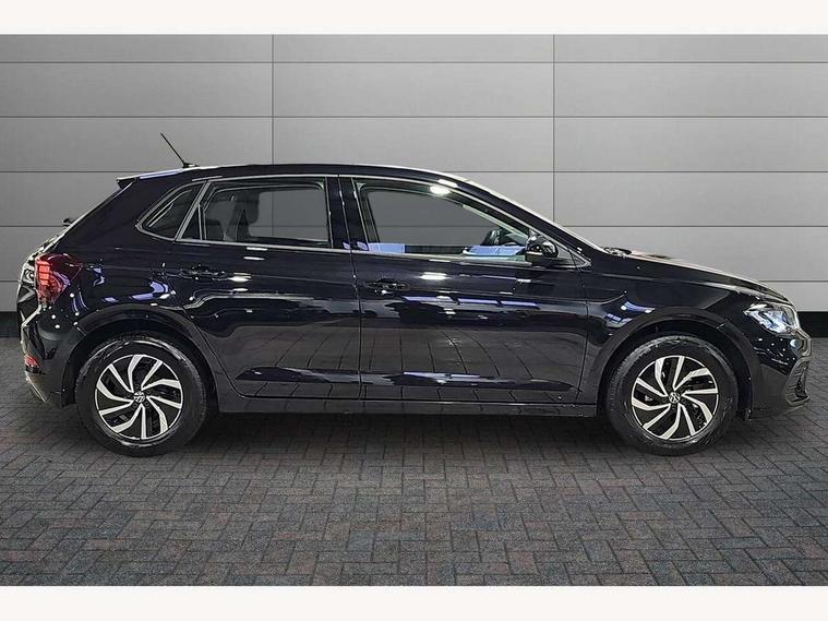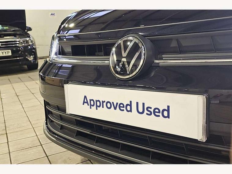 Adaptive cruise control without follow-to-stop and speed limiter, Advanced driver attention and drowsiness monitor, Bluetooth mobile phone interface, Dynamic road sign display, Emergency call service, Power assisted speed sensitive steering, Preparation for navigation system with media and internet package, Preparation for We connect and We connect plus, Speedo and rev counter, electronic odometer, trip, service interval display and exterior temperature gauge, Standard rear axle, Travel Assist - Lane keeping system and traffic jam assist, Travel assist including emergency assist, Trip computer, Warning signal and warning light for front and rear seatbelts not fastened, Washer fluid level indicator, Wireless app connect, Front wheel drive, Rear shock absorpion, Start-stop system with battery regeneration (recuperation - energy recovery during braking), DAB Digital radio, Diversity antenna for FM reception, Front and rear 6 speakers, Automatic dimming interior rear view mirror, Automatic headlight control with LED separate daytime running lights with coming/leaving home function, Body colour bumpers with chrome inserts, Body colour door handles, Body colour door mirrors, Electric front windows, Engine badge deletion, Headlight range adjustment, Heat insulating and laminated safety glass windshield, Heat insulating darkened glass in side and rear windows, Heat insulating glass windscreen, LED Headlights, LED rear combination lamps, Power folding adjustable/heated exterior mirrors and front passenger exterior mirror lowering function, Rain sensor, Rear electric windows, Rear fog light, Rear side wing doors, Rear windscreen washer and wiper with interval delay, Third brake light, 12V power socket in centre console, 2 front and 2 rear reading lights with switch off delay and dimmer, 2 USB-C ports in the front, 2 USB-C charging sockets on the center console in the rear, 3 rear head restraints, 60/40 split folding rear seat and rear seat bench not split, Ceramique roof lining, Chrome plated radiator grille inserts, air vent surrounds and light switch surrounds, Door and side trim panel, Driver and front passenger seat height adjustment, Driver/passenger sunvisors with illuminated vanity mirrors, Front centre armrest, Front seat backrest storage pockets, Front standard seats, Handbrake lever handle in leather, Hartley/Thomas cloth upholstery, Headliner in recycled material, Isofix child seat preparation easy-fit (for two outer rear seats, and front passenger seat) compatible with I-size, Leather trimmed gear knob, Luggage compartment cover, Luggage compartment lighting, Removable luggage compartment floor, Single front passenger seat, Standard climatic zones, Standard pedal cluster, Three spoke leather wrapped multifunction steering wheel, Light and vision pack - Polo, 3 point height adj front seatbelts + pretensioners, 3x3 point rear seatbelts, ABS, Driver and front passenger airbag with front passenger airbag deactivation, Drivers and front passengers safety optimised head restraints, ESC (Electronic stability control) + EDL (Electronic Differntial lock) and ASR (Traction control), Extended and predictive pedestrian/ cyclist protection, Front assist with autonomous emergency braking (for Adaptive Cruise Control ACC up to 130 mph), Front curtain and side airbags with center airbag, Front disc brakes, Hill hold control, Manual child lock in rear doors, Rear drum brakes, Single tone horn, Tyre pressure loss indicator, Alarm with interior protection, Anti-theft alarm system with interior monitoring, backup horn, and towing protection, Anti-theft wheel bolts, Electronic engine immobiliser, Lava stone black gloss/matt decorative inserts in dash and front door panels, Low rolling resistance tyres,