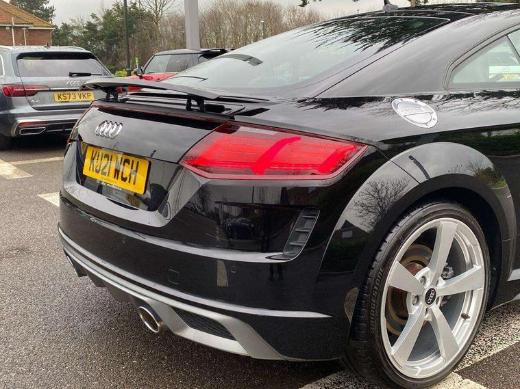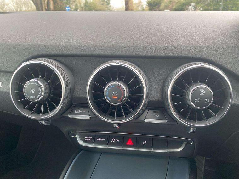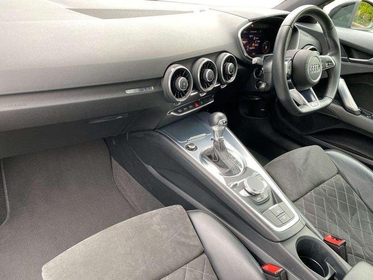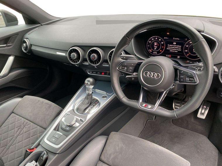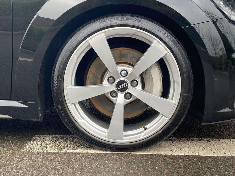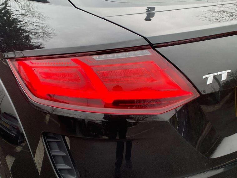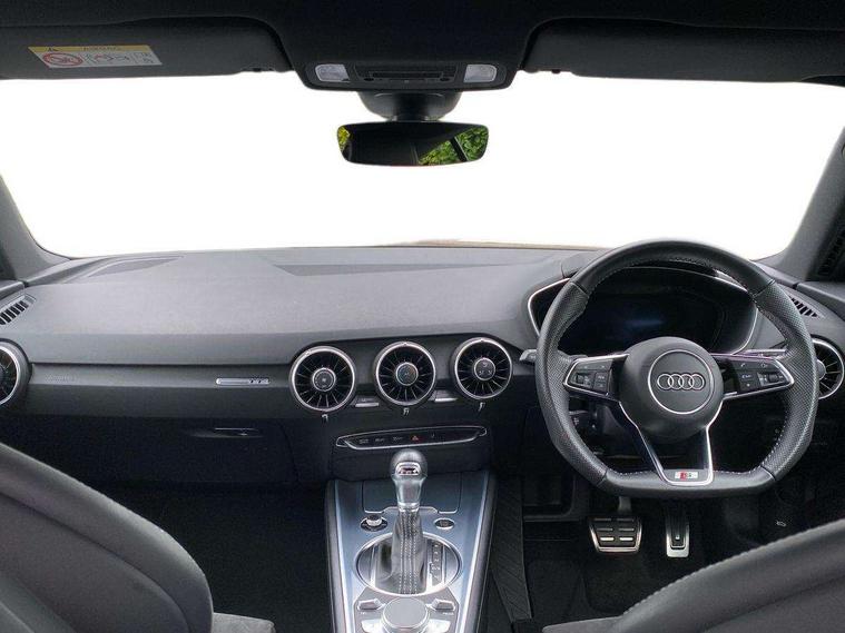 Audi drive select with 4 Pre configured modes, Audi smartphone interface, Audi virtual cockpit - 12.3" high-resolution LCD display with fully customisable instrument cluster, Cruise control + speed limiter, MMI touch panel, Mobile phone preparation with bluetooth interface, Progressive power assisted steering, Service interval indicator, Start/Stop system with energy recuperation, TP memo, S line sports suspension, AM/FM radio, Bluetooth audio streaming, DAB Digital radio, MMI Radio with CD player and SD/XC card slot, Auto dimming rear view mirror, Auto headlight range control, Body colour bumpers, Body colour electrically adjustable and heated door mirrors with built in LED side indicators, Electric folding door mirrors, Electric front windows, Front fog lights, Green tinted heat insulating glass, High gloss black radiator grille, LED daytime running lights, LED headlights with LED rear lights + dynamic rear indicators, Light and rain sensors, Retractable rear boot spoiler, S line badges on front wings, S Line front and rear bumpers, S line rear diffuser with platinum grey insert, S line side sills, Sunband for windscreen, 12V socket, 3 spoke flat bottomed high multi-function leather sport steering wheel with gearshift paddles, 4 way electric lumbar support for driver and front passenger, Black headlining, Door sill trims with S line logo, Extended aluminium look with stainless steel pedals, Front centre armrest, Front super sports seats, Heated front seats, Height adjustable driver's seat, Height adjustable front head restraints, Height/reach adjust steering wheel, ISOFIX child seat mounting for front passenger seat with airbag deactivation, Perforated leather gearknob in black, Rear head restraints, Rear top tether child seat ISOFIX attachment, S Line badge on steering wheel, Split folding rear seat, Non smoking pack - TT/TT RS, 3 point front seat belts, ABS, ASR traction control, Brake energy regeneration, Curtain airbags, Driver and front passenger airbag with front passenger airbag deactivation, EDL traction control, Electromechanical parking brake, ESP, First aid kit, Front side airbags, Head airbags, Hill hold assist, Seatbelt warning, Tyre pressure warning, Warning triangle, Anti theft alarm, Anti theft wheel bolts, Immobiliser, Keyless Go, Remote central locking, Matt brushed aluminium inlays, Tool kit, Tyre repair kit,