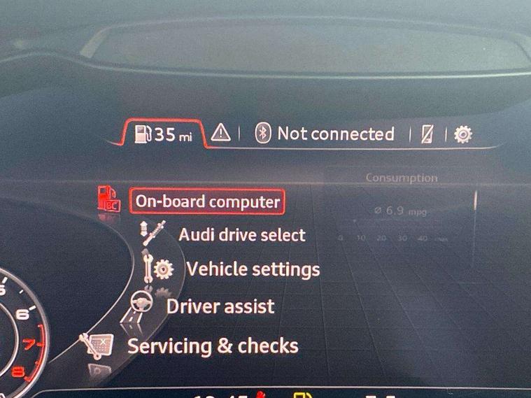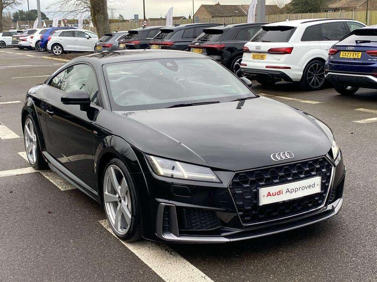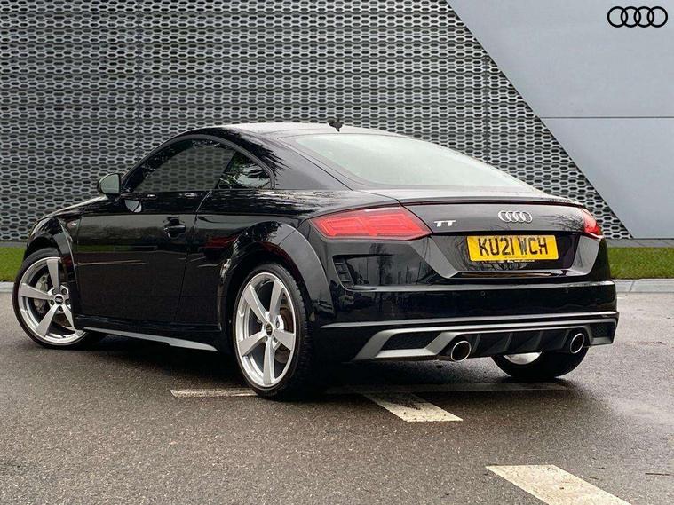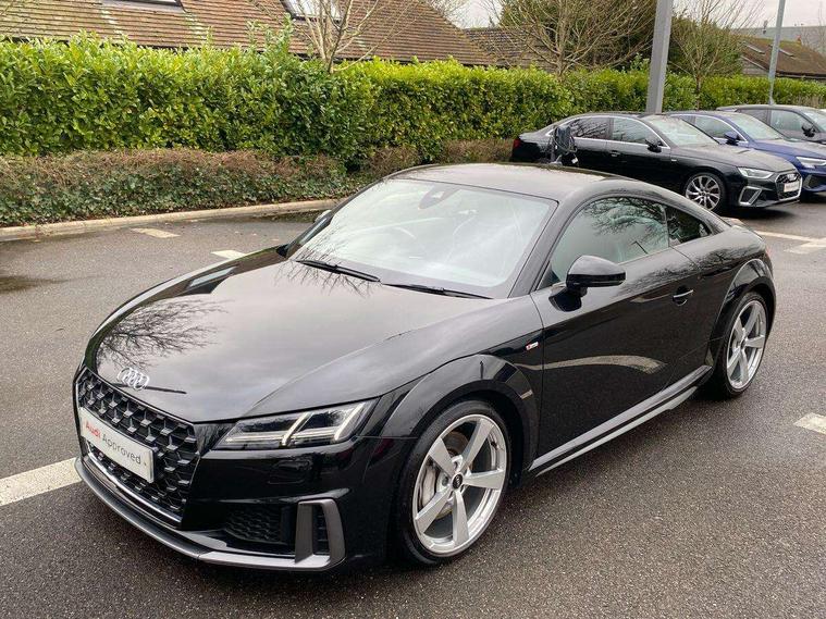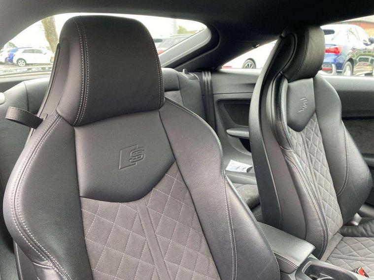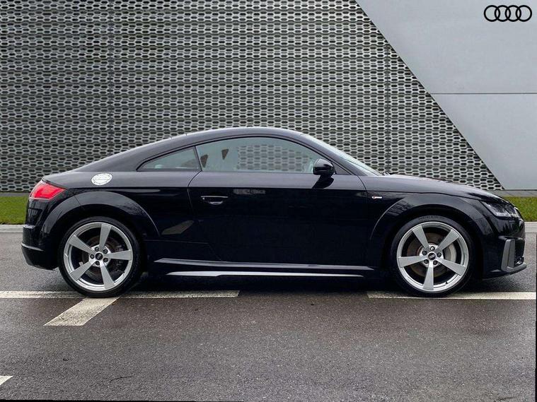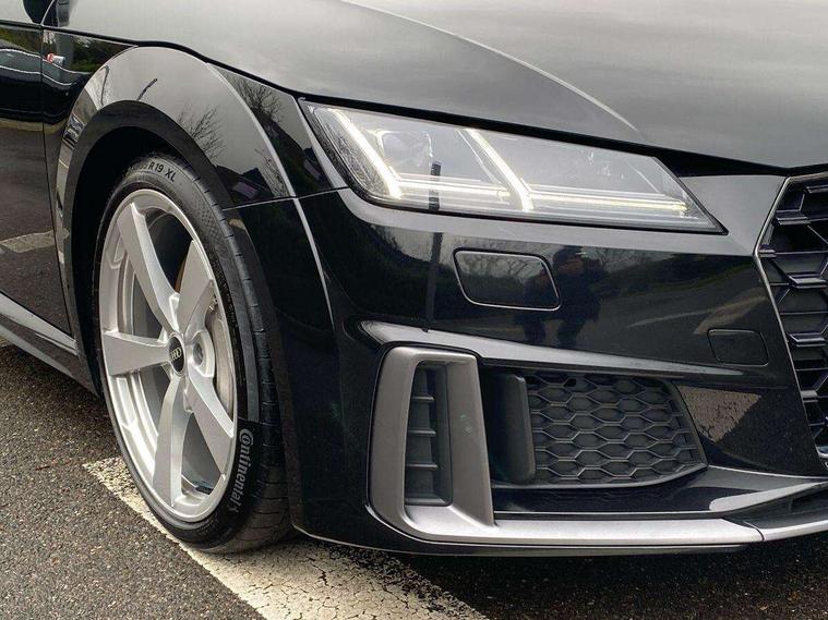 Audi drive select with 4 Pre configured modes, Audi smartphone interface, Audi virtual cockpit - 12.3" high-resolution LCD display with fully customisable instrument cluster, Cruise control + speed limiter, MMI touch panel, Mobile phone preparation with bluetooth interface, Progressive power assisted steering, Service interval indicator, Start/Stop system with energy recuperation, TP memo, S line sports suspension, AM/FM radio, Bluetooth audio streaming, DAB Digital radio, MMI Radio with CD player and SD/XC card slot, Auto dimming rear view mirror, Auto headlight range control, Body colour bumpers, Body colour electrically adjustable and heated door mirrors with built in LED side indicators, Electric folding door mirrors, Electric front windows, Front fog lights, Green tinted heat insulating glass, High gloss black radiator grille, LED daytime running lights, LED headlights with LED rear lights + dynamic rear indicators, Light and rain sensors, Retractable rear boot spoiler, S line badges on front wings, S Line front and rear bumpers, S line rear diffuser with platinum grey insert, S line side sills, Sunband for windscreen, 12V socket, 3 spoke flat bottomed high multi-function leather sport steering wheel with gearshift paddles, 4 way electric lumbar support for driver and front passenger, Black headlining, Door sill trims with S line logo, Extended aluminium look with stainless steel pedals, Front centre armrest, Front super sports seats, Heated front seats, Height adjustable driver's seat, Height adjustable front head restraints, Height/reach adjust steering wheel, ISOFIX child seat mounting for front passenger seat with airbag deactivation, Perforated leather gearknob in black, Rear head restraints, Rear top tether child seat ISOFIX attachment, S Line badge on steering wheel, Split folding rear seat, Non smoking pack - TT/TT RS, 3 point front seat belts, ABS, ASR traction control, Brake energy regeneration, Curtain airbags, Driver and front passenger airbag with front passenger airbag deactivation, EDL traction control, Electromechanical parking brake, ESP, First aid kit, Front side airbags, Head airbags, Hill hold assist, Seatbelt warning, Tyre pressure warning, Warning triangle, Anti theft alarm, Anti theft wheel bolts, Immobiliser, Keyless Go, Remote central locking, Matt brushed aluminium inlays, Tool kit, Tyre repair kit,