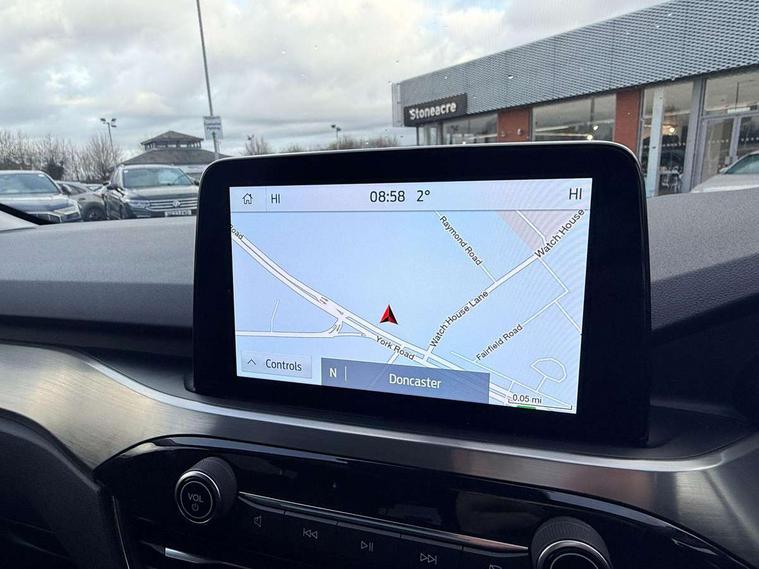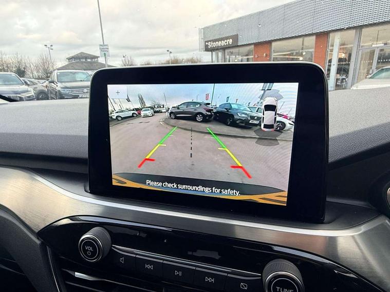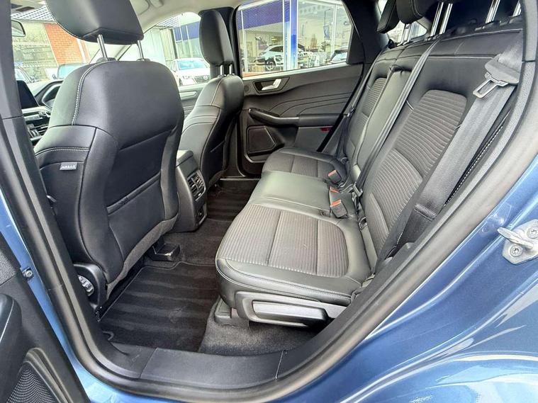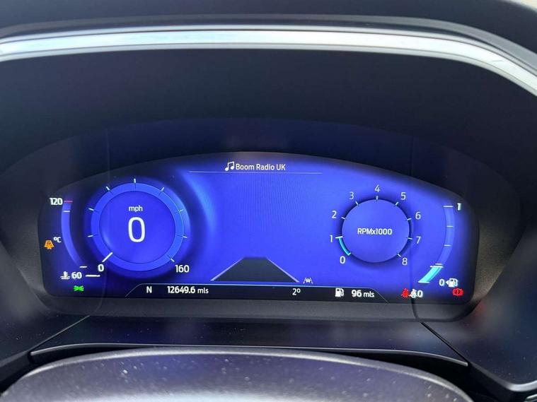 12.3" digital colour instrument cluster, Ford easy fuel, Ford SYNC 3 with 8" TFT LCD touchscreen, App Link, andriod auto/apple carPlay, emergency assistance and navigation with Ford pass connect, Front and rear parking sensors, Hands free power tailgate, Lane keeping aid with lane departure warning, Power assist steering, Rear view camera, Selectable drive modes, Service interval indicator, Standard suspension, Twist beam rear suspension, B&O premium audio system with 10 speakers and subwoofer, 2 USB ports, DAB radio/CD, Auto dimming rear view mirror, Auto headlamps with high and low beam, Auto wipers, Front LED fog lamps, LED daytime running lights, LED rear lights, Power folding heated door mirrors with puddle lights, Power front/rear windows with global close, Privacy glass, Quickclear heated windscreen, Rear side wing doors, Rear spoiler, Rear wiper, Silver roof rails, Third brake light, Twin exhausts, 10 way power adjustable drivers seat, 2nd row sliding seats with 60:40 split, 8 way manual passenger seat including lumbar support and height adjust, Ambient lighting, Centre console with electronic parking brake, Electronic automatic temperature control (EATC), Front and rear floor mats, Front and rear head restraints, Partial premium touch sensico leather upholstery with black cloth inserts, Rear charging point, Single front passenger seat, Sports seats, 3x3 point rear seatbelts, Airbags - front driver/passenger, front and rear curtain, Drivers knee airbag, Electronic stability control (ESC) and ABS, Ford MyKey Gen 2 safety system, Manual child proof rear door locks, Post collision braking, Pre collision assist with autonomous emergency braking, Rear seat Occupancy alert, Tyre pressure monitoring system, Engine immobiliser, Keyless entry and Ford power start button (Keyless start), Locking wheel nuts, Remote powered central double locking doors, Thatcham category 1 alarm, 18" 5x2 spoke magnetic and machined finish alloy wheels,