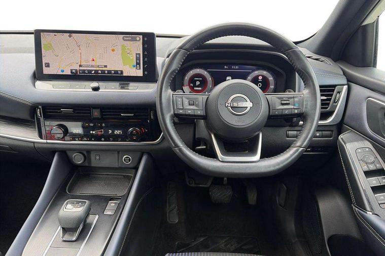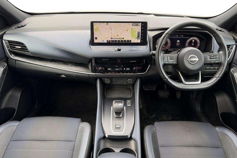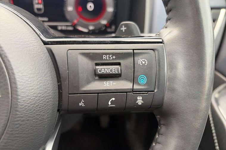 Advanced windscreen head up display, Android auto/Apple CarPlay (Wired), Blind spot warning, Drive modes (sport, normal, eco), Electric speed sensitive power steering, Emergency and breakdown call, Front and rear parking sensors, Full Digital 12.3" TFT Digital Combimeter, Google maps services - search, weather, 3D maps and Google street view, Hands free power tailgate, Idle stop/start system, Intelligent around view monitor, Intelligent Cruise control (ICC), Intelligent driver alert system, Intelligent forward collision warning, Intelligent lane intervention, Lane departure prevention, Lane departure warning system, Lane keep assist, Moving object detection, Nissan connect 12.3 inch touchscreen infotainment system, Nissan connect navigation, ProPilot, Push button starter, Rear cross traffic alert, Rear view camera, Remote control services - door locks, lights, horn and car locator, Telematics - notifications and connectivity services, TomTom live traffic services, Traffic jam pilot, Traffic sign recognition with legal speed adjustment, Trip computer, Virtual personal assistant and firmware over the air capability, Wireless apple carplay, Wireless charging pad, 6 speakers, AM/FM audio system with DAB, Bluetooth audio streaming, Front USB connections (Type-A and Type-C), Rear USB charging only ports (Type-A and Type-C), Auto dimming rear view mirror, Auto rear wiper when reversing, Automatic hazard signal with emergency stop signal, Body colour mirror caps, Body coloured door handles, Bodyside mouldings, Chrome side window finisher, Door handle with button, Electric auto folding door mirrors, Electrically adjustable and heated door mirrors with LED turn indicator, Follow me home headlights, Front and rear LED turning signals, Headlights auto levelling system, Intelligent auto headlights, LED daytime running lights, LED headlights with adaptive driving beam, LED rear lights, One touch front and rear electric windows with remote opening and closing, Partially body coloured bumpers, Privacy glass, Rear bumper with graphite insert, Rear reversing light (bulb lighting), Rear roof spoiler, Rear side wing doors, Rear styling plate, Shark fin antenna, Splash free rain sensing wipers, Super UV and infrared cut glass, Thermaclear heated windscreen, Three blink turn signal, 12v power socket in dashboard and luggage, 2x Rear coat hooks, 3 bench rear seats in 2nd row, 3 rear headrests, 4 folding assist grip, 6 Luggage hooks - 4 on floor, 2 on side, 60/40 split folding rear seat bench, Ambient lighting around centre console, Ambient lighting in front doors, Centre console storage tray, Chrome interior door handles, Cloth/syntech leather monoform upholstery, Dark black/blueish PVC wrapping, Dark headlining, Driver and front passenger sunvisors with illuminated vanity mirrors, Driver seat back pocket, Dual zone automatic climate control with pollen filter, Electrically adjustable driver seat, Electrically adjustable lumbar support for driver, Front and rear door storage, Front centre console and armrest, Front cupholders x 2, Front door with bottle holders, Glovebox with light, Hard trunk cover, Heated front seats, Heated steering wheel, Height adjustable driver's seat, Height adjustable front headrests, Height adjustable passenger seat, Leather steering wheel, Luggage board system, Luggage space lighting, Manual lumbar support on passenger seat, Manually adjustable passenger (slide recline + lifter), Multifunction steering wheel, Passenger seat back pocket, Rear armrest with 2 cupholders, Rear door bottle holders, Single front passenger seat, Soft PVC kneepad, Steering wheel gearshift paddles, Steering wheel switches, Tilt/telescopic adjustable steering wheel, Two rear isofix child seat anchorage points with top tether, Welcome light and doors with console tray ambient lighting, Glass roof pack with roof rails - Qashqai, 3x3 point rear seatbelt pretensioners + load limiters, ABS with EBD and brake assist, Active brake limited slip, Auto hold function, Child locks on rear doors, Curtain and front side, far side airbags, Driver and passenger airbags, Driver, passenger and 2nd row rear seat belt reminder, Electronic parking brake, Front seatbelt pretensioners + load limiters, Height adjustable front seatbelts, Hill start assist, Intelligent blind spot intervention, Intelligent front emergency braking with pedestrian, cyclist recognition and junction assist, Intelligent rear automatic braking, Tyre pressure monitoring system, Vehicle dynamic control, Capless fuel filler, Engine immobiliser, Intelligent Key, Remote central door locking with deadlocking, Thatcham Cat.1 alarm, Interior instrumental panel C finisher, 19" Alloy wheels, Tyre puncture repair kit,