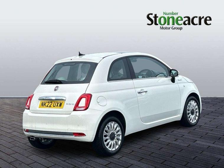 Apple car play/Android Auto, Cruise control, E-call, External temperature gauge, Power assist steering, Rear parking sensor, Speed limiter, Stop/start system, Trip computer, 4 speakers, 7" HD Touchscreen Radio, Bluetooth, USB and DAB, Rear speakers, 3rd brake light, Auto headlights, Body colour bumpers, Body coloured electrically adjustable door mirrors, Chrome plated exterior door handles, Dolcevita badge on fender, Dusk and rain sensors, Electric front windows, Fixed glass sunroof with sunblind, Front fog lights, Halogen headlamps, Heat insulated glass, Heated rear windows with wash wipe, LED daytime running lights, Rear side wing doors, Rear wiper, 1 passenger grab handle, 2 seat bench in second row, 50/50 split folding rear seats with height adjustable rear headrests, Air conditioning, Auxilliary 12V power socket, Chrome kit, Front headrests, Height adjustable drivers seat, Height adjustable steering wheel, Isofix child seat preparation, Single front passenger seat, Techno leather steering wheel with audio controls, 7 airbags - Driver, passenger, side, window and drivers knee airbags, ABS/EBD, ESC + ASR/MSR + HBA + Hill holder, Manual passenger airbag deactivation function, Traction control, Tyre pressure monitoring system, Automatic door locking, Immobiliser, Locking fuel filler cap, Remote central locking, 15" Alloy wheels,