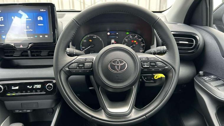 4.2" coloured TFT multi information display with analogue speedometer, Adaptive cruise control, Adjustable speed limit with speed warning, Bluetooth connectivity, E-call, Electric power steering, Hybrid energy display, Lane trace assist, Multi information display switches on steering wheel, Pre-collision system (PCS), Reversing camera, Smartphone integration with Apple CarPlay and Android auto, Tailgate, Voice recognition, Vehicle Stability Control (VSC), 4 speakers, 9" Multimedia touch display, Toyota Touch 3 system with DAB radio, USB connection, Acoustic windscreen glass, Auto high beam assist, Auto windscreen wipers, Automatic headlights, Body coloured door mirrors, Bulb indicators, Chequered front grille, Daytime running lights, Electric adjustable heated door mirrors, Follow me home headlights, Front auto power windows with anti jam protection, Front halogen fog lights, Halogen projector headlights, LED High mounted stop lamp, Manual headlight levelling, Rain sensor, Rear auto power windows with anti jam protection, Rear roof spoiler, Rear side wing doors, Rear wiper, Shark fin antenna, Turning signal integrated indicators in door mirrors, Variable front intermittent wipers, 3 adjustable rear headrests, 3 seat bench in 2nd row, 3 spoke leather steering wheel, 60/40 split folding rear seat, Active headrests, Adjustable boot height, Auto air conditioning, Coat hooks in rear grab handles, Cup holders (2 front & door), Data Communication Module (DCM) connected services, Fabric upholstery, Front armrest, Glovebox, Grey roof lining, Height adjustable driver's seat, Isofix seat fixing, Leather gearshift, Pollen filter, Shopping bag hooks, Single front passenger seat, Tilt/telescopic steering column, 3 point seatbelts on all rear seats, ABS+EBD+Brake assist, Electronic parking brake, Emergency brake light system (EBS), Front passenger airbag on/off switch, Front seatbelt reminder, Hill start assist control (HAC), Rear child proof door locks, Rear seat belt reminder, Supplemental Restraint System (SRS) 8 airbags: Driver & passenger's airbags, dual side curtain airbags, side impact airbags, front centre airbag, Toyota Safety Sense 3 with over the air updates, Tyre pressure warning system, 2x Master key, Alarm/immobiliser, Remote powered central double locking doors, Soft touch instrument panel, 16" 5 spoke silver finish alloy wheels, Space saver spare wheel,