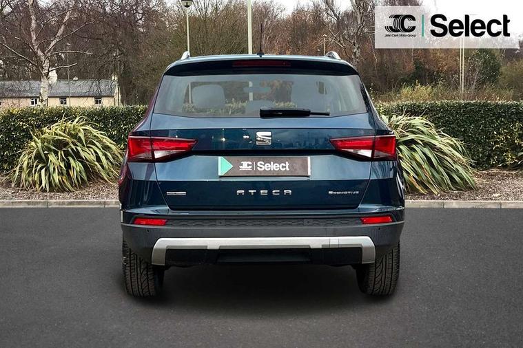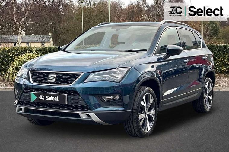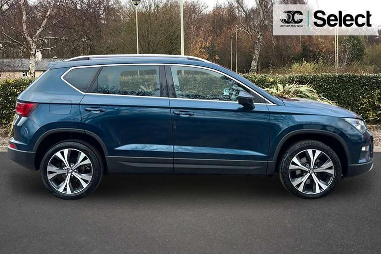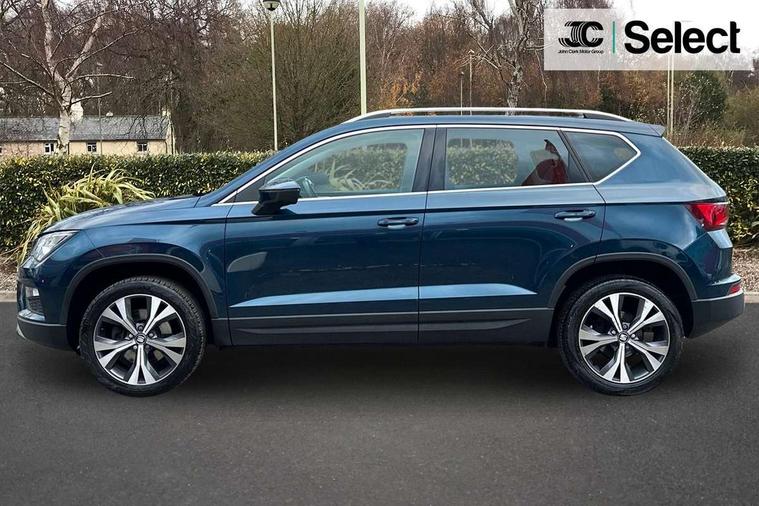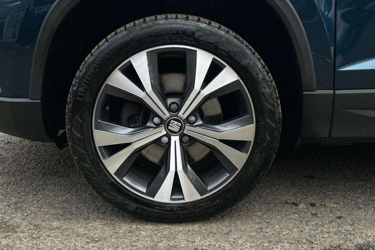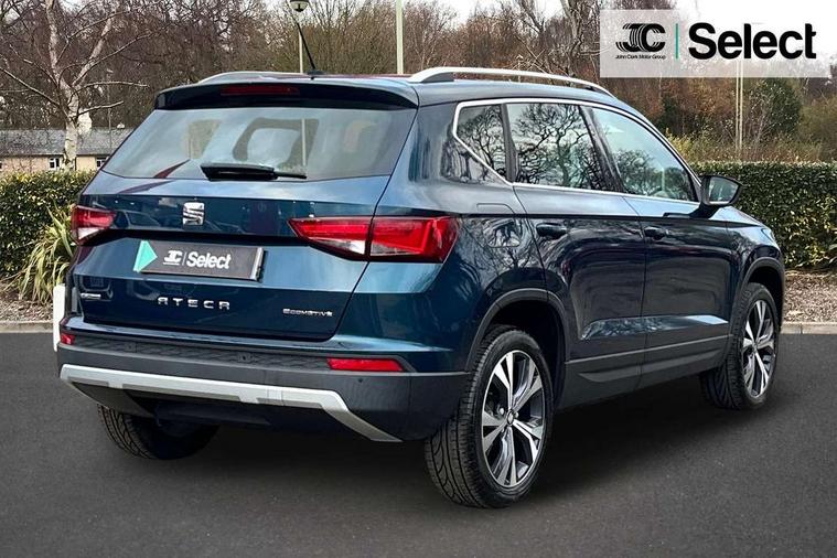 'Lights On' Reminder warning buzzer, Driver alert system, Electric speed sensitive power steering, Full Link App interface, Low fuel warning light, Multi function display, Outside temperature gauge, Rear parking sensor, Remote fuel flap release, SEAT Drive profile, SEAT logo boot release, Trip computer, Comfort suspension, XDS electronic differential lock, Steering wheel mounted audio/phone controls, Aluminium roof rails, Body colour bumpers, Body colour door handles, Body colour door mirrors, Chrome headlight surround, Chrome side window trim, Chromed centre radiator grille surround, Cornering front fog lights, Electric folding door mirrors, Electrically adjustable and heated door mirrors, Front and rear electric windows, LED daytime running lights, LED Headlights, LED tail lights, Rear wash/wipe, 12V power point front, 3 height adjustable rear headrests, 60/40 split folding rear seat, Adjustable front armrest with storage compartment, Cloth upholstery, Comfort front seats, Driver/passenger lumbar adjustment, Driver/passenger sunvisors with illuminated vanity mirrors, Dual zone climate control, Footwell illumination, Front cupholders x 2, Front reading lights, Front seat back storage pockets, Height adjustable driver's seat, Height adjustable front headrests, Height adjustable passenger seat, Illuminated boot, Illuminated glovebox, Isofix child seat preparation, Leather steering wheel and gear knob, Rear armrest, Rear central air outlet, Rear reading lights, Storage box under drivers seat, Navigation system pack - Ateca, Seat Media System Plus pack - Ateca, 3x3 point rear seatbelts, ABS, Auto hold function, Automatic post collision braking, Curtain airbags, Driver/Front Passenger airbags, Drivers knee airbag, Electronic parking brake, Electronic stability control, ESP+EBA, Front and rear seatbelt reminder, Front assist including city emergency braking, Front passenger airbag deactivation, Front side airbags, Hill hold control, Predictive pedestrian protection, Tiredness recognition system, Traction control, Tyre pressure monitoring system, 2 folding remote keys with window open/close function, Immobiliser, Locking wheel bolts, Remote central locking, Volumetric alarm with back up horn, Chrome effect dashboard facia, 18" Bi-colour alloy wheels,