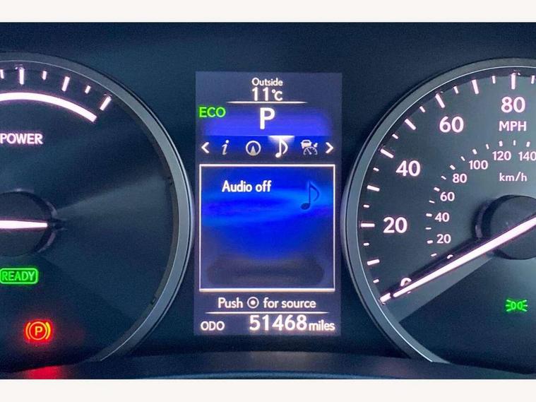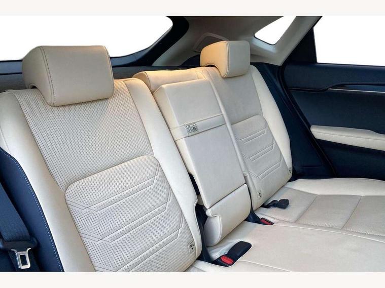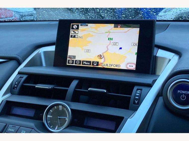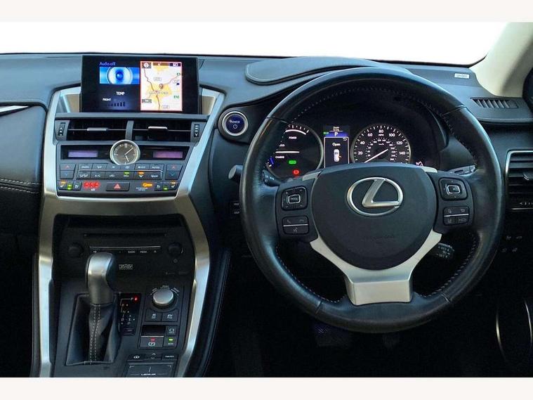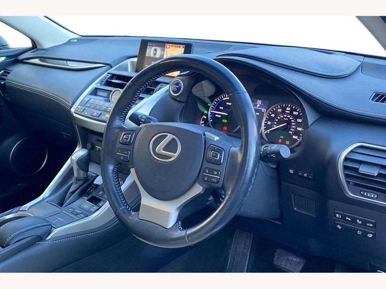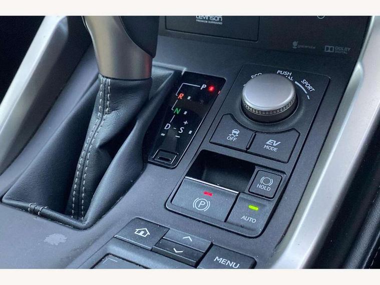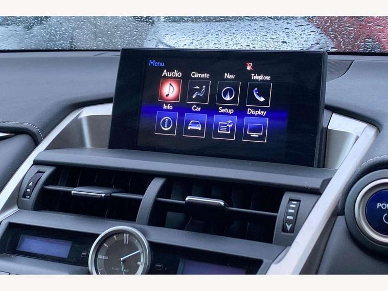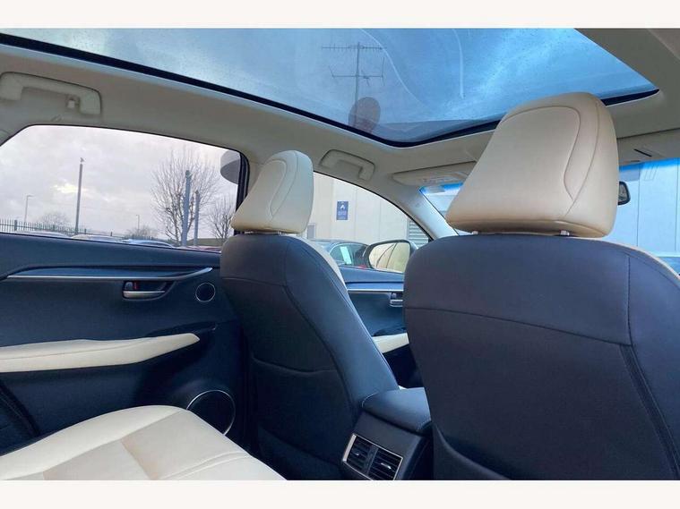 Adaptive cruise control + pre-crash system, Analogue clock, Blind spot monitoring, Bluetooth telephone connectivity, Drive mode selector, Front and rear parking sensors, Head up Display, Lane keep assist, Multimedia display, PAS, Premium navigation system, Push button starter, Rear cross traffic alert, Remote touch interface, Service interval indicator, Surround camera system, Trip computer, Voice control system, VDIM, Vehicle Stability Control (VSC), 14 speakers, Aux input, DAB Digital radio, Mark Levinson Audio with 6CD changer, Steering wheel mounted audio controls, USB connection, Adaptive high beam assist, Body colour bumpers, Electric/heated/folding door mirrors, Electrochromatic rear view mirror, Electrochromic door mirrors, Front and rear electric windows, Headlight washers, Illuminated door handles, LED daytime running lights, LED front fog lights with static cornering light function, LED Headlights, Privacy glass, Puddle lights in exterior door handles, Rain sensor windscreen wipers, Rear wiper, Roof rails, Roof spoiler, Shark fin roof aerial, 10 way electric adjustable drivers seat, 3 spoke leather steering wheel, 60/40 split folding rear seat, 8 way electrically adjustable passenger seat with height, reach, till and backrest, Driver seat memory function, Driver's lumbar support, Dual climate control air conditioning system, Electric adjustable steering column, Front armrests, Front seat ventilation, Heated front seats, Heated steering wheel, Isofix child seat attachment, Leather gear lever, Leather upholstery, Rear armrest, Rear headrests, Convenience pack - NX, 3x3 point rear seatbelts, ABS, Active front headrests, Curtain airbags, Driver/Front Passenger airbags, Driver/front passenger side airbags, EBD + Brake Assist, Electronic parking brake, Front/rear seatbelt pre-tensioners, Hill start assist, Passenger airbag cut-off device, Rear passenger side airbags, Traction control, Tyre pressure warning, Alarm, Immobiliser, Remote central double locking, Smart card entry, Speed sensitive power door locks, Space saver spare wheel,