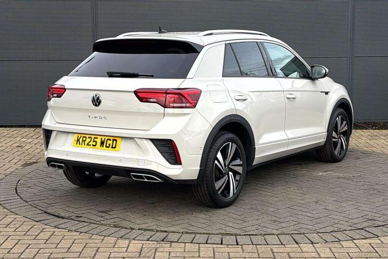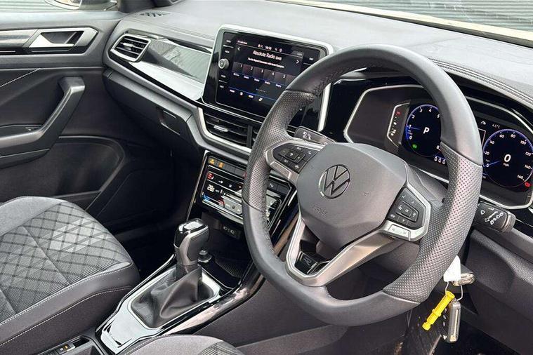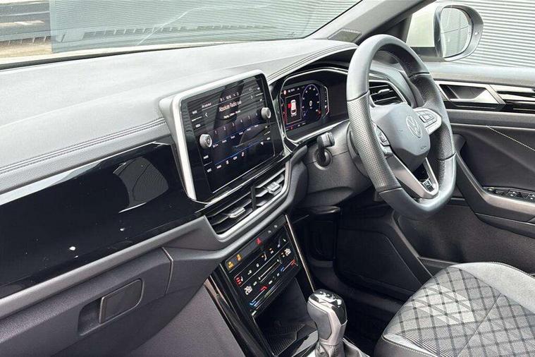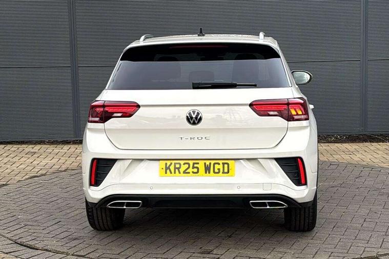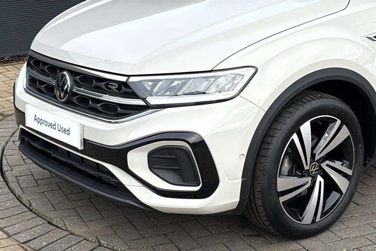 10.25" Digital cockpit pro, Advanced driver attention and drowsiness monitor, Emergency call service, Lane keeping system Lane Assist, Mobile phone interface, Modified key software - reduce switch off time for key status change to Long no motion, Online services, Park assist including front and rear parking sensors, Service interval indicator, Tailgate/trunk lid release from outside, Think blue trainer driver tips and journey analysis, Warning sound and light for front seatbelts unfastened, Wireless app connect, Battery regeneration during braking, Start/stop function with battery regeneration, DAB Digital radio, Diversity antenna for FM reception, Front and rear 6 speakers, Music playback - MP3, WMA and AAC files, Premium USB cable in choice of either Apple or Android smartphone compatibility, SD card slot, Simultaneous pairing of 2 compatible mobile devices, Title and cover art display, We Connect and We Connect Plus functionality, Auto dimming interior rear view mirror, Automatic hazard lights activation under emergency braking, Automatic headlight control with LED separate daytime running lights with coming/leaving home function, Body coloured exterior mirror housings and door handles, Electrically adjustable and heated door mirrors, Extended roof spoiler, Exterior mirrors aspherical on driver side, convex on front passenger side, External USB type C socket and charging sockets, Front windscreen wiper with intermittent wipe and 4 position delay, Heated rear window, LED 3rd brake light, LED rear combination lamps, LED rear number plate lights, Power windows with comfort operation and circuit breaker, Privacy glass for rear side windows and rear window, R-Line design body coloured bumpers, Rain sensor, Rear exhaust tailpipe, Rear fog light on one side and reversing lights on both sides, Rear side wing doors, Rear wash/wipe with intermittent wipe setting, Remote electrically foldable door mirrors, puddle lights and reverse activated passenger's door mirror, 12V power socket in centre console, 3 rear head restraints, 3 seat bench in 2nd row, 4 load lashing points in luggage compartment, Air care climatronic air conditoning system with active combination filter and 2-zone temperature control, Black roof lining, Chrome plated decorative trims, Chrome plated radiator grille inserts, air vent surrounds and light switch surrounds, Door and side trim panel with leatherette insert, Front + rear carpet mats, Front centre armrest, Front cupholders x 2, Front footwell illumination, Front reading light, Front scuff plates with R Line logo, Front seat back storage pockets, Glove compartment door with light, Instrument lighting, white adjustable panel illumination, Interior ambient lighting and surround lighting, Interior light delay, Isofix child seat preparation, Leather gearshift handle, Load-through provision with cup holder when folded down ('Unsplit rear seat bench, split folding backrest, with centre armrest), Luggage compartment lighting, Single front passenger seat, Stainless steel pedals, Storage compartment in left and right luggage area, Storage compartment in rear doors, Storage compartments in driver and front passenger doors, Sunvisors with illuminated vanity mirrors, Variable boot floor, height adjustable and removable, Driver assistance pack without proactive passenger protection - T-Roc, 3 point height adj front seatbelts + pretensioners, 3 point seatbelts in outer rear with ECE label, ABS, Child locks on rear doors, City emergency braking and pedestrian monitoring, Driver and front passenger airbag with front passenger airbag deactivation, Driver and front passenger safety-optimised head restraints, Drivers seatbelt reminder, Electronic parking brake, Electronic Stability Control (ESC) inc EDL (Electronic Differential Lock) and ASR (Traction Control), Front and rear passengers curtain airbag system including front side airbags, Hill start assist, Predictive pedestrian protection, Rear disc brakes, Two tone horn, Tyre pressure loss indicator, Volkswagen roadside assistance, Piano black decorative inserts in dashboard and front door trim panels, Trims for alloy wheels,