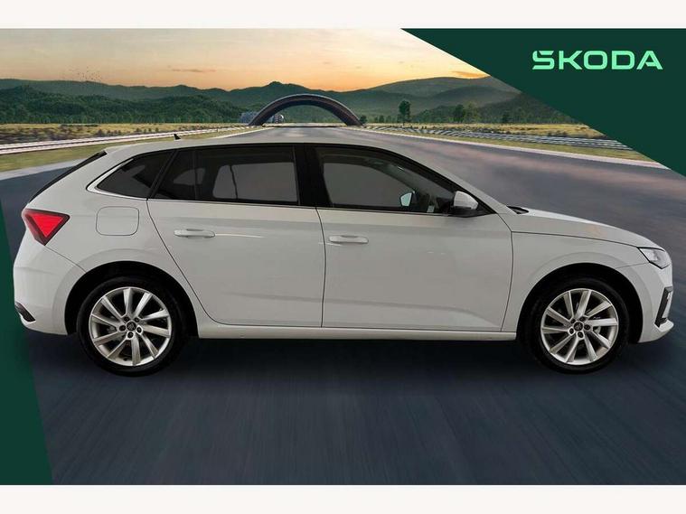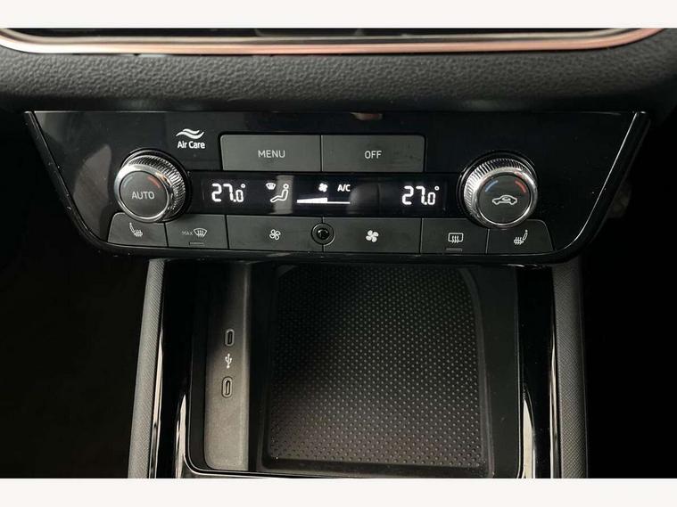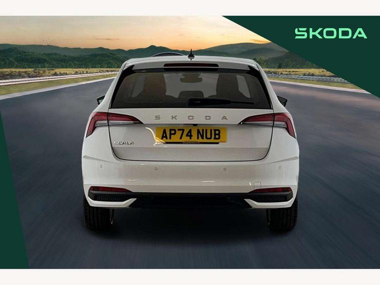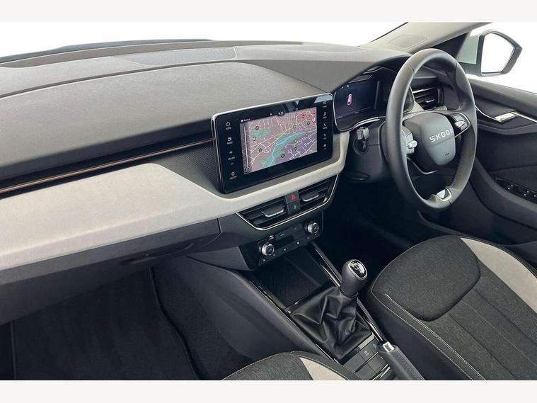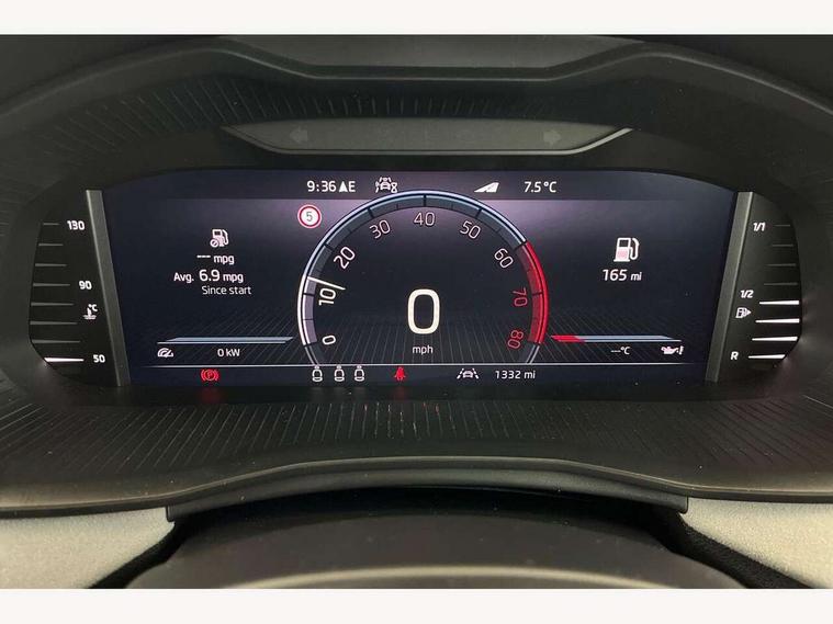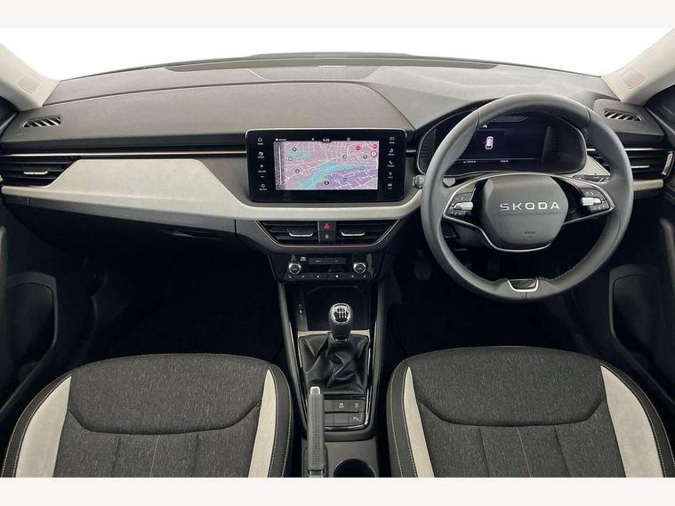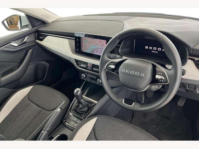 Advanced driver attention and drowsiness monitor, Bluetooth, e-Call (emergency call), Front assist system, PAS, Rear parking sensors, Rear view camera, Speed limiter, Tailgate, Traffic sign recognition, Virtual Cockpit - 10.25" digital display, Voice control system, Wireless smartlink, 4 USB C ports, 8 Speakers, 9.2" Skoda navigation display, DAB radio, Auto dimming rear view mirror, Automatic headlamp activation with Coming home and Leaving home feature, Automatic high/low beam, Automatic intermittent wipers, Body colour bumpers, Body colour door mirrors and handles, Chrome moulding around grille, Chrome window frames, Front and rear electric windows, Heated rear window, LED 3rd brake light, LED brake lights, LED daytime running lights, LED front turning lights, LED high beam, LED low beam, Light sensors, Privacy glass, Rear LED fog light, Rear side wing doors, Rear wiper, Tinted windows, Unique dark chrome design logo on alloy wheels, 12V socket in luggage compartment, 3 seat bench in 2nd row, Ambient lighting in white/red, Black / Copper armrest stitching, Cargo elements, Chrome inner door handles, Copper hotstamping, Door inserts in accent black, Driver and passenger sun visors with vanity mirror, Dual zone climate control, Front and rear roof lights, Front centre armrest, Front head restraints, Glasses storage in roof liner, Height adjustable driver seat, Height adjustable passenger seat, Ice scraper, Illuminated glove compartment, Inner circulation control with pollen filter, ISOFIX for front passenger seat, Isofix preparation for back seats, Leather gearknob and handbrake lever, Lodge cloth upholstery, Luggage net under rear parcel shelf, Manual lumbar support for front seats, Net package and top tether hooks in boot space, Pearl grey ceiling, Pocket on the back of both front seats, incl. mobile phone pockets, Rear centre armrest, Single front passenger seat, Skoda lettering on steering wheel, Textile floor mats, Third rear headrest, Ticket holder, Top tether for front passenger seat, Umbrella in driver's door, Convenience pack without rear camera - Scala, 3x3 point rear seatbelts, ABS, Child locks, Curtain airbags and front side airbags, Disc brakes, Driver and front passenger airbags, ESP, Hill hold control, Manual leather parking brake, One tone horn, Passenger airbag switch off function, Seatbelt reminder for driver and front passenger, Tyre pressure monitoring system, Anti theft alarm system with interior monitoring, backup horn and towing protection, Anti-theft wheel bolts, Remote central locking with 2 remote folding keys, SAFE function for remote central locking, Decorative inserts,