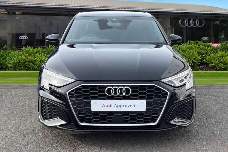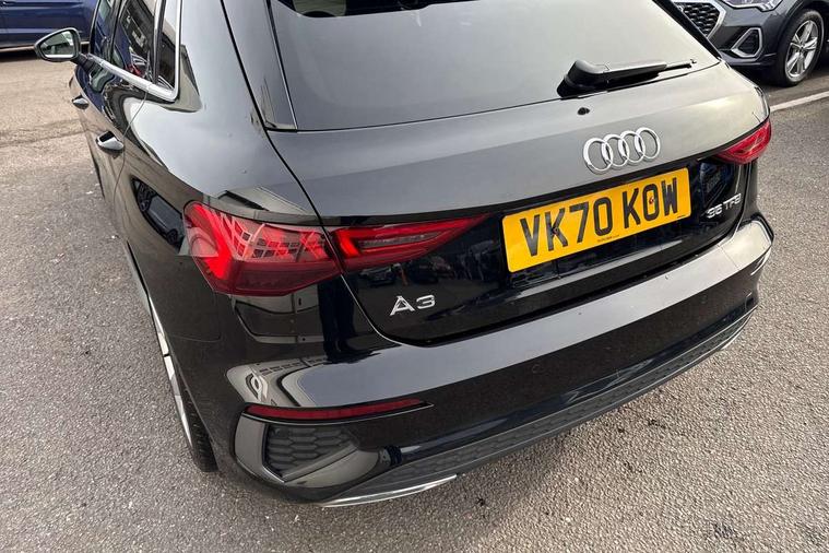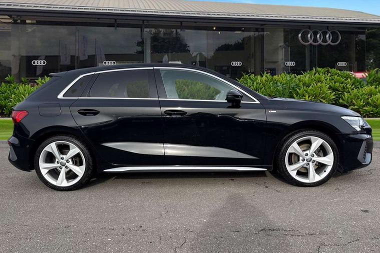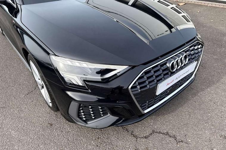 Audi connect emergency call and service, Audi drive select (Auto, Comfort, Dynamic, Efficiency and Individual), Audi smartphone interface, Audi Virtual Cockpit - 10.25" digital and colour instrument cluster, Automatic start/stop system with recuperation, Bluetooth interface, Collision avoidance assistant, Electromechanical power speed sensitive steering, Lane departure warning system, MMI Navigation Plus with high resolution 10.1" colour touch screen display, Service indicator, Trip computer, Voice control system with natural language interaction, 1xUSB-A and 1xUSB-C connection, 6 passive loudspeakers, DAB Digital radio, Acoustic glass windscreen, Aluminium window trim, Auto dimming frameless rear view mirror, Body colour exterior mirrors, Electrically adjustable/heated/folding/auto dimming door mirrors with integrated LED indications + kerb view function for passenger side, Front electric windows, Illuminated aluminium inserts front door sills with S logo, LED daytime running lights, Light and rain sensors, Privacy glass - dark tinted rear window, rear door and side windows, Rear electric windows, Rear side air outlets in grained matt black, Rear wiper, S line bumpers, S roof spoiler, 12V socket and storage compartment in front centre console, 40/20/40 split folding rear seat bench with cupholder, Black cloth headlining, Dual zone electronic climate control, Front and rear centre armrest in leather, Front and rear headrests, Front/rear floor mats, Height and reach adjustable steering wheel, Interior lighting - glove compartment light and right hand side, Luggage compartment floor covering, Manual boot compartment lid, Manually adjustable front seats, Seat side bolsters, Stainless steel pedals and front footrest, Twin leather upholstery with front sports seats S embossed logo, Aluminium interior elements pack - A3 Sportback, S line styling pack - A3 Sportback, 3x3 point rear seat belts, Driver and front passenger airbag with passenger airbag deactivation, Electronic Stabilisation Control (ESC) including ABS, ASR and EDL, First aid kit with warning triangle and 2 safety vests, Hill hold assist, Pre-sense front with pedestrian and cyclist detection, Seatbelt monitoring, Tyre pressure loss indicator, Anti theft alarm, Anti-theft wheel bolts, Electronically operated child lock, Immobiliser, Remote control central locking, Accent surfaces in the dashboard and centre console in platinum grey silk effect paint finish, Dark spectrum aluminium inlays,