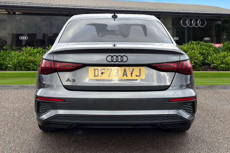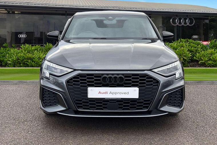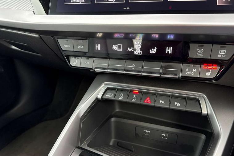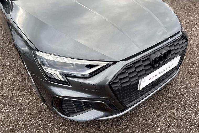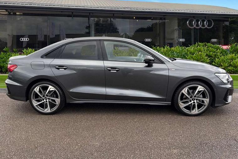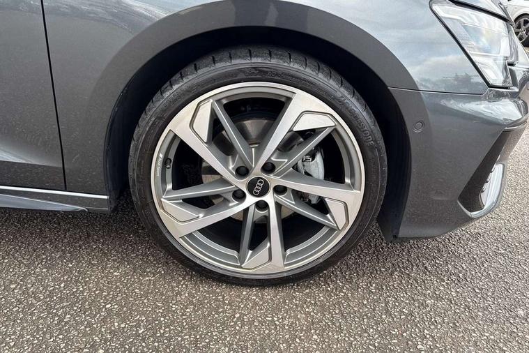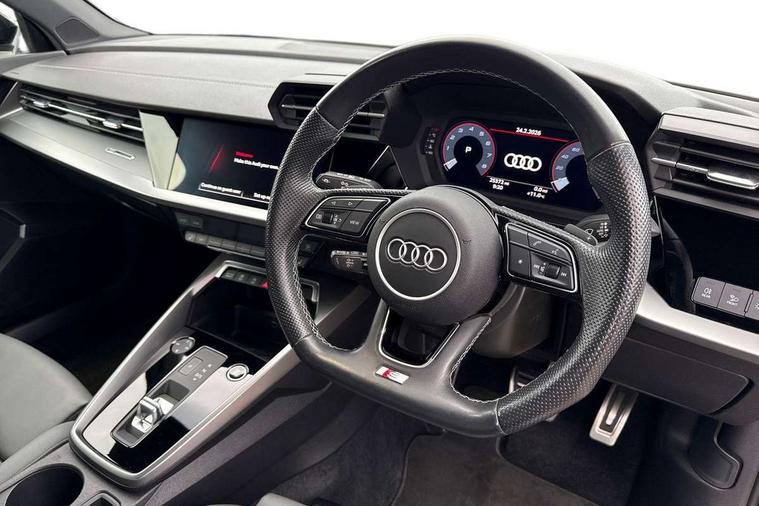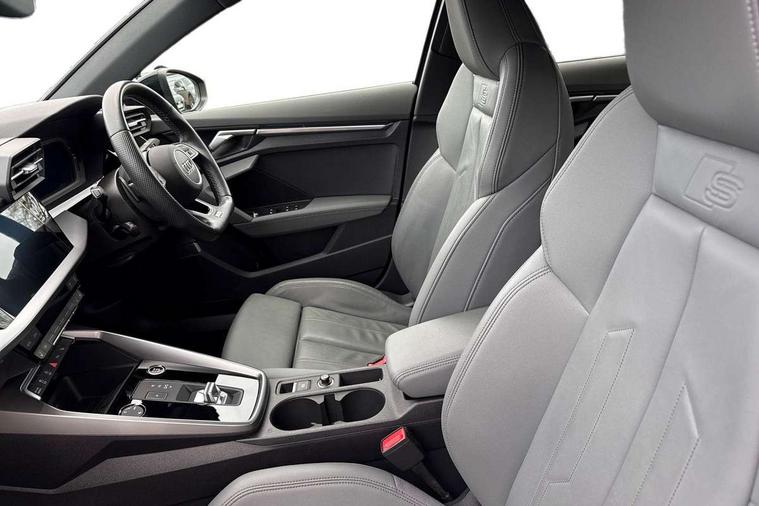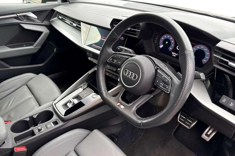 Audi drive select (Auto, Comfort, Dynamic, Efficiency and Individual), Audi smartphone interface, Audi Virtual Cockpit - 10.25" digital and colour instrument cluster, Automatic start/stop system with recuperation, Bluetooth interface, Camera based traffic sign recognition, Collision avoidance assistant, e-Call (emergency call), Electromechanical power speed sensitive steering, Lane departure warning system, MMI Navigation Plus with high resolution 10.1" colour touch screen display, Service indicator, Trip computer, Voice control system with natural language interaction, Sports suspension, 2xUSB-C connection with data and charging functions, 6 passive loudspeakers, CD player, DAB Digital radio, 3rd brake light, Acoustic glass windscreen, Audi beam uses LEDs to project the Audi logo onto the ground as you exit your A3, Auto dimming frameless rear view mirror, Electrically adjustable/heated/folding/auto dimming door mirrors with integrated LED indications + kerb view function for passenger side, Front electric windows, Illuminated door sills with aluminium inserts at the front with S logo, LED daytime running lights, LED headlights with LED rear lights and dynamic rear indicators, Light and rain sensors, Model and engine designation badges at rear, Privacy glass - dark tinted rear window, rear door and side windows, Rear boot, Rear electric windows, Rear side wing doors, S roof spoiler, 12V socket and storage compartment in front centre console, 3 seat bench in 2nd row, 3 spoke flat bottomed leather multifunction sport steering wheel with gear shift paddles, 4 way electrically adjustable lumbar support for driver and front passenger, 60/40 split folding rear seat bench, Black cloth headlining, Dual zone electronic climate control, Front and rear centre armrest in artificial leather, Front and rear headrests, Front/rear floor mats, Height and reach adjustable steering wheel, Interior lighting - glove compartment light and right hand side, Luggage compartment floor covering, Manual boot compartment lid, Single front passenger seat, Stainless steel pedals and front footrest in black, Twin leather upholstery with front sports seats S embossed logo, Aluminium interior elements pack - A3, Black styling pack - A3 Saloon/Black edition, LED interior lighting pack - A3 Saloon, 3x3 point rear seat belts, Driver and front passenger airbag with passenger airbag deactivation, Electronic Stabilisation Control (ESC) including ABS, ASR and EDL, First aid kit with warning triangle and 2 safety vests, Front side airbags with head airbags and interaction airbag, Pre-sense front with pedestrian and cyclist detection, Seatbelt monitoring, Tyre pressure loss indicator, Anti theft alarm, Anti-theft wheel bolts, Electronically operated child locks, Immobiliser, Remote control central locking, Aluminium air vent surrounds, Dark spectrum aluminium inlays, accent surfaces in the dashboard and centre console in platinum grey silk effect paint finish, 19" 5 arm trapezoid design alloy wheels in matt grey with diamond cut finish,