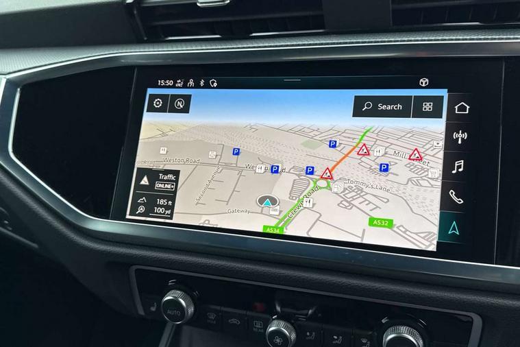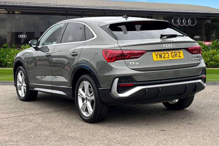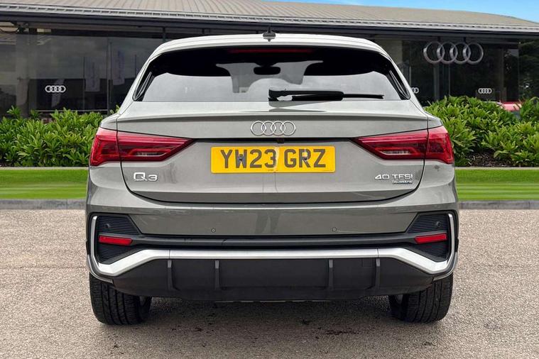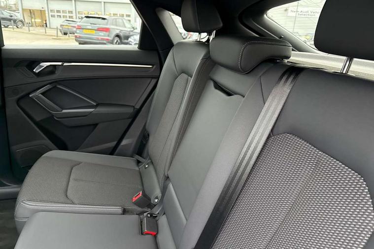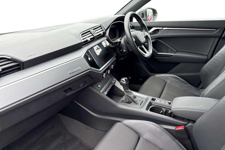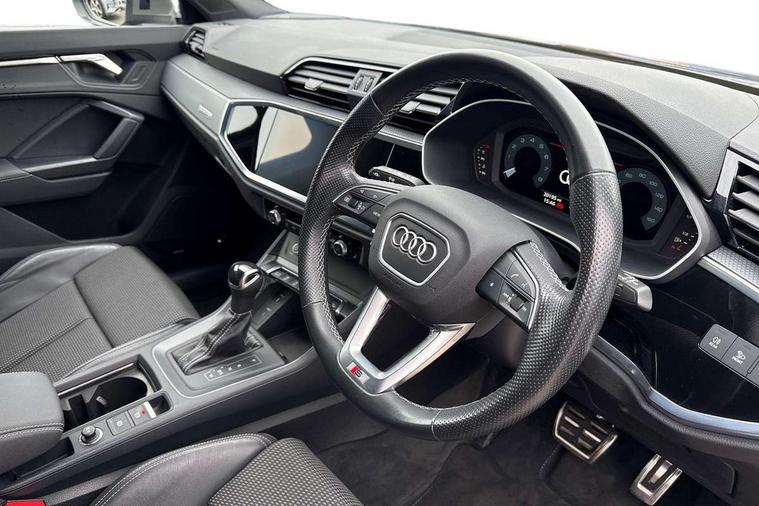 Audi drive select, Audi lane departure warning, Audi Virtual Cockpit - 10.25" display, Bluetooth interface, Camera based traffic sign recognition, Legal emergency call, MMI Navigation Plus with high resolution 10.1 inch touchscreen colour display, Power operated tailgate, Progressive steering, Service interval indicator, Smartphone interface includes wireless Apple carplay/Android Auto, Start stop system with recuperation, Voice control system with natural language interaction, Sports suspension, 2 USB-C ports with charge and data functions, 6 passive loudspeakers, DAB digital radio module, Acoustic windscreen, Aluminium window trim, Auto dimming frameless rear view mirror, Diffuser grille in grained matt black, Diffuser trim in selenite silver, Electrically folding, adjustable and heated door mirrors with integrated LED side indicators and kerb view function for passenger side, Front and rear electric windows, Front fog lights, Front side air inlets in selenite silver, Front underbody protection in manhattan grey paint finish, Grille surround in aluminium silver matt, High gloss black finish B and C pillars, LED Dynamic rear indicators, LED headlights with LED daytime running lights, LED rear lights, LED third brake light, Privacy glass dark tinted rear and rear-side windows (from B-pillar backwards), Radiator grille in anthracite black with inlay in matt aluminium silver, Rain and light sensors, Rear side wing doors, Rear underbody protection in matt black, Rear wiper, S line badges on front wings, S line front and rear bumpers and side skirts in contrasting Manhattan grey paint finish, Side skirt insert in matt Platinium grey, Variable front intermittent wipers, 12V socket in rear centre console, 3 seat bench in 2nd row, 3 spoke leather multifunction steering wheel features S badging and grips in perforated leather with contrast stitching, 40:20:40 folding with manual adjustment for 60:40 forwards/backwards position and backrest angle, Adjustable rear seat bench/backrest with centre armrest and cupholder, Black cloth headlining, Dual zone electronic climate control, Front and rear black floor mats with contrast stitching, Front and rear headrests, Front and rear roof module including reading lights, Front centre armrest, Glove compartment lighting, Height and reach adjustable steering wheel, Illuminated door sill trims with S logo, ISOFIX child seat mounting for front passenger with airbag deactivation and outer rear seat including top tether attachment point for outer rear seats, Luggage compartment light right in white, Luggage compartment sill protection in stainless steel, Manual front seats with height adjustment, Perforated leather gearknob, Single front passenger seat, Stainless steel pedals, Ambient lighting pack - Q3, Non smoking pack - Q3, 3x3 point rear seatbelts, 6 airbags - Driver, front passenger, curtain and side windows, Audi pre-sense front with pedestrain and cyclist recognition, Electrically operated child locks on rear doors, Electromechanical parking brake, Electronic stabilisation control including ABS, ASR and EDL, Front seatbelt reminder, Hill descent control, Hill hold assist, Pre sense basic, Seatbelt monitoring, Tyre pressure warning, Warning triangle and first aid kit, Anti theft alarm, Anti theft wheel bolts, Immobiliser, Remote central locking, Aluminium look interior elements, Black dashboard, Dark matt brushed aluminium inlay, Detail dashboard around MMI touch colour display in glass look, black with surround in aluminium look, Leatherette door armrest,