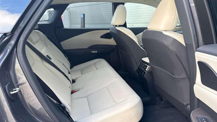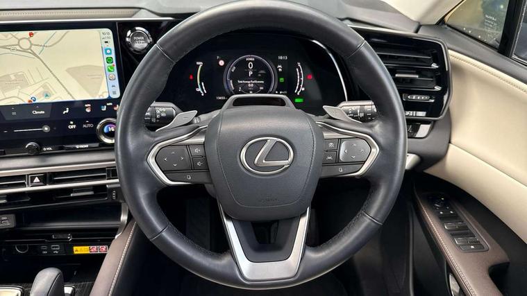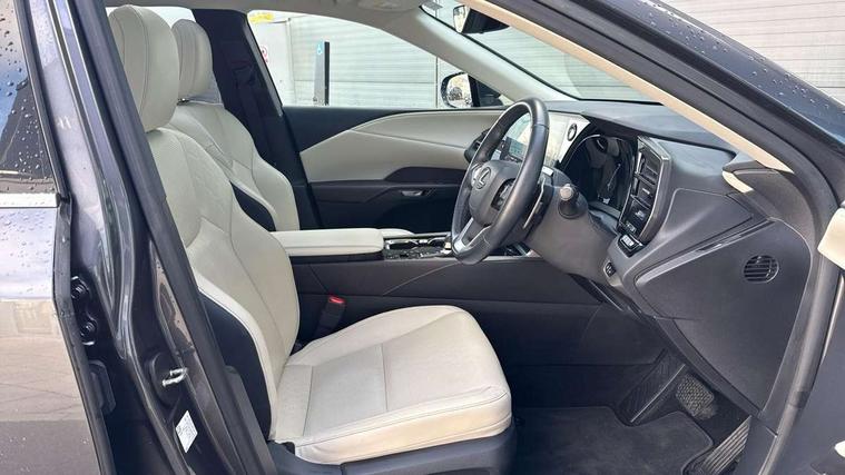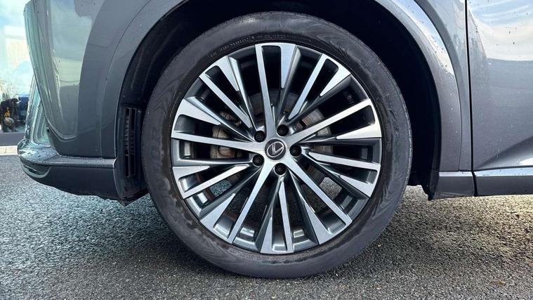 360 degree panoramic view monitor, Bluetooth mobile phone connectivity, BSM - Blind spot monitoring, Drive mode selector, Driver monitoring system, E-call, Head up Display, Intelligent clearance sonar, Lexus link connected services including over the air updates, MM21 Lexus link pro - 14" HD touchscreen with embedded and cloud based navigation, voice assistant, connected services, over the air and always online, Push button starter, Rear cross traffic alert, Speed sensitive electric power assisted steering, Ultrasonic parking sensors, Wireless Apple CarPlay and wired Android Auto, Wireless Smartphone charger, 3 pin to Type 2 10A charging cable, 6.6 kW onboard charger, E-Four Automatic transmission, Type 2 AC charging, Type 2 mode 3 32A charging cable, Vehicle Stability Control (VSC), 12 speakers audio, 6 USB ports (3 front USB C, 1 front USB A and 2 rear USB C), DAB Digital radio, 3 projector bi-beam LED headlight with auto high beam, Auto dimming rear view mirror, Auto headlights, Front and rear one touch power windows with voice command, Front and rear silver window frame mouldings, Glove and towel set, Headlight washers, Heated, auto-folding door mirrors, auto dimming with rerverse tilt, turn indicators and panoramic view sensors, L-shaped rear light bar, LED brake lights and rear lights with emergency brake signal, LED cornering headlights, LED daytime running lights, LED front and rear fog lights, LED Indicators, Power back door with kick sensor, Privacy UV glass, rear doors and tailgate, Rain sensor windscreen wipers, Rear side wing doors, Rear wash/wipe, Roof rails, Variable front intermittent wipers, 12V accessory port centre console and luggage compartment, 2 cup holders in centre console, 2 way electric lumbar support for driver and front passenger, 2 x Sunvisors with vanity mirror and lamp, 3 rear headrests, 3 seat bench in 2nd row, 40:20:40 split folding rear seats, 64 colour LED ambient interior illumination with 14 pre-set themed colour tones, 8 way electrically adjustable front seats, Charge cable bag, Driver seat memory function, Easy access driver seat, Easy access steering wheel, Front aluminium scuff plates, Front headrests, Front tray in front of centre console, Glovebox, Heated and ventilated front seats, Heated steering wheel, Leather steering wheel, Lever type shft control, Manually adjustable rear seats, Power adjustable steering wheel, Rear resin scuff plates, Single front passenger seat, Smooth leather upholstery, Textile carpet mats, Three zone climate control air conditioning system, Two way opening centre armrest with storage, 2 x Isofix child rear seat restraints, 3 point ELR front and rear seatbelts with pretensioners, ABS, Curtain shield airbags (front and rear), Driver and front passenger 2 stage airbag, Driver/front passenger side airbags, Drivers knee airbag, E-Latch with safe exit assist, EBD + Brake Assist, Electronic parking brake, Electronically controlled braking, Extended lexus safety system+ 3 - lane change assist, front cross traffic assist, Front and rear left/right force limiters and tension reducers, Front and rear left/right seatbelt reminders, Front centre airbag, Hill assist control, Lexus safety system+ 3 - dynamic radar cruise control, pre collision system day and night, lane tracing assist, road sign, Manual child lock in rear doors, Passenger airbag cut-off device, Traction control, Tyre pressure warning, 2 x remote key fobs, Customisable auto door lock, Motion sensor key, Smart keyless entry, Thatcham category 1 alarm + immobiliser, VIN etching, Black Inlay,