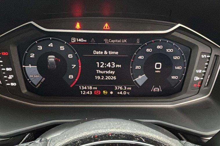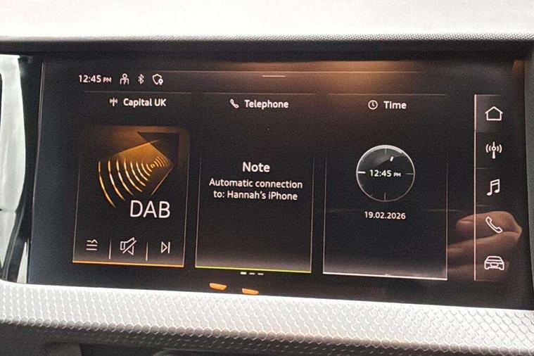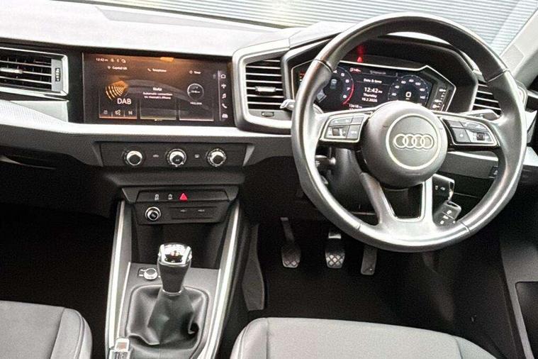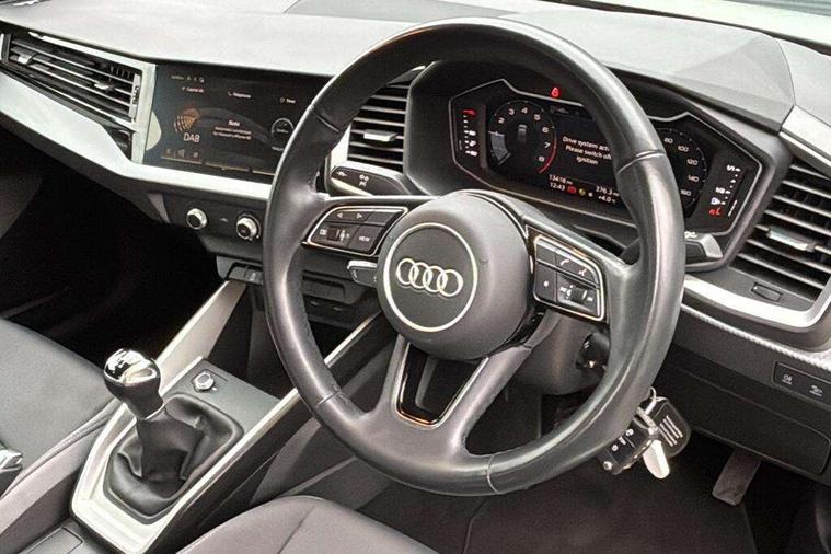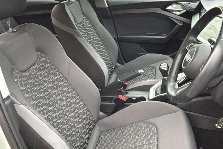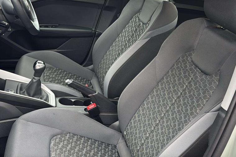 10.25" Digital instrument cluster display classis style instrument dials + speed, odometer, time, outside temperature, telephone menu + fuel level warning, Audi smartphone interface with connect compatible smartphone via USB directly MMI display + Nav, music, third party apps controlled via MMI controller, Automatic start/stop system, Bluetooth interface, Cruise control, Driver's information system, Electromechanical power steering, Emergency e-call, Lane departure warning system, Rear parking sensor, Service interval indicator, Speed limiter, Voice control system, Washer fluid level indicator, Dynamic suspension, 2 x USB type C connection points, 6 passive loudspeakers, DAB Digital radio, MMI radio plus with 10.1" colour MMI display screen and MMI touch, Auto dimming rear view mirror, Body coloured bumpers, Body coloured door mirrors, Electric front and rear windows, Electrically adjustable, heated, folding door mirrors with integrated LED side indicator, Front side air inlets in grained matt black and C frame in anthracite black, Heat insulating glass windscreen and side windows, Heated rear windscreen, High level LED brake light, LED headlights with LED rear lights + dynamic rear indicators + headlight adjustment and high beam, turning light + LED daytime running lights, Radiator grille and rear diffuser in matt anthracite black, Radiator protective grille frame in matt aluminium silver, Rain and light sensors, Rear fog lights, Rear side wing doors, Rear wiper, Side front spoiler lips in grained matt black, 12V socket in centre console with two cup holders, 3 rear seats with headrests, 3 seat bench in 2nd row, 3 spoke leather multifunction plus steering wheel, 40:60 Split folding rear seat or folded fully, Black front and rear floor mats, Door sill trims with aluminium inlay, Driver and passenger seat with manual height adjust with forward and backwards adjustment, Front head restraints, Front passenger seat, Grey cloth headlining, Height and reach adjustable steering wheel, ISOFIX child seat mounting for front passenger and outer rear seats including top tether attachment point of outer rear seats, Leather gear knob with aluminium trim, Leather handbrake grip, Luggage compartment light with front and rear reading lights, Manual air conditioning, Manually adjustable lumbar support in front seats, Novum cloth upholstery with front sport seats, Luggage compartment pack - A1, 3x3 point rear seatbelts, Audi pre-sense front with pedestrain and cyclist recognition, Brake assist function, Driver and front passenger airbag with front side and head airbags, Electronic Stability Control including ABS, EBD, ASR and EDL, Front passenger airbag deactivation switch, Hill hold assist, Manual rear child locks, Seatbelt height adjustment for front seats, Seatbelt monitoring, Tyre pressure warning light, Warning triangle and first aid kit, Anti theft alarm, Anti theft wheel bolts and loose wheel warning, Immobiliser, Remote central locking with 2 foldaway keys, Aluminium trim for control switches, air vents and digital instrument cluster, Black dashboard, Silver grey accent areas including air vents, door handle recesses and centre console in diamond paint finish, Slate grey inlays polygon structure in fine paint finish,