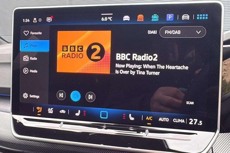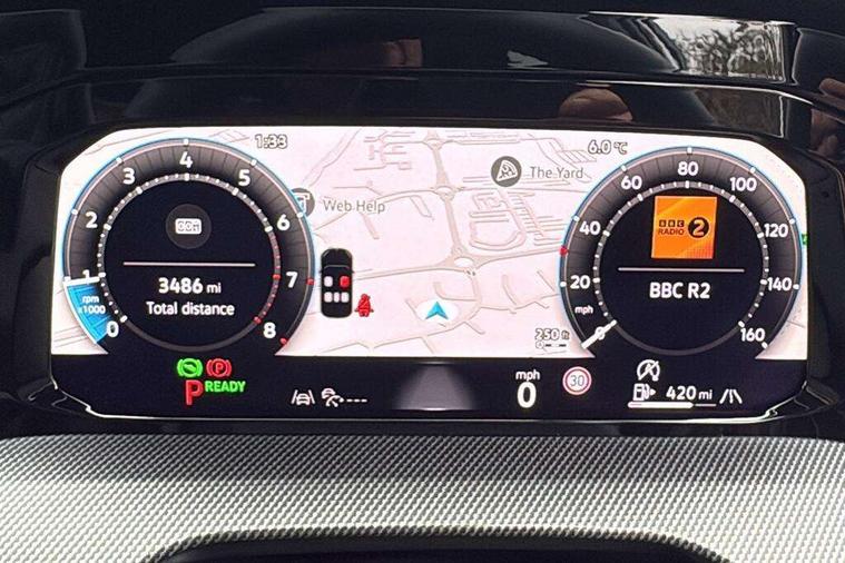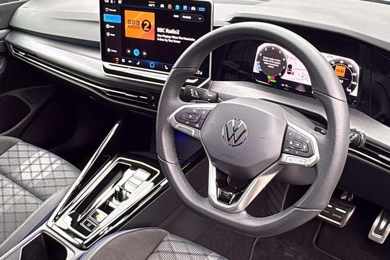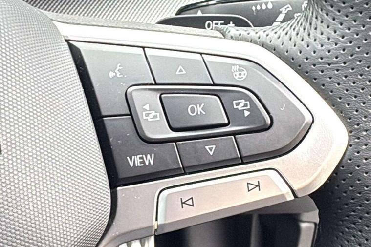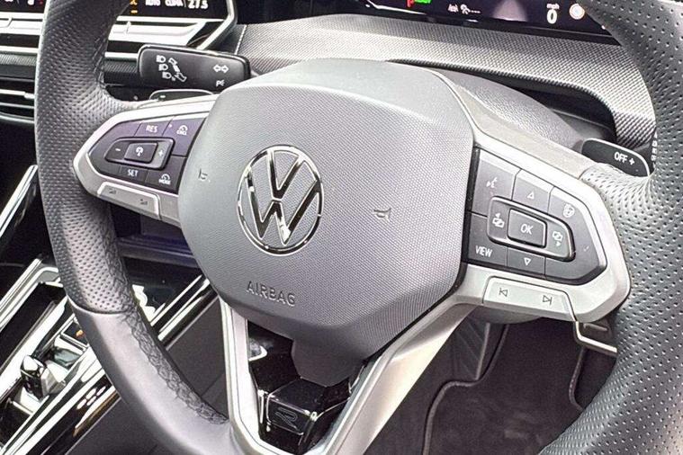 Activated carbon canister, Adaptive cruise control (ACC), Advanced driver attention and drowsiness monitor, Dynamic road sign display, Dynamic steering, E-Sim card for online connectivity, eCall emergency call system, Multi-color Digital cockpit pro, selection of different info profile possible, Multifunction front facing camera for distance control, Navigation system, Oncoming vehicle braking when turning including swerve support, Speed limiter, Speedo, rev counter, electronic odometer, trip, service interval display, exterior temperature and fuel gauge, Traffic jam assist, Voice enhancer and voice control, Warning signal and warning light for front and rear seatbelts not fastened, We connect plus preparation, We connect preparation, Wireless app connect, Hybrid propulsion system, Petrol Particulate Filter, Start-stop system with battery regeneration (recuperation - energy recovery during braking), XDS electronic differential lock for improved traction and handling, 2 USB C ports in front, 2 USB charging sockets on the centre console in the rear charging capacity upto 45W, Digital radio reception (DAB), Diversity antenna for FM reception, Gaming platform via car app, Infotainment system with 12.9" display, Mobile phone interface with inductive charging feature, 3rd brake light, Automatic headlamp activation with Coming home and Leaving home feature, Body colored bumpers in R-Line style, Body colour door handles, Exterior mirrors convex on the left and aspherical on the right, Front and rear electric windows, Heat insulating windshield made of laminated glass, LED separate daytime running light, Rear exhaust tailpipe, Rear fog light on one side and reversing lights on both sides, Rear side wing doors, Rear windscreen washer and wiper with interval delay, Remote electrically foldable door mirrors, puddle lights and reverse activated passenger's door mirror, Welcome light with surround lighting, 12V socket in front centre console, 12V socket in luggage compartment, 3 rear head restraints, 3 seat bench in 2nd row, Ambient lighting with 30 colour including LED light unit in front footwell with selectable light colour, Black roof lining, Brushed stainless steel pedals, Chrome plated radiator grille inserts, air vent surrounds and light switch surrounds, Door insert, side trim panel and arm support in leatherette, Front + rear black carpet mats, Front centre armrest, Front seat lumbar support adjuster, Integrated front head restraints, ISOFIX anchors for child seats on outer rear bench seats and on front passanger seat compatible for i-Size, Luggage compartment lighting, Manual height adjustable front passenger seat, Manually height adjustable driver seat, Plastic gear knob, Premium sports seats in front, Rear cupholder and loadthough, Sardegna cloth upholstery with front and outer rear seats Art Velour inner sides of bolsters, Single front passenger seat, Split folding backrest with centre armrest and unsplit rear seat bench, Sun visors with illuminated vanity mirrors, Titanium black instrument panel, 3 point height adj front seatbelts + pretensioners, 3 rear three point seatbelts, ABS, Autonomous emergency braking front assist with pedestrian and cyclist monitoring, Child locks on rear doors, Driver and front passenger airbag with front passenger airbag deactivation, Electronic parking brake with auto hold, ESC (Electronic Stability Control), Extended pedestrian protection measures, Hill start assist, Rear disc brakes, Two tone horn, Tyre pressure loss indicator, Volkswagen roadside assistance, Anti theft wheel bolts, Preparation for alcohol interlock, Decorative inserts carbon grey for dashboard and front door trim panels, Tool kit for tyre mobility set, Tyre mobility kit Includes 12V compressor and tyre sealant,