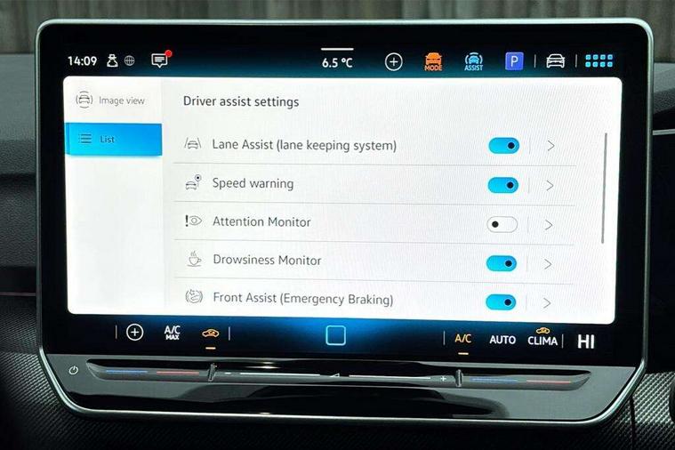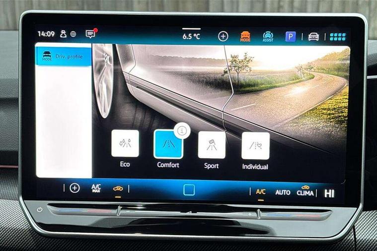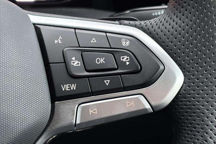 Activated carbon canister, Adaptive cruise control (ACC), Advanced driver attention and drowsiness monitor, Dynamic road sign display, Dynamic steering, E-Sim card for online connectivity, eCall emergency call system, Multi-color Digital cockpit pro, selection of different info profile possible, Multifunction front facing camera for distance control, Navigation system, Oncoming vehicle braking when turning including swerve support, Preparation for light assist system, Speed limiter, Speedo, rev counter, electronic odometer, trip, service interval display, exterior temperature and fuel gauge, Traffic jam assist, Voice enhancer and voice control, Warning signal and warning light for front and rear seatbelts not fastened, We connect plus preparation, We connect preparation, Wireless app connect, Diesel particulate filter, Hybrid propulsion system, Start-stop system with battery regeneration (recuperation - energy recovery during braking), XDS electronic differential lock for improved traction and handling, 2 USB C ports in front, 2 USB charging sockets on the centre console in the rear charging capacity upto 45W, Comfort telephony + wireless charging, without wireless aerial connection, Digital radio reception (DAB), Diversity antenna for FM reception, Gaming platform via car app, Infotainment system with 12.9" display, Mobile phone interface with inductive charging feature, 3rd brake light, Auto headlights, Automatic headlamp activation with Coming home and Leaving home feature, Body colored bumpers in R-Line style, Body colour door handles, Exterior ambient lighting with illuminated door handles, Exterior mirrors convex on the left and aspherical on the right, Front and rear electric windows, Heat insulating windshield made of laminated glass, LED daytime running lights, Rear exhaust tailpipe, Rear fog light on one side and reversing lights on both sides, Rear side wing doors, Rear windscreen washer and wiper with interval delay, Remote electrically foldable door mirrors, puddle lights and reverse activated passenger's door mirror, Welcome light with surround lighting, 12V socket in front centre console, 12V socket in luggage compartment, 3 rear head restraints, 3 seat bench in 2nd row, Ambient lighting with 30 colour including LED light unit in front footwell with selectable light colour, Brushed stainless steel pedals, Carpet mats, front and rear, Chrome plated radiator grille inserts, air vent surrounds and light switch surrounds, Front centre armrest, Integrated front head restraints, ISOFIX anchors for child seats on outer rear bench seats and on front passanger seat compatible for i-Size, Luggage compartment lighting, Plastic gear knob, Premium sports seats in front, Rear cupholder and loadthough, Single front passenger seat, Soul black instrument panel, Split folding backrest with centre armrest and unsplit rear seat bench, Storm grey roof lining, Sun visors with illuminated vanity mirrors, 3 point height adj front seatbelts + pretensioners, 3 rear three point seatbelts, ABS, Autonomous emergency braking front assist with pedestrian and cyclist monitoring, Child locks on rear doors, Driver and front passenger airbag with front passenger airbag deactivation, Electronic parking brake with auto hold, ESC (Electronic Stability Control), Extended pedestrian protection measures, Hill start assist, Rear disc brakes, Two tone horn, Tyre pressure loss indicator, Volkswagen roadside assistance, Anti theft wheel bolts, Preparation for alcohol interlock, Decorative inserts carbon grey for dashboard and front door trim panels,